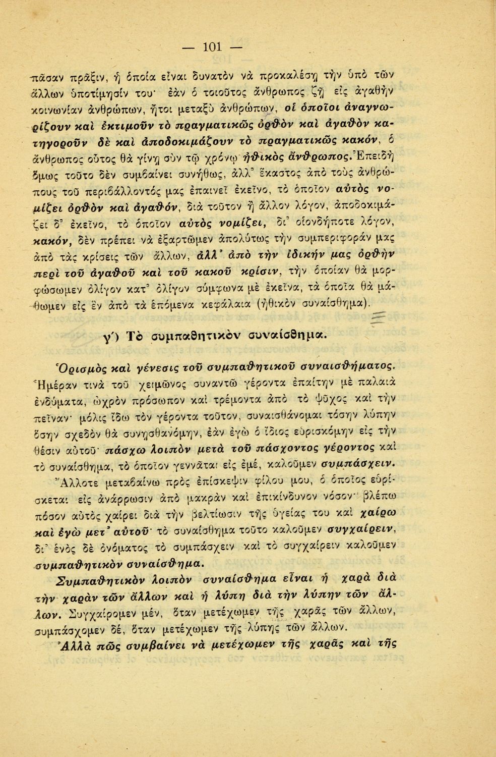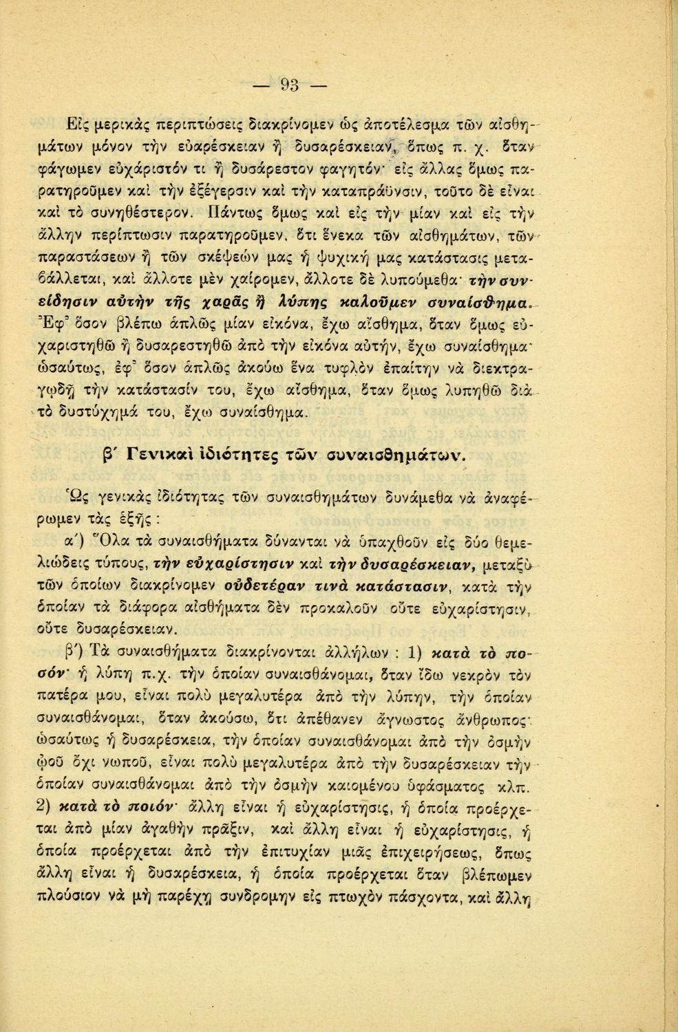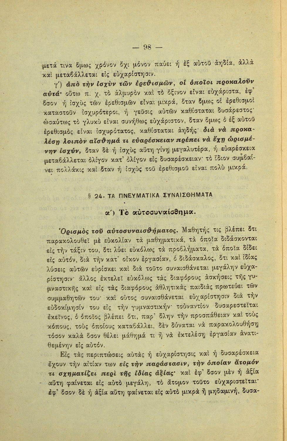 Σχολικό εγχειρίδιο Πειραματικής Ψυχολογίας για τη Γ΄ Γυμνασίου χωρισμένο σε τρία τμήματα: το παριστάναι, το συναισθάνεσθαι, και το βούλεσθαι.