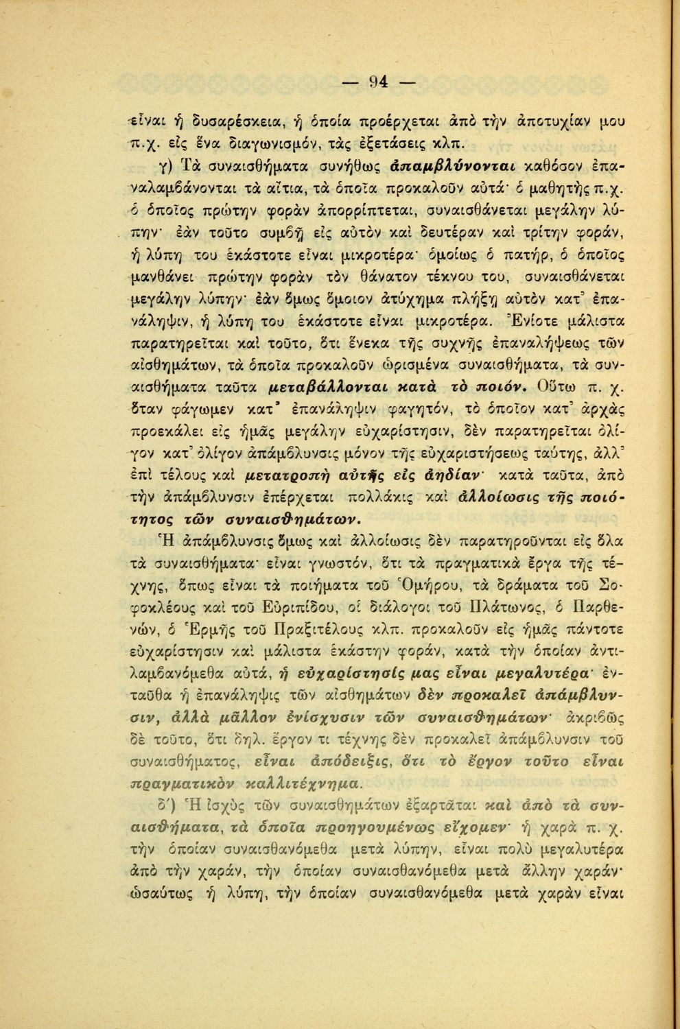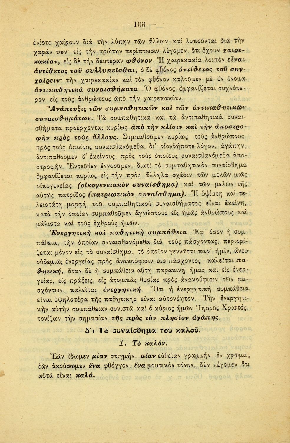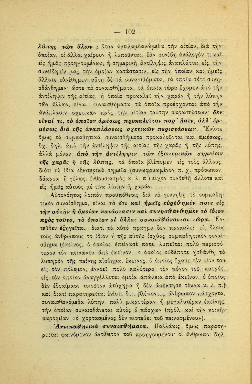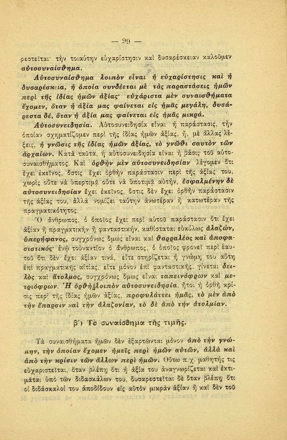 Σχολικό εγχειρίδιο Πειραματικής Ψυχολογίας για τη Γ΄ Γυμνασίου χωρισμένο σε τρία τμήματα: το παριστάναι, το συναισθάνεσθαι, και το βούλεσθαι.