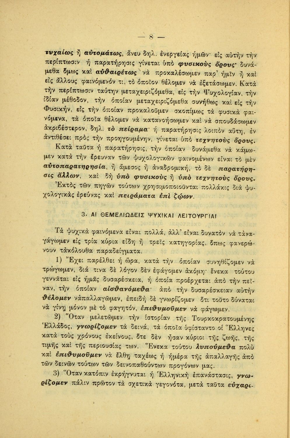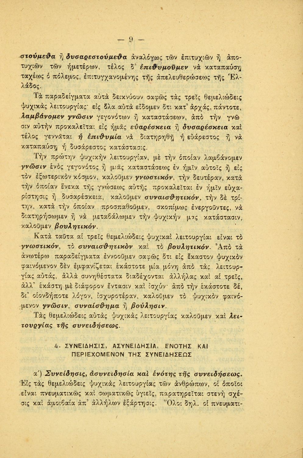 Σχολικό εγχειρίδιο Εμπειρικής Ψυχολογίας για τη Γ΄ Γυμνασίου χωρισμένο σε τρία τμήματα: το γνωστικό, το συναισθηματικό και το βουλητικό. Εξετάζει και τις ανωμαλίες της συνείδησης.