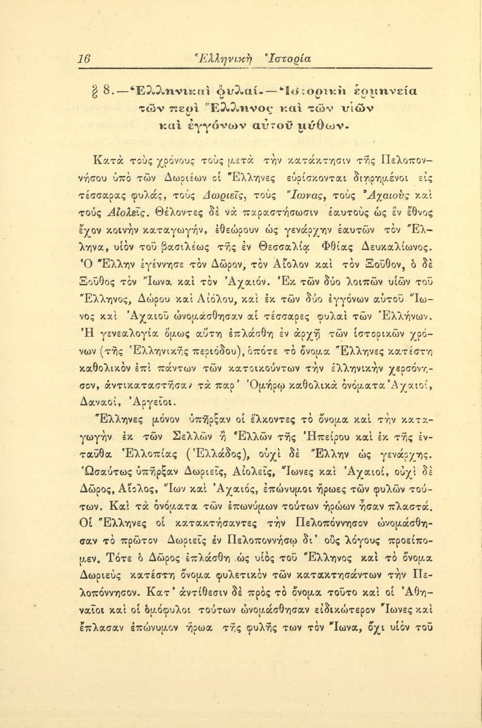 Βαθμίδα εκπαίδευσης: Δευτεροβάθμια Τάξη: Α' Γυμνασίου Μάθημα: Ιστορία Γλώσσα: Καθαρεύουσα Παρουσίαση περιεχομένου: Σχολικό εγχειρίδιο Ιστορίας Α΄ Γυμνασίου που καλύπτει την περίοδο από τους προϊστορικούς χρόνους μέχρι την κατάληψη της Ελλάδας από τους Ρωμαίους. |