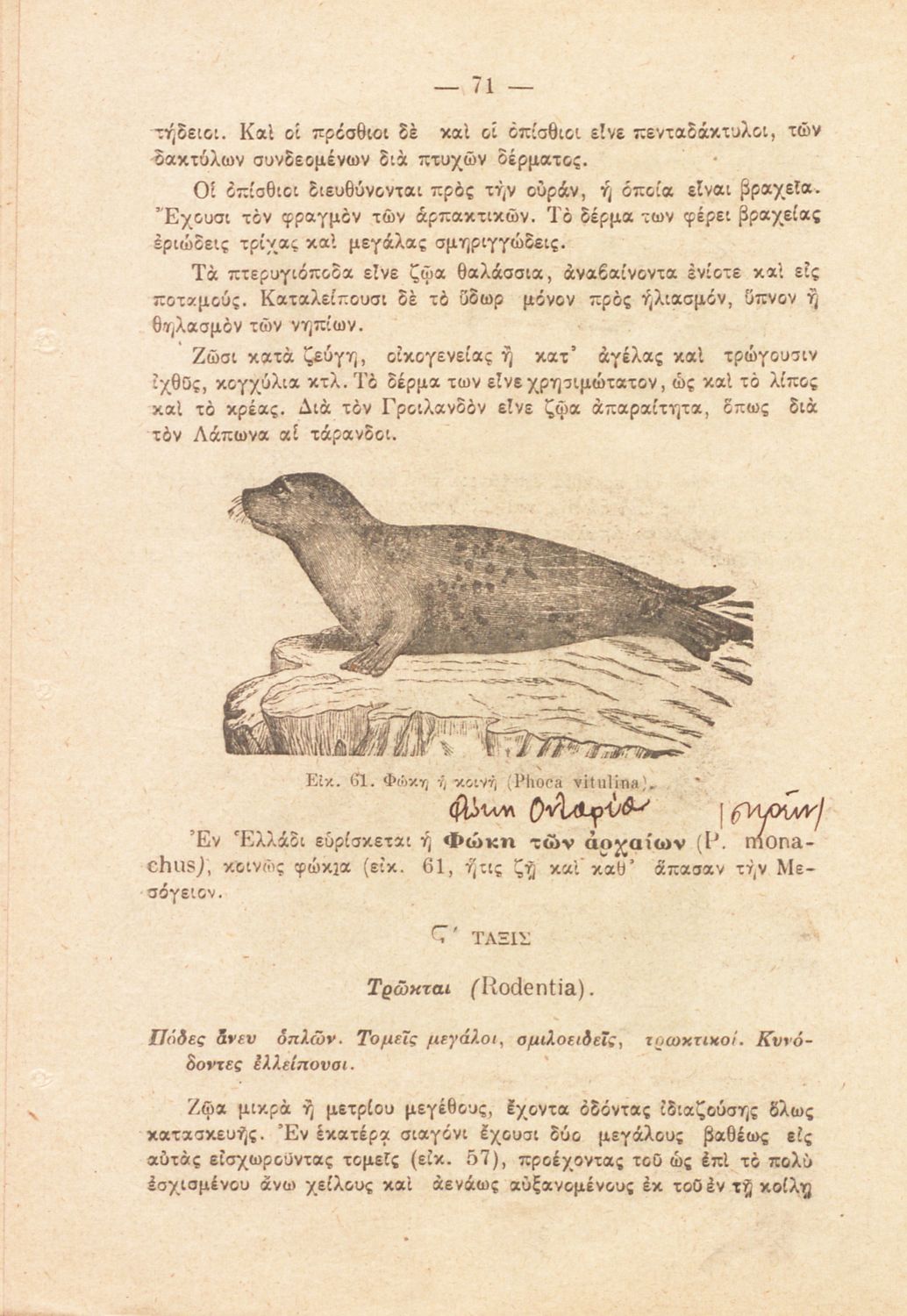 Τίτλος: Ζωολογία προς χρήσιν μαθητών της Α΄ τάξεως των Γυμνασίων