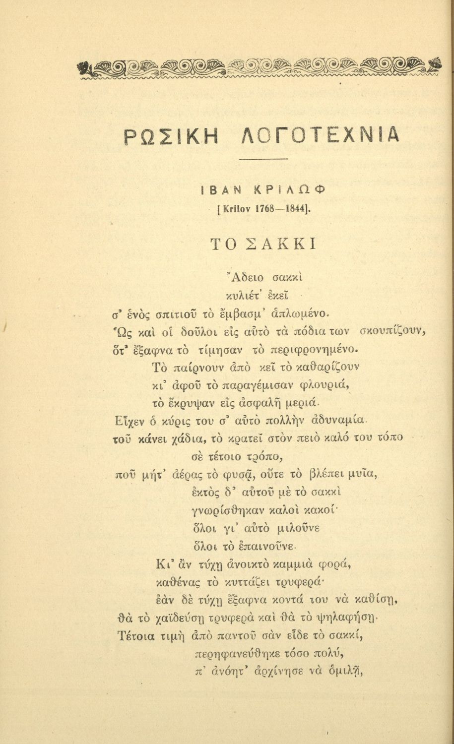 Τίτλος: Εκλογή αναγνωσμάτων εκ ξένων λογοτεχνιών εν μεταφράσει προς χρήσιν της Γ΄ τάξεως των Τριτάξιων Διδασκαλείων αμφοτέρων των φύλων και των Μονοτάξιων Διδασκαλείων έτι δε της Γ΄ και Δ΄ τάξεως των Γυμνασίων μετά βιογραφικών σημειώσεων και εικόνων