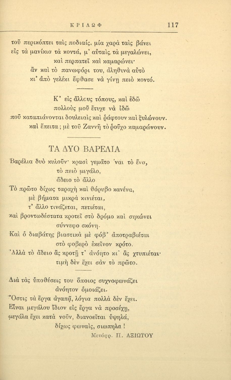 Τίτλος: Εκλογή αναγνωσμάτων εκ ξένων λογοτεχνιών εν μεταφράσει προς χρήσιν της Γ΄ τάξεως των Τριτάξιων Διδασκαλείων αμφοτέρων των φύλων και των Μονοτάξιων Διδασκαλείων έτι δε της Γ΄ και Δ΄ τάξεως των Γυμνασίων μετά βιογραφικών σημειώσεων και εικόνων