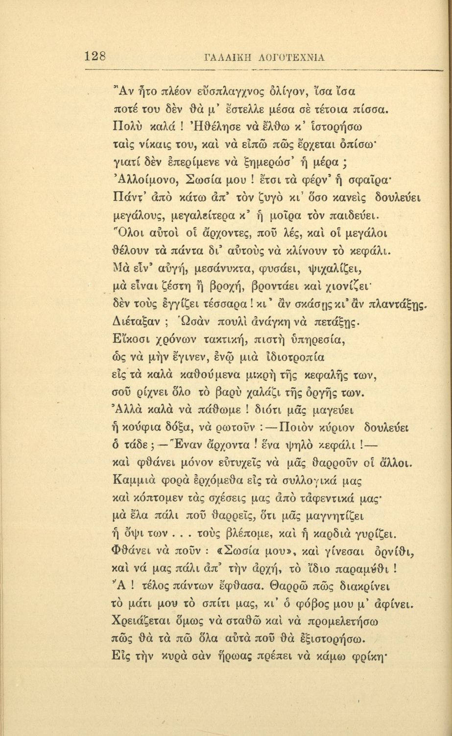 Σχολικό εγχειρίδιο για την Β΄ Γυμνασίου και την Γ΄ Αστικού Θηλέων για το μάθημα των Νέων Ελληνικών. Το εγχειρίδιο αποτελείται από κείμενα πεζού λόγου, επικολυρικά ποιήματα, ωδές, ηθογραφικά διηγήματα, ρητορικά