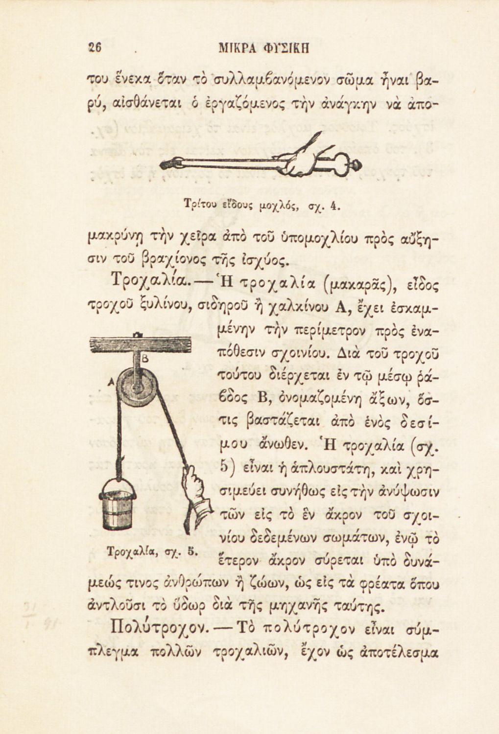 Βαθμίδα εκπαίδευσης: Πρωτοβάθμια Μάθημα: Φυσική Γλώσσα: Καθαρεύουσα Παρουσίαση περιεχομένου: Σχολικό εγχειρίδιο Φυσικής Δημοτικού που εστιάζει σε φυσικά φαινόμενα όπως η βαρύτητα, η θερμότητα, ο μαγνητισμός και ο ηλεκτρισμός. Περιέχει και βασικές αρχές της μετεωρολογίας. |