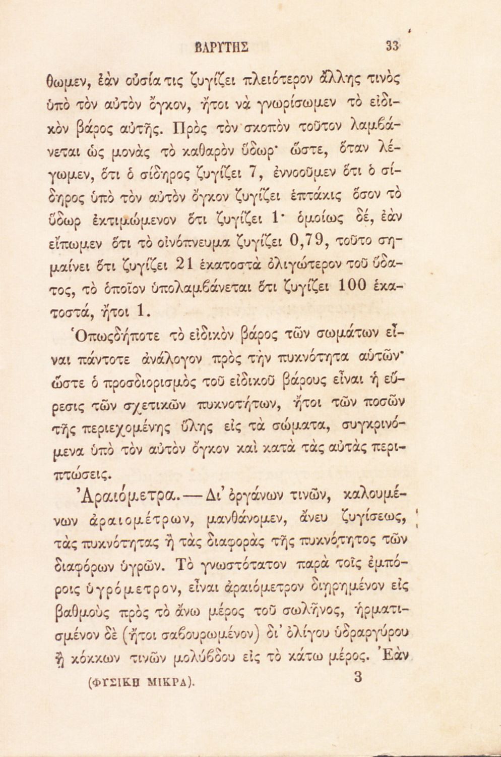Κωδικός αναγνώρισης: 20-07524 Τίτλος: Μικρά φυσική προς χρήσιν των Δημοτικών Σχολείων αρρένων και κορασίων Συγγραφέας: G. Beleze, Μάξιμος Δ. Δασκαλάκης (μτφρ.) Μέγεθος και υπόστρωμα: Σχολικό εγχειρίδιο, 17εκ., μαλακό εξώφυλλο, 106 σελίδες. Σκίτσα (ασπρόμαυρα). |