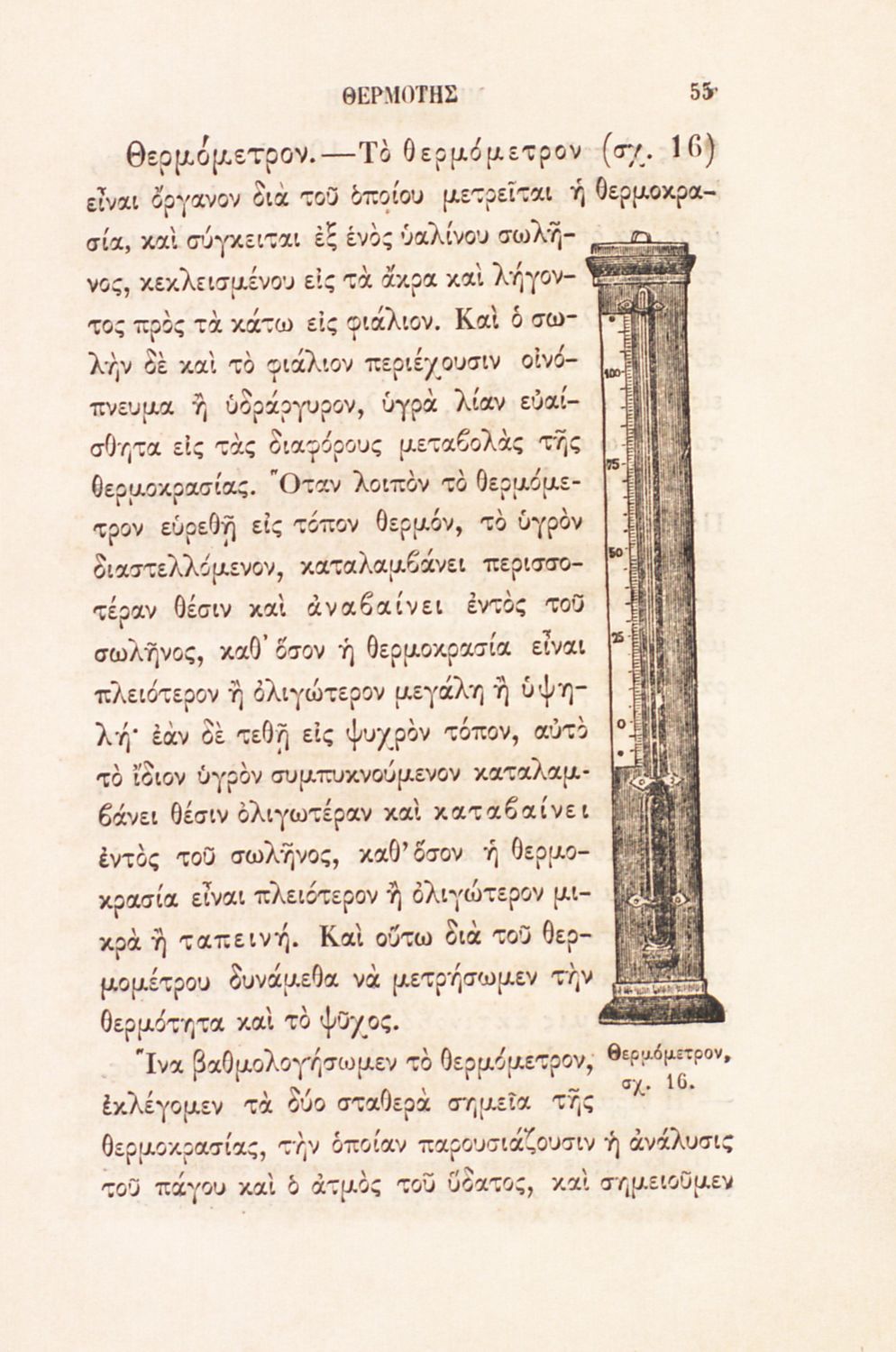 Βαθμίδα εκπαίδευσης: Πρωτοβάθμια Μάθημα: Φυσική Γλώσσα: Καθαρεύουσα Παρουσίαση περιεχομένου: Σχολικό εγχειρίδιο Φυσικής Δημοτικού που εστιάζει σε φυσικά φαινόμενα όπως η βαρύτητα, η θερμότητα, ο μαγνητισμός και ο ηλεκτρισμός. Περιέχει και βασικές αρχές της μετεωρολογίας. |