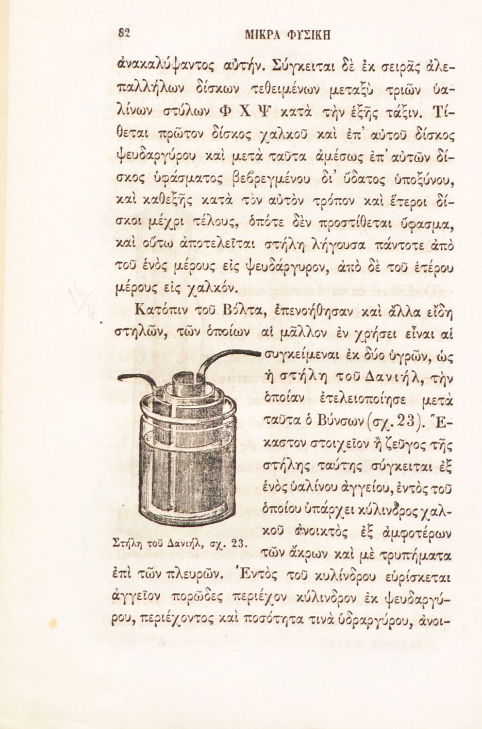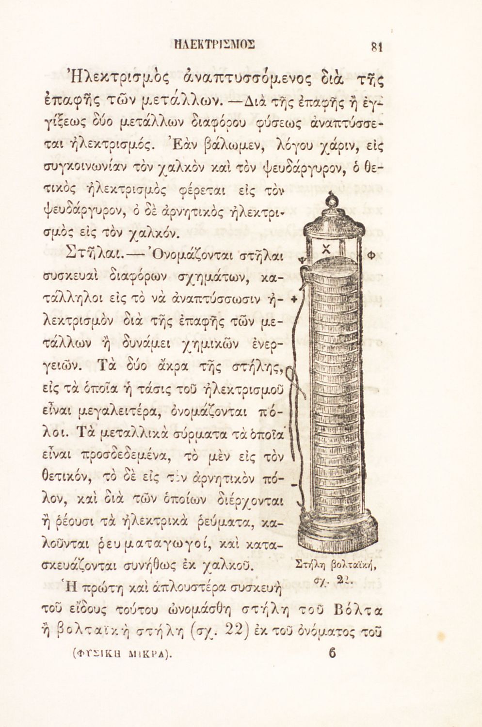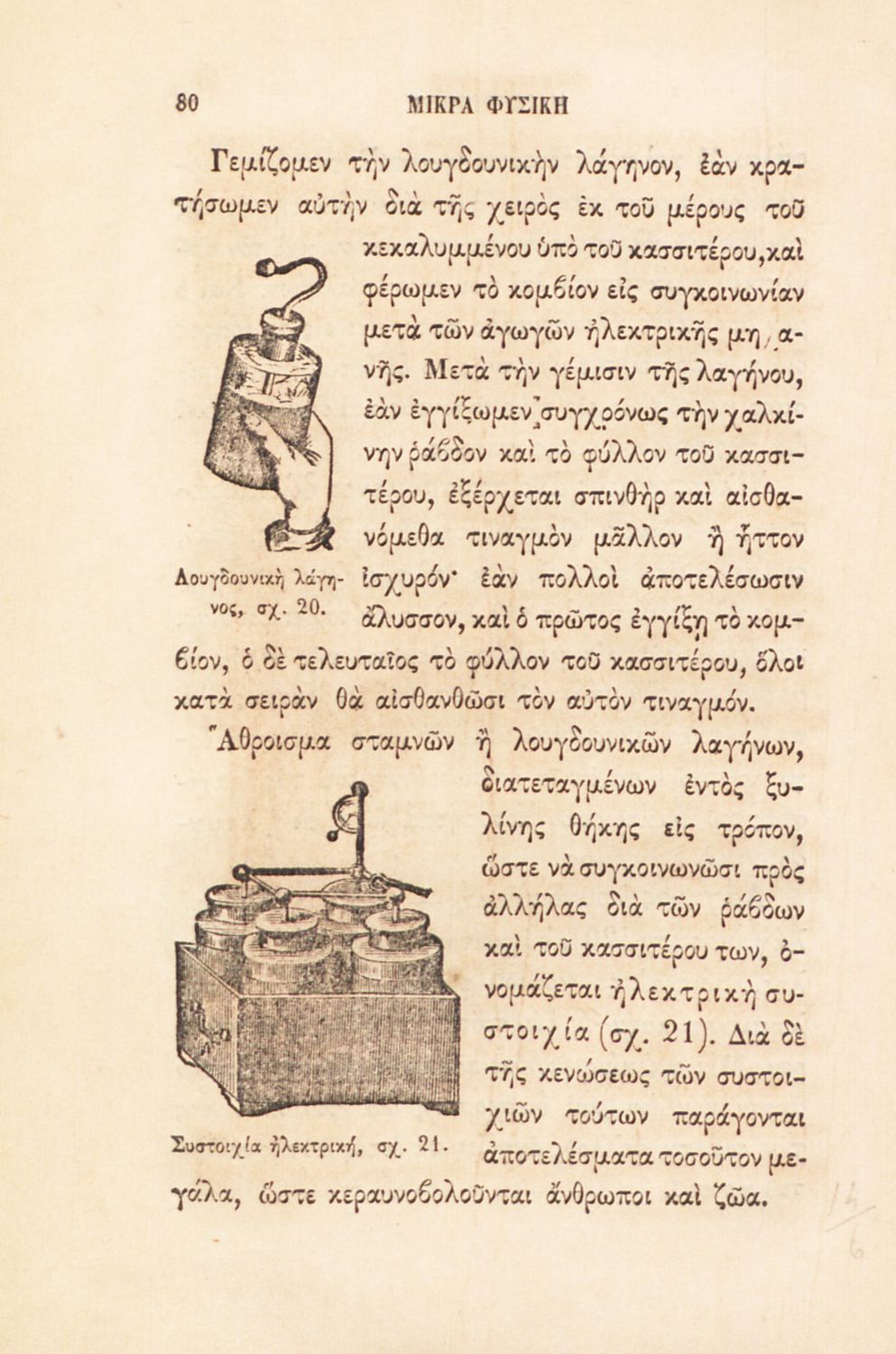 Κωδικός αναγνώρισης: 20-07524 Τίτλος: Μικρά φυσική προς χρήσιν των Δημοτικών Σχολείων αρρένων και κορασίων Συγγραφέας: G. Beleze, Μάξιμος Δ. Δασκαλάκης (μτφρ.) Μέγεθος και υπόστρωμα: Σχολικό εγχειρίδιο, 17εκ., μαλακό εξώφυλλο, 106 σελίδες. Σκίτσα (ασπρόμαυρα). |