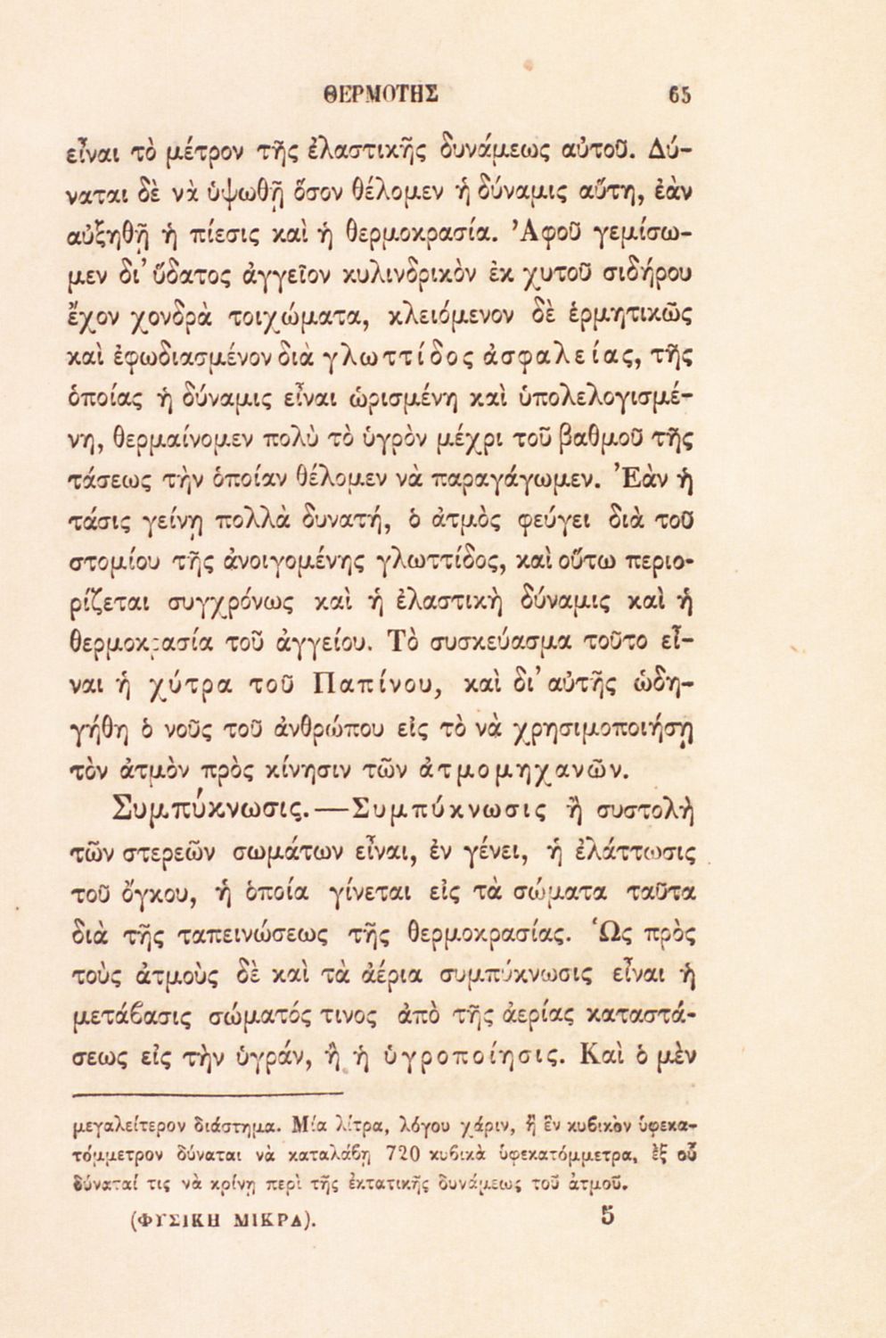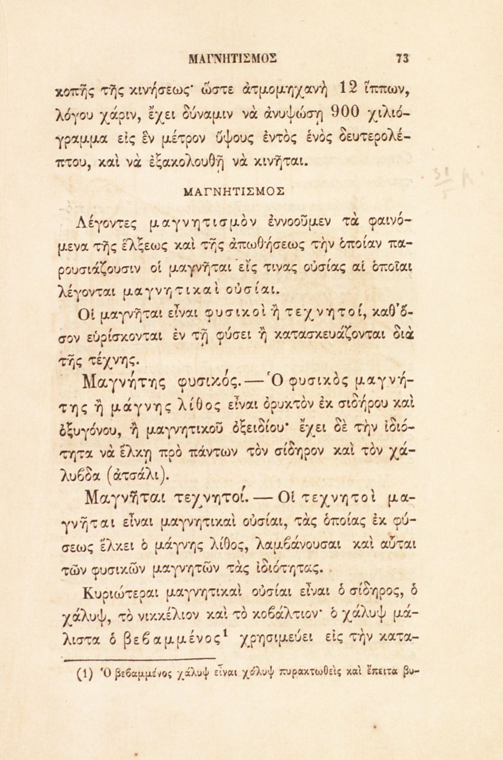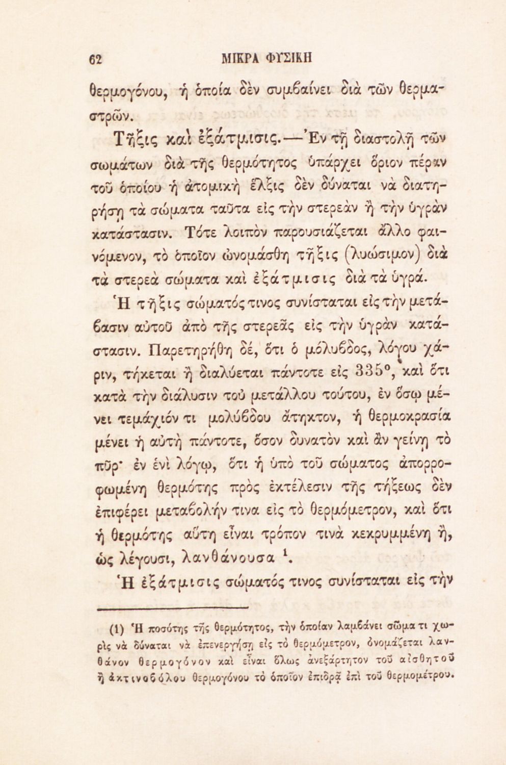 Κωδικός αναγνώρισης: 20-07524 Τίτλος: Μικρά φυσική προς χρήσιν των Δημοτικών Σχολείων αρρένων και κορασίων Συγγραφέας: G. Beleze, Μάξιμος Δ. Δασκαλάκης (μτφρ.) Μέγεθος και υπόστρωμα: Σχολικό εγχειρίδιο, 17εκ., μαλακό εξώφυλλο, 106 σελίδες. Σκίτσα (ασπρόμαυρα). |