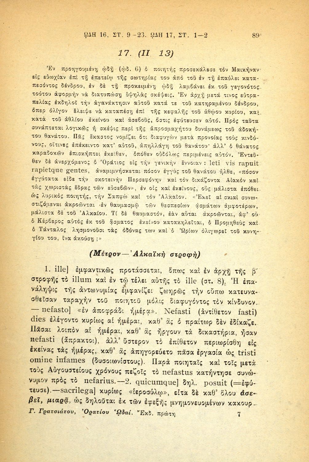 Κουίντος Οράτιος Φλάκκος (Q. Horati Flacci), Γεώργιος Κ. Γρατσιάτος (ερμηνευτικές σημειώσεις)