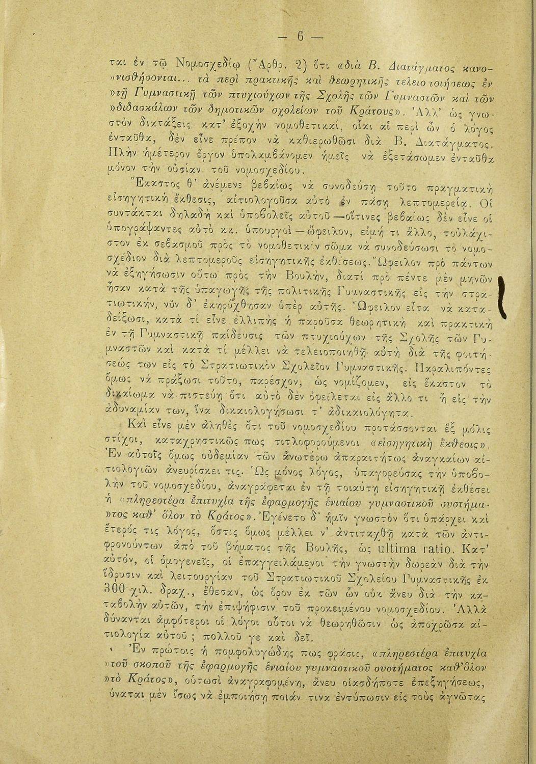 Μάθημα: Φυσική Αγωγή Γλώσσα: Καθαρεύουσα Παρουσίαση περιεχομένου: Υπόμνημα που υπέβαλαν στην Βουλή των Ελλήνων οι μαθητές της Γυμναστικής Ακαδημίας για να σχολιάσουν το σύστημα γυμναστικής εκπαίδευσης στην Ελλάδα, το νέο εκπαιδευτικό σύστημα γυμναστικής και την προσπάθεια υπονόμευσής του. |