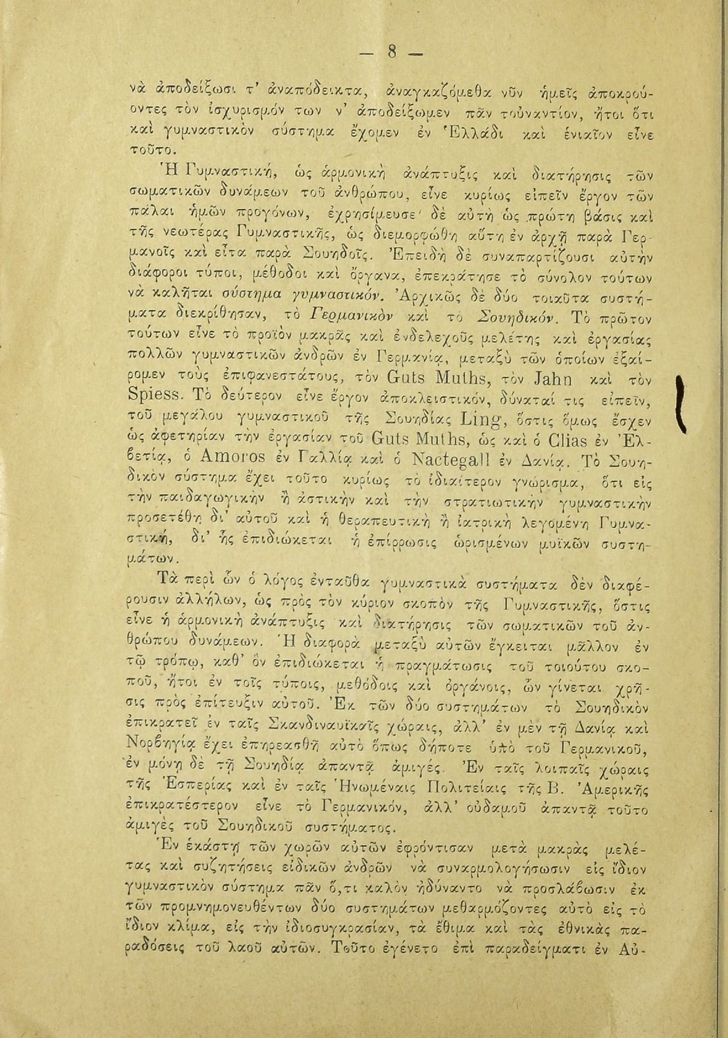 LDR 01346 2200169 4500 035 ## _a20-E0024 040 ## _aΚΕΝΕΚ - Εταιρεία Σπουδών Νεοελληνικού Πολιτισμού και Παιδείας 041 ## _ael 110 ## _aE0024 245 0# _aΗ εν Ελλάδι γυμναστική και το νομοσχέδιον περί στρατιωτικού σχολείου γυμναστικής. Υπόμνημα των μαθητών της Σχολής των Γυμναστών προς την Βουλήν των Ελλήνων 260 ## _aΑθήνα _bΑθ. Γ. Δεληγιάννης _c1907 300 ## _a24 _c21 520 ## _aΥπόμνημα που υπέβαλαν στην Βουλή των Ελλήνων οι μαθητές της Γυμναστικής Ακαδημίας για να σχολιάσουν το σύστημα γυμναστικής εκπαίδευσης στην Ελλάδα, το νέο εκπαιδευτικό σύστημα γυμναστικής και την προσπάθεια υπονόμευσής του. 522 ## _aΕλλάδα 546 ## _aΚαθαρεύουσα 563 ## _aΜαλακό Εξώφυλλο 650 #4 _aΓυμναστική _aΓυμναστικό εκπαιδευτικό σύστημα _aΝομοσχέδιο περί στρατιωτικού σχολείου