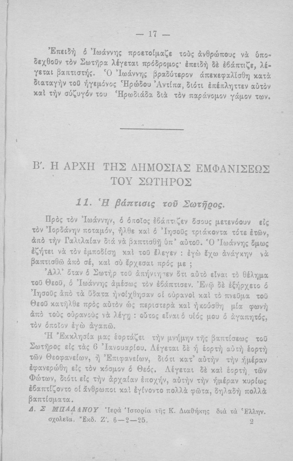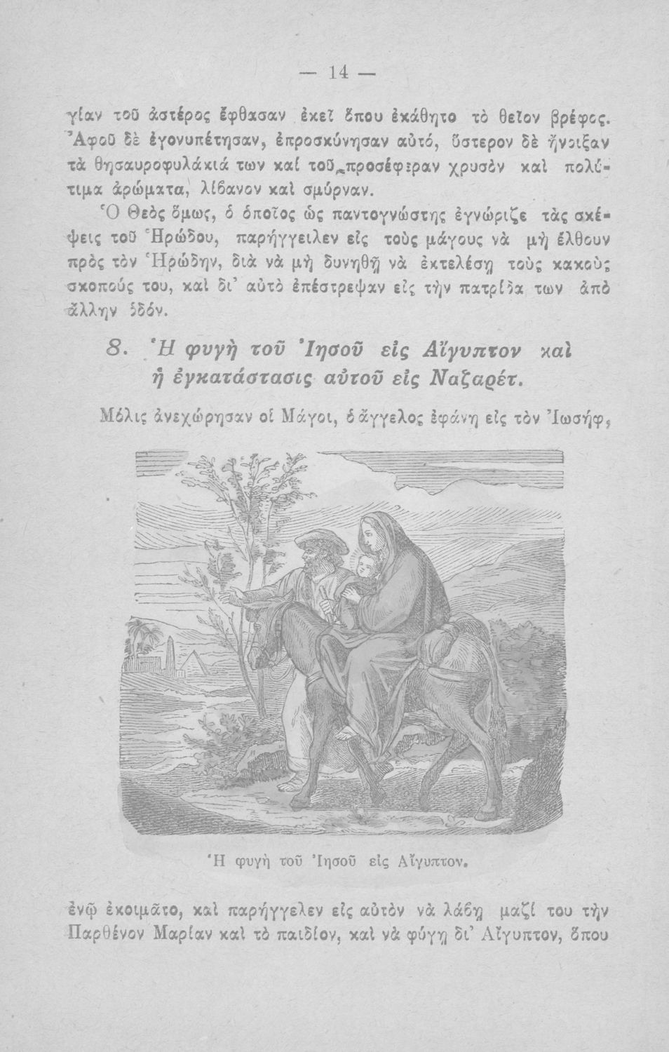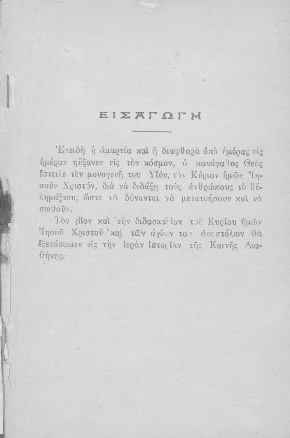 Σχολικό εγχειρίδιο Θρησκευτικών για τα Ελληνικά Σχολεία και Παρθεναγωγεία που συνιστά μία εξιστόρηση της Καινής Διαθήκης από τη γέννηση της Θεοτόκου ως την ανάληψη του Χριστού και τη δράση των Αποστόλων.