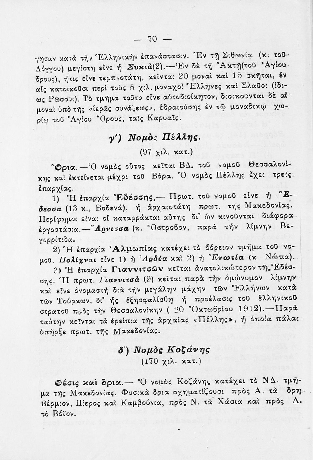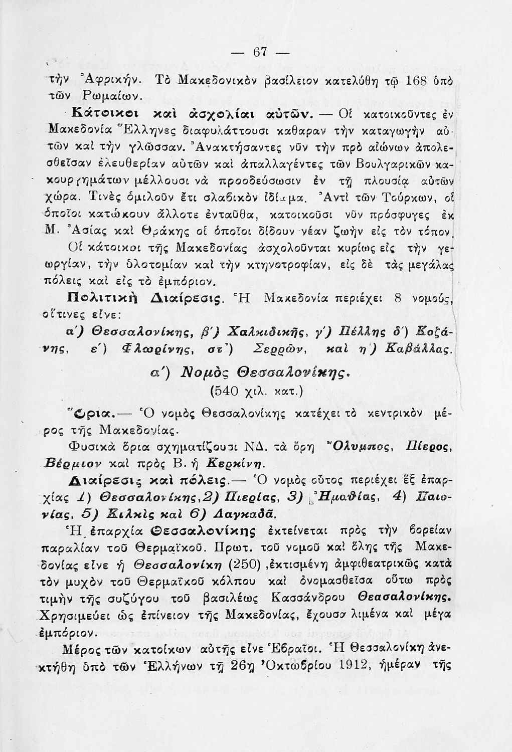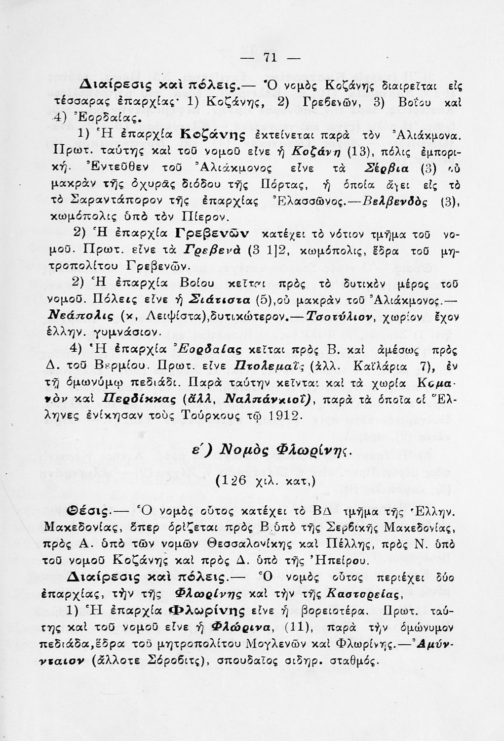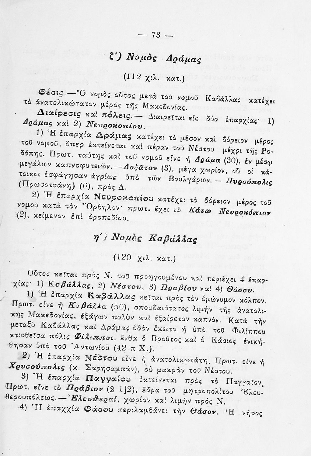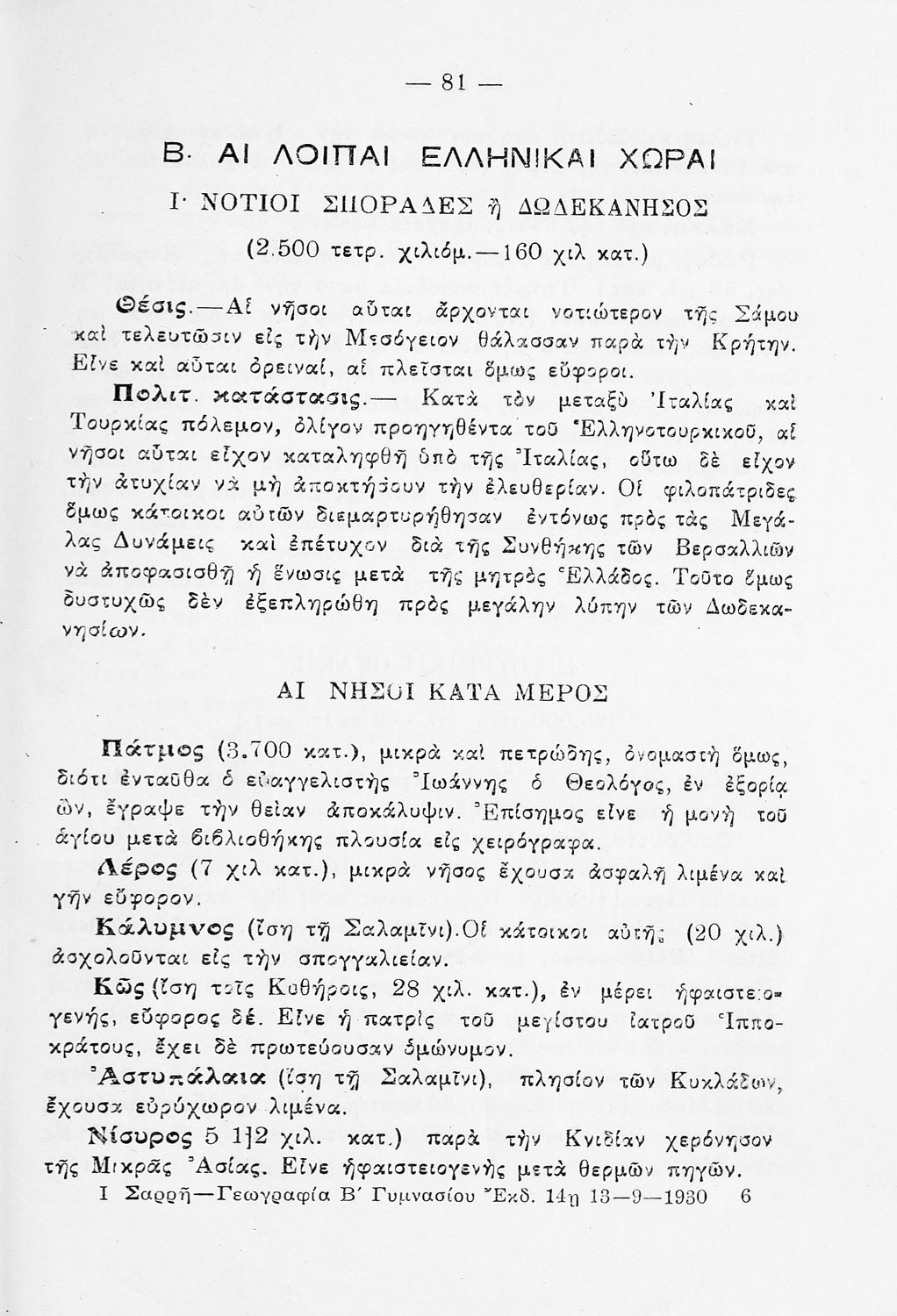 Σχολικό εγχειρίδιο Γεωγραφίας Β΄ Γυμνασίου που εστιάζει στην περίοδο της Α΄ Ελληνικής Δημοκρατίας και διακρίνει μεταξύ της Παλαιάς και Νέας Ελλάδας. Περιέχει εκτενή σχολιασμό των γεωμορφολογικών στοιχείων νομών, πόλεων και χωριών ενώ περιλαμβάνει και τα εδάφη της Τουρκικής Θράκης.