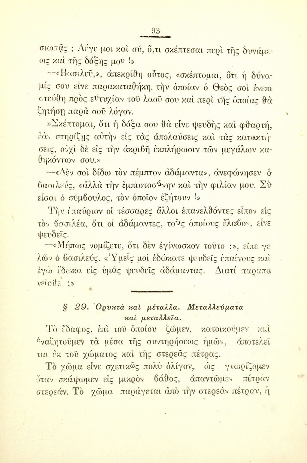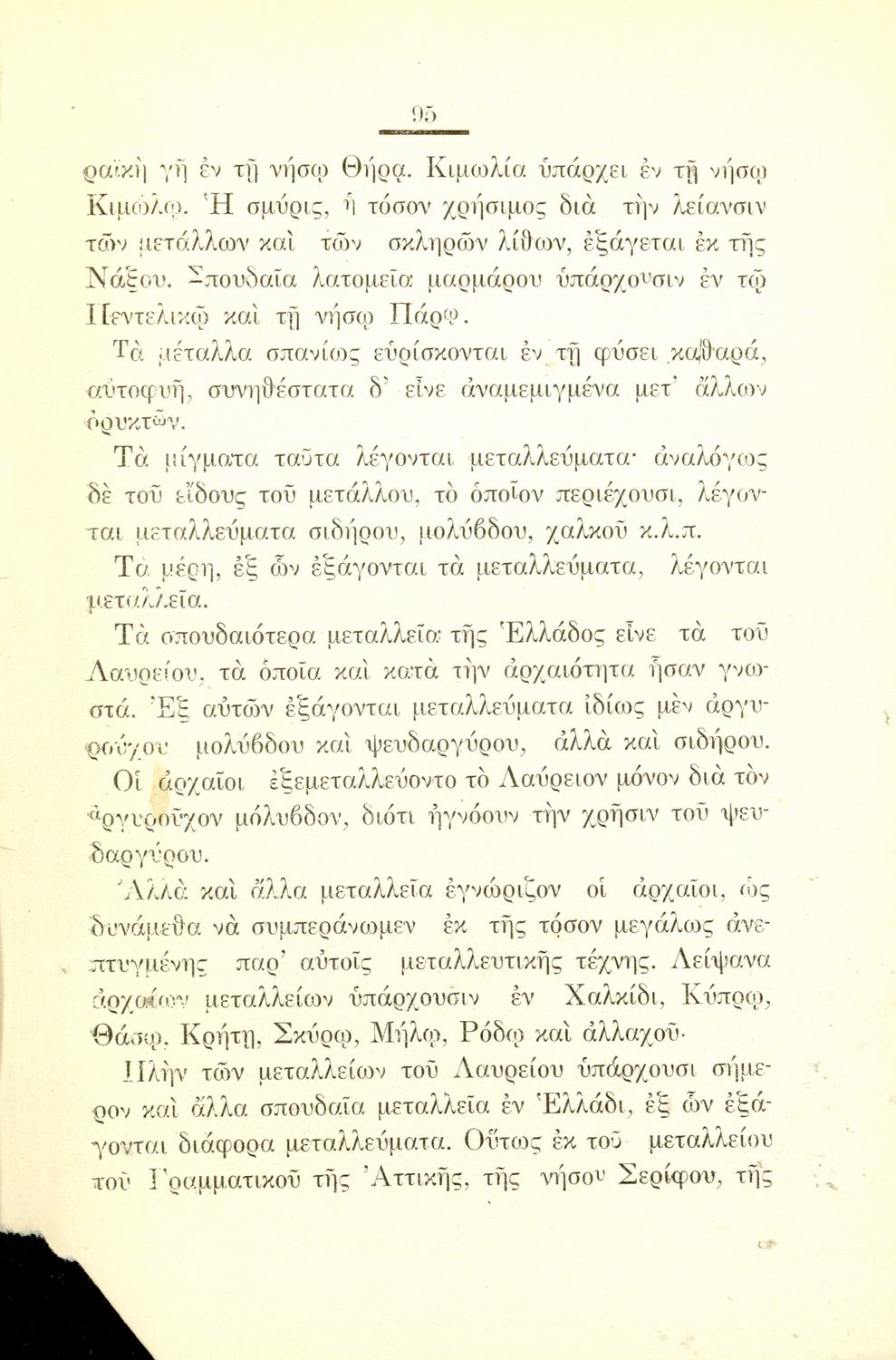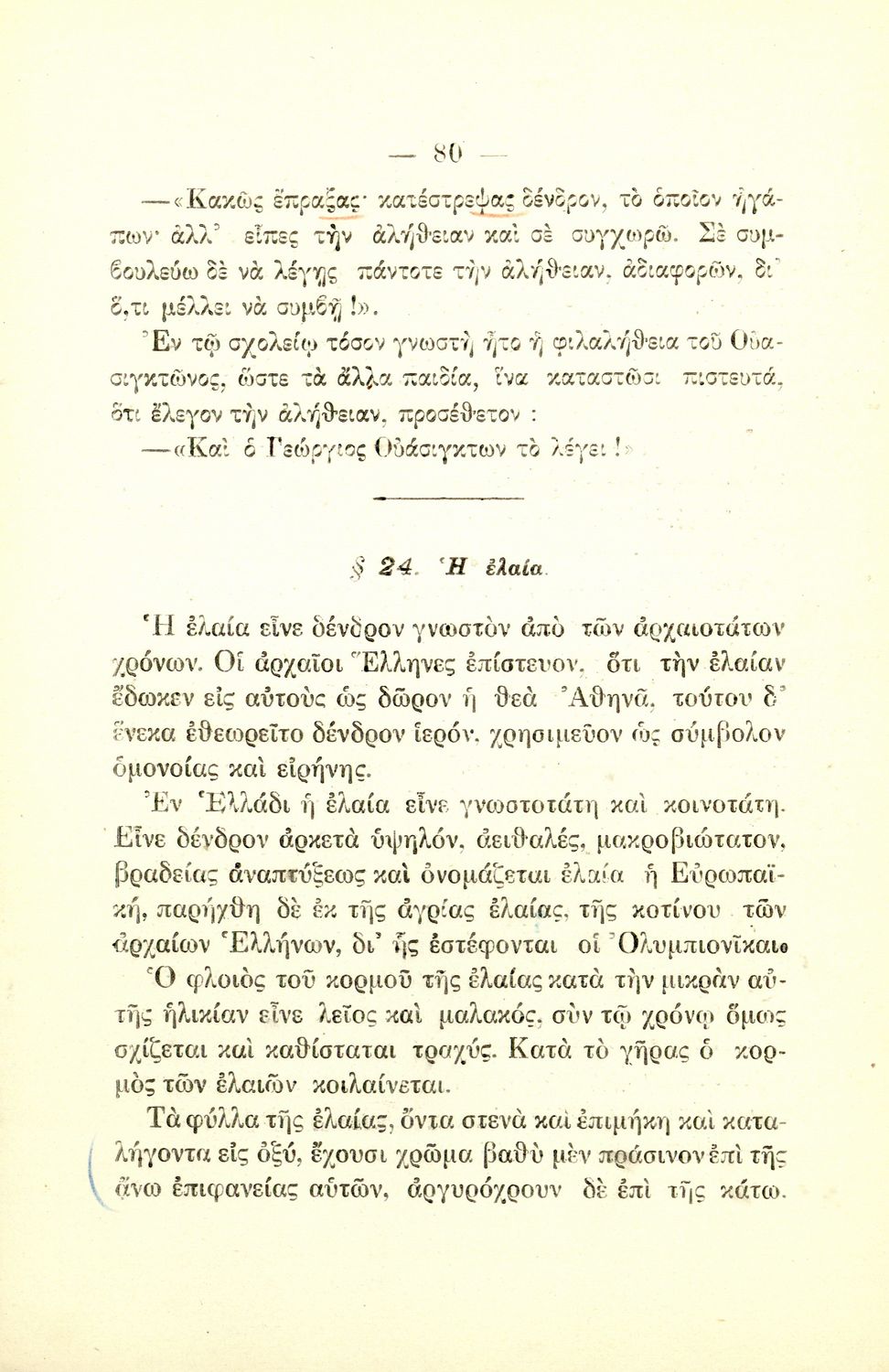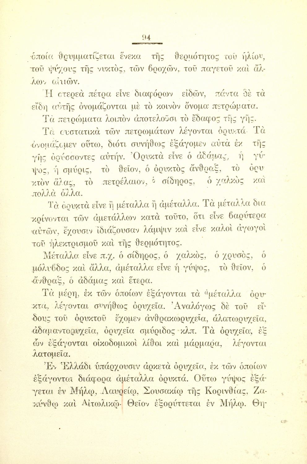 Βαθμίδα εκπαίδευσης: Πρωτοβάθμια Τάξη: Ε' Δημοτικού Μάθημα: Νέα Ελληνικά Γλώσσα: Καθαρεύουσα Παρουσίαση περιεχομένου: Αναγνωστικό Ε΄ Δημοτικού με φρονηματικό και διδακτικό ύφος που εστιάζει στην συμπεριφορά των μαθητών, την αγάπη για τη φύση και τα ζώα, το σεβασμό προς τους γονείς τους και τα επαγγέλματα και ασχολίες στην ελληνική ύπαιθρο. Περιέχει και στοιχεία για τον ορυκτό πλούτο της Ελλάδας. |