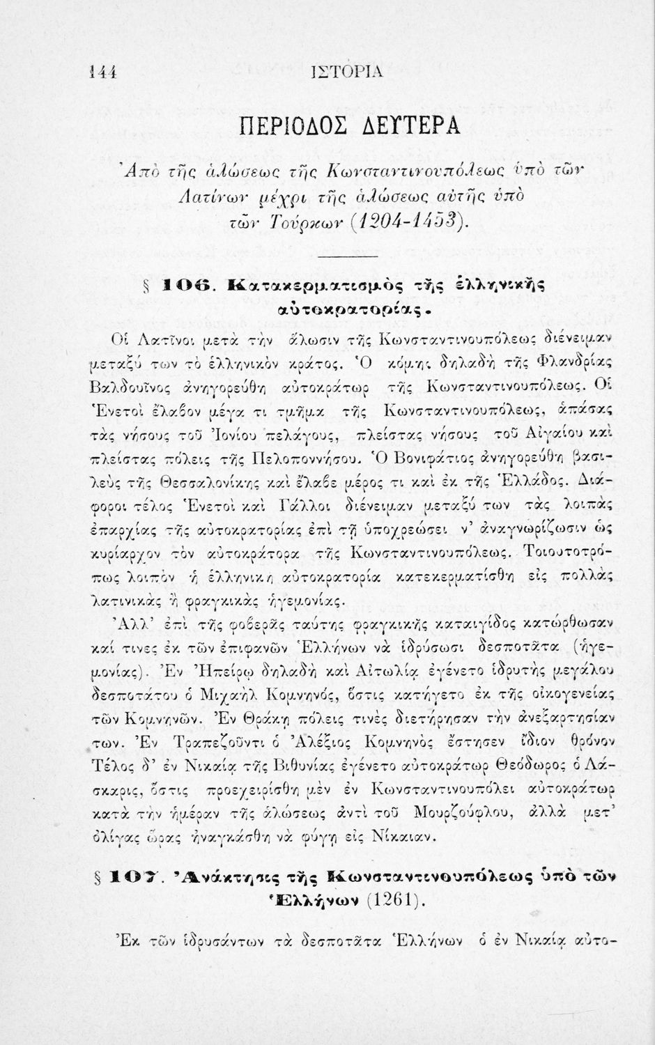 Σχολικό εγχειρίδιο Ιστορίας για τα Ελληνικά και Αστικά Σχολεία και Παρθεναγωγεία που καλύπτει την περίοδο από τους προϊστορικούς χρόνους μέχρι την Ελληνική Επανάσταση και την προσάρτηση των Επτανήσων και της Θεσσαλίας.