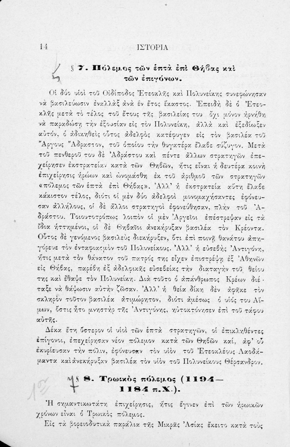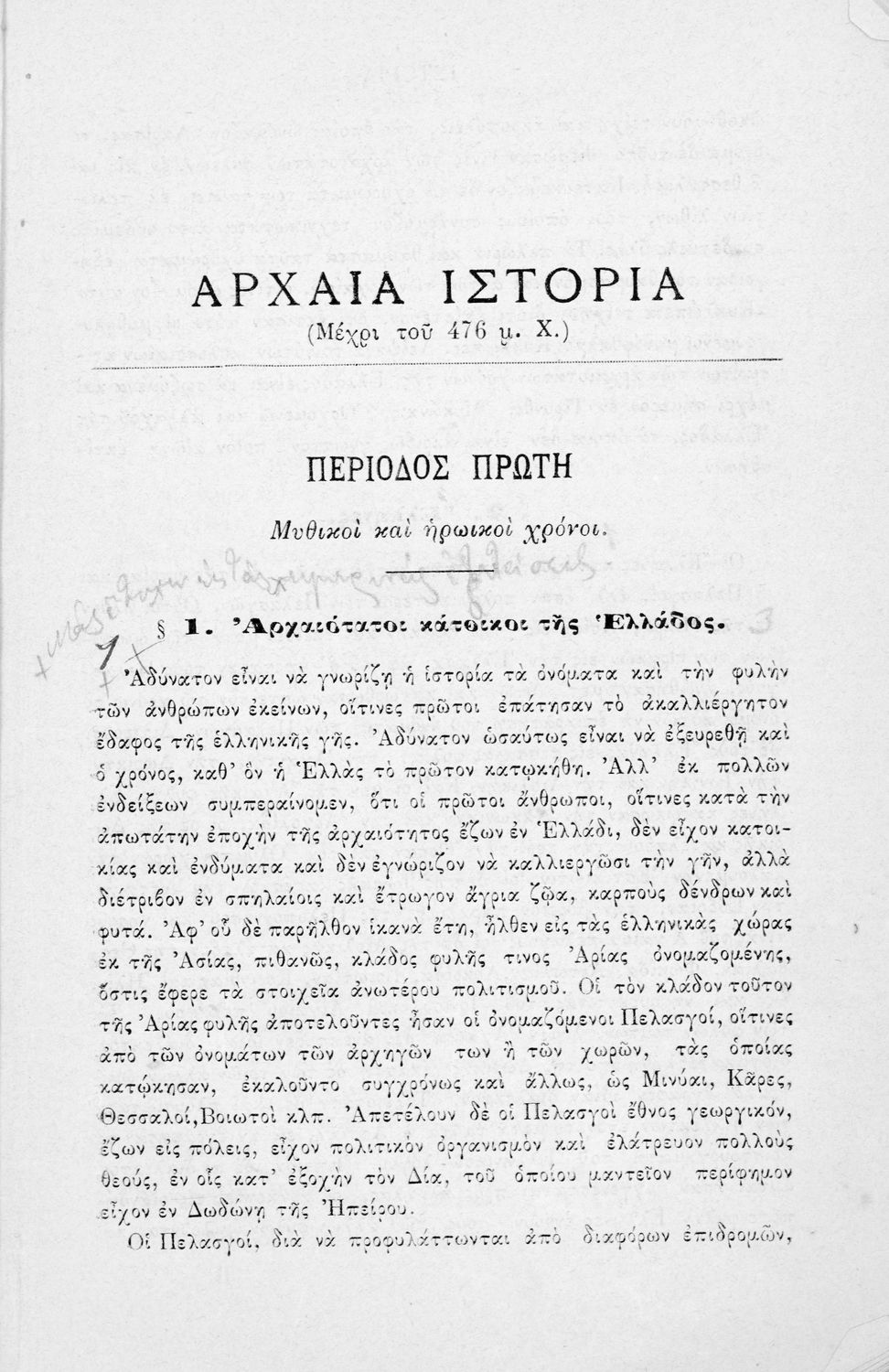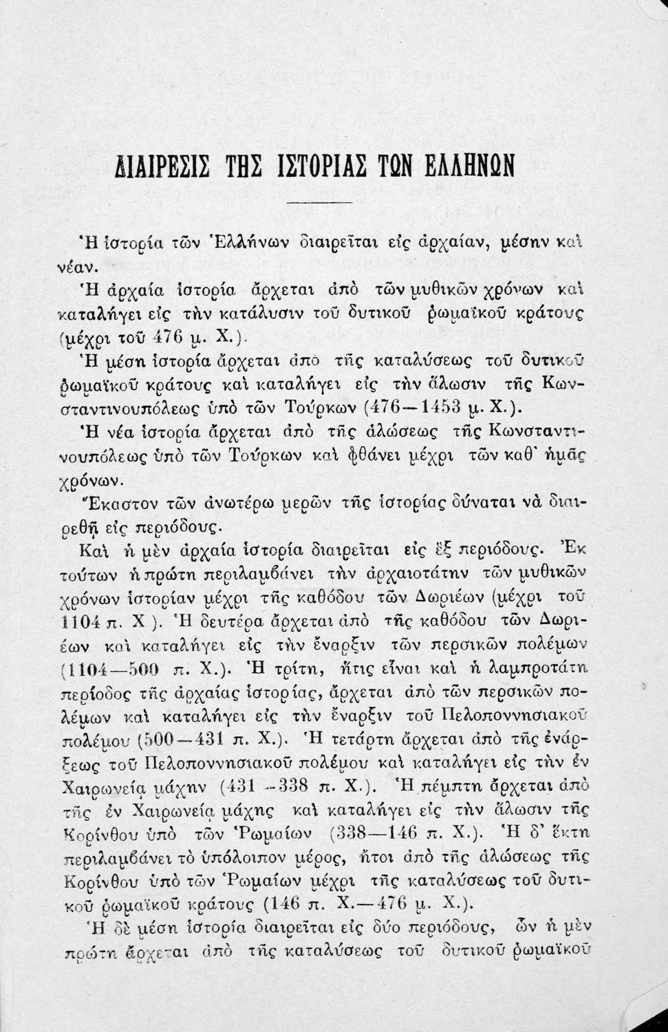 Σχολικό εγχειρίδιο Ιστορίας για τα Ελληνικά και Αστικά Σχολεία και Παρθεναγωγεία που καλύπτει την περίοδο από τους προϊστορικούς χρόνους μέχρι την Ελληνική Επανάσταση και την προσάρτηση των Επτανήσων και της Θεσσαλίας.