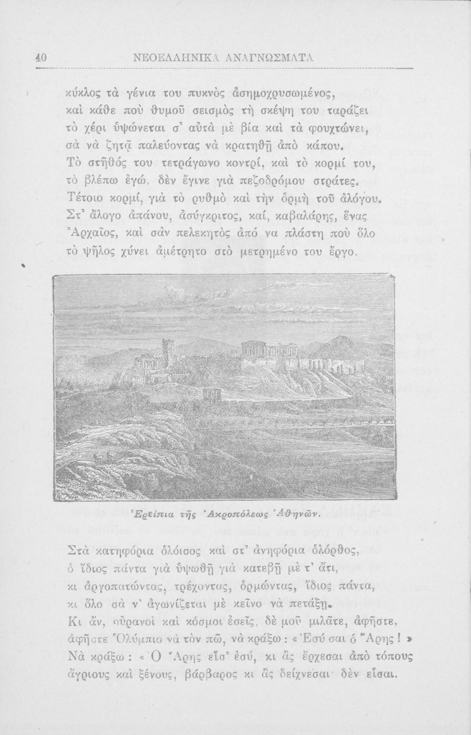 Σχολικό εγχειρίδιο Νεοελληνικών αναγνωσμάτων που περιλαμβάνει πεζά και ποιήματα με θέματα από την εθνική ζωή.