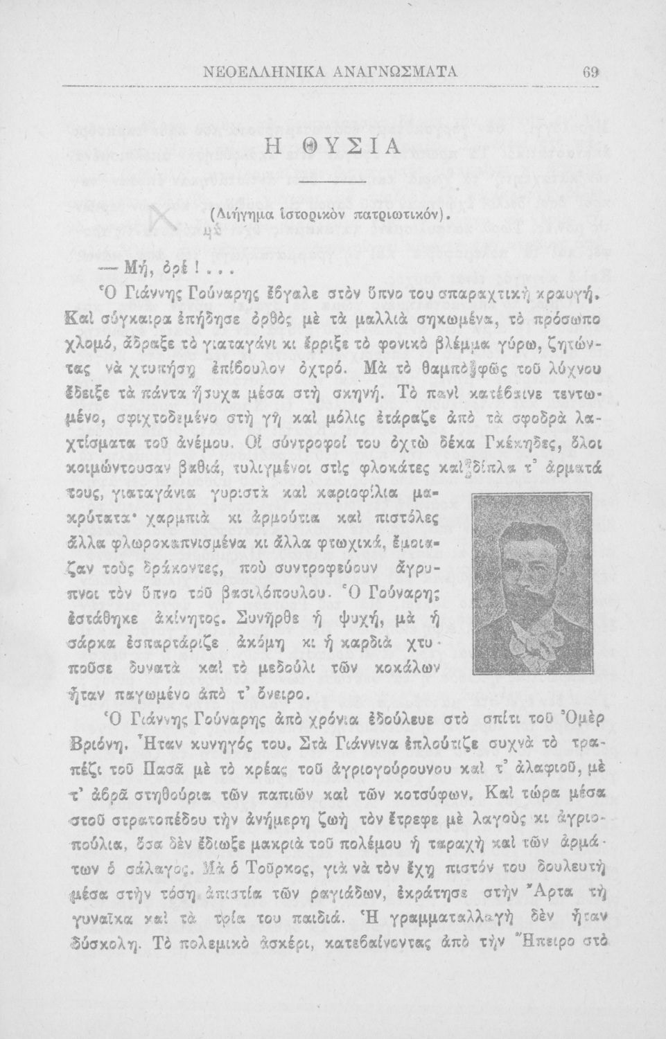 Σχολικό εγχειρίδιο Νεοελληνικών αναγνωσμάτων που περιλαμβάνει πεζά και ποιήματα με θέματα από την εθνική ζωή.