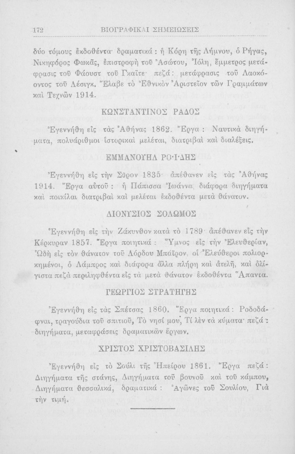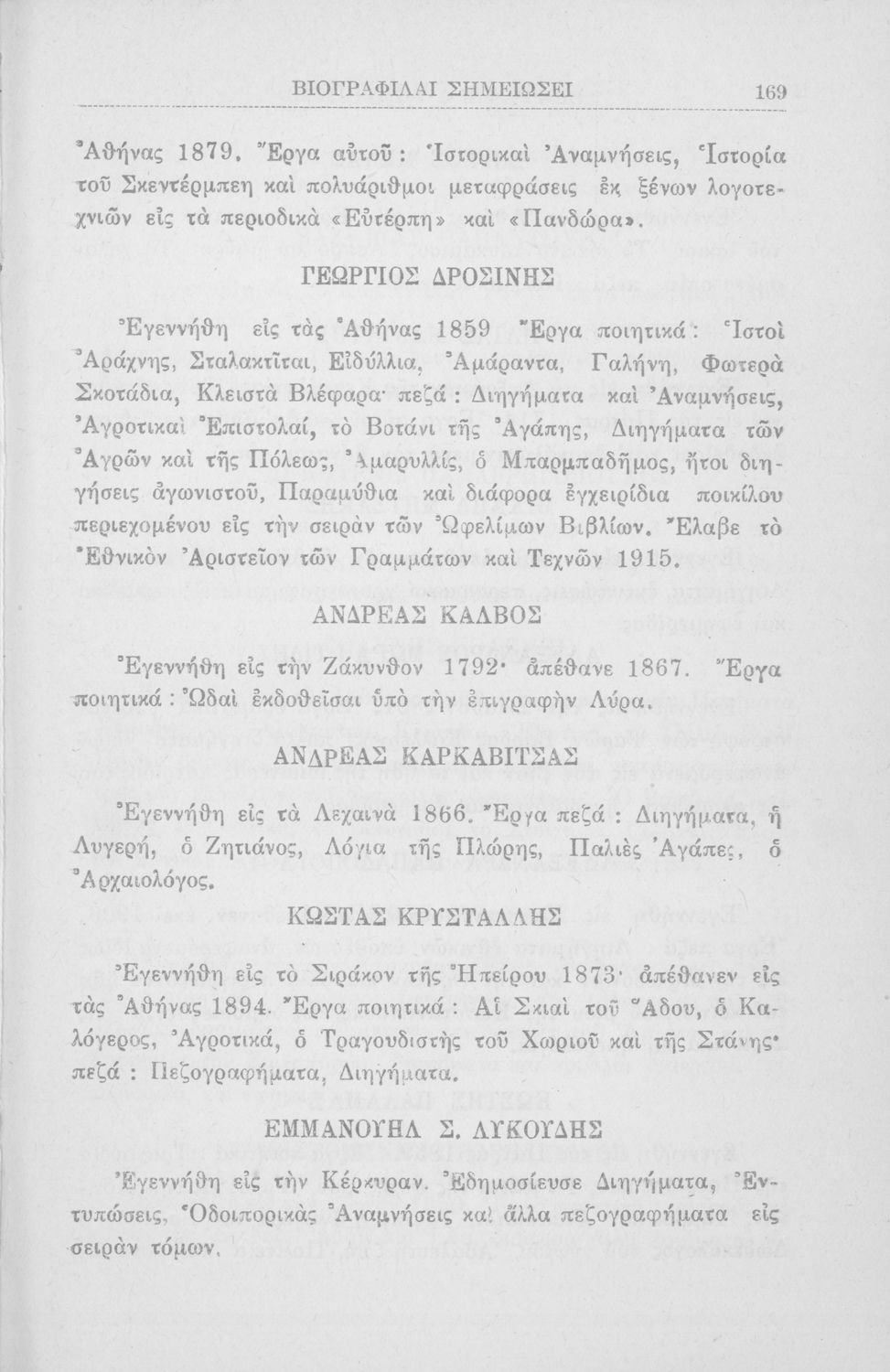 Σχετιζόμενοι όροι:  Κρυστάλλης, Παλαμάς, Σολωμός, Δροσίνης