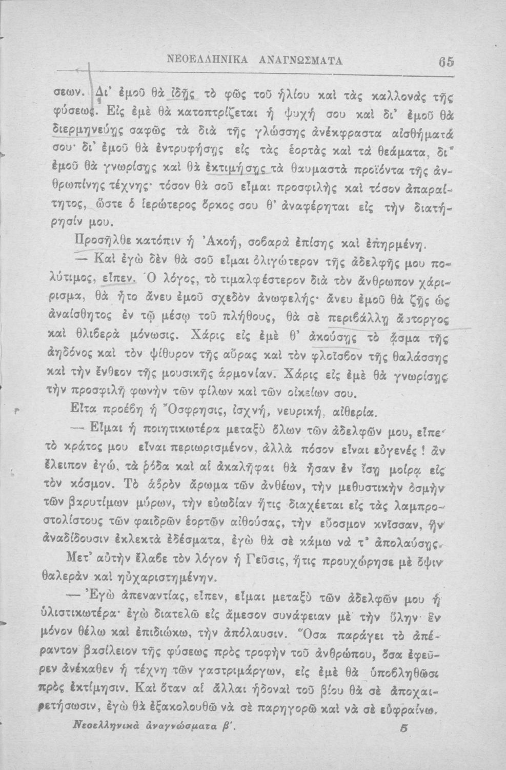 Βαθμίδα εκπαίδευσης: Δευτεροβάθμια Τάξη: Β' Ελληνικού Σχολείου Μάθημα: Νέα Ελληνικά Γλώσσα: Δημοτική, Καθαρεύουσα Παρουσίαση περιεχομένου: Σχολικό εγχειρίδιο Νέων Ελληνικών Β' Ελληνικού Σχολείου που περιλαμβάνει κείμενα Ελλήνων συγγραφέων εμπνευσμένα από την σύγχρονη ελληνική ιστορία, τη θρησκευτική παράδοση και την καθημερινή ζωή. Περιέχει και παράρτημα με βιογραφίες των συγγραφέων και λεξιλόγιο. |