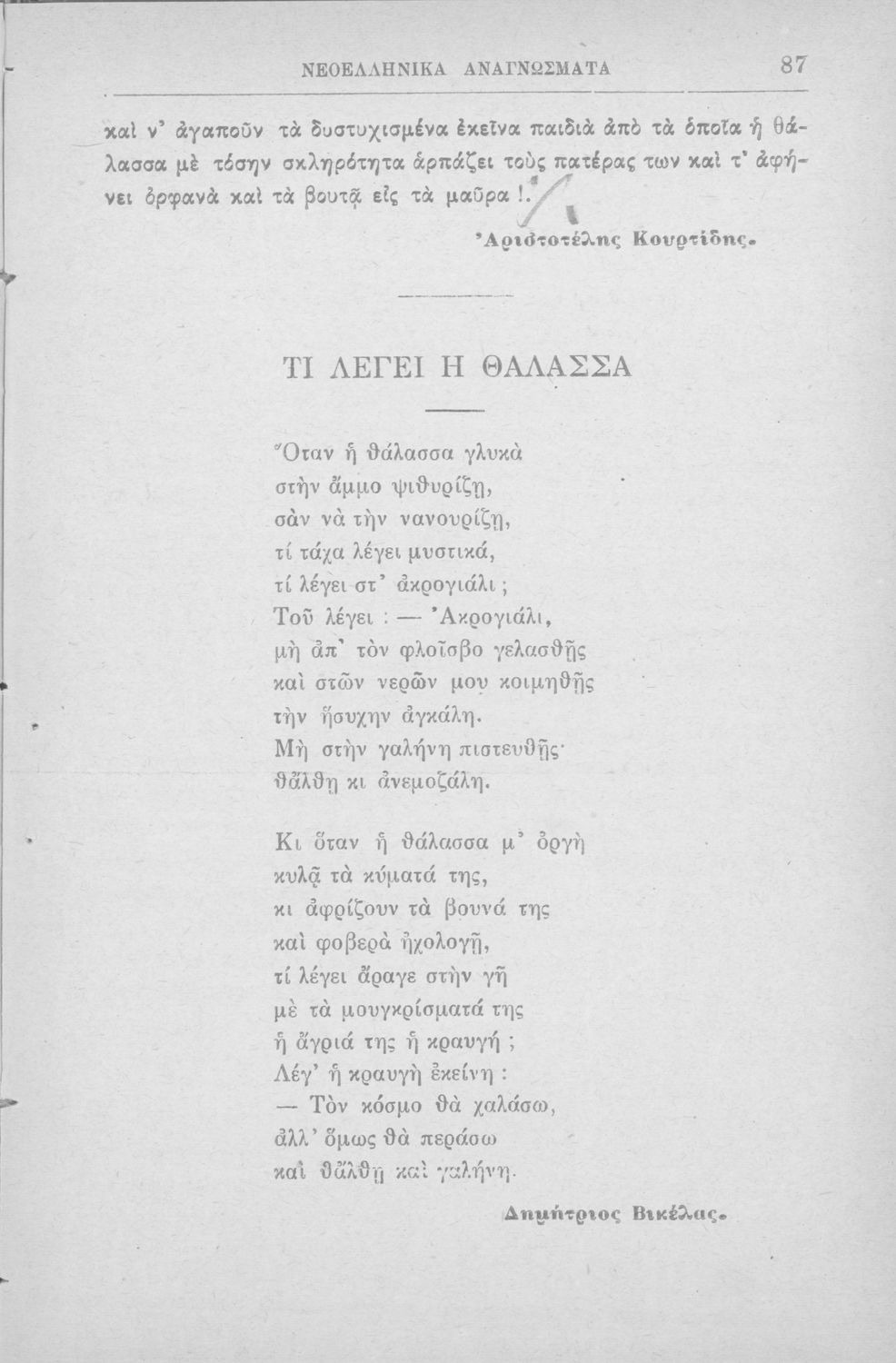 Σχετιζόμενοι όροι:  Πολέμης, Δροσίνης, Παλαμάς, Βικέλας
