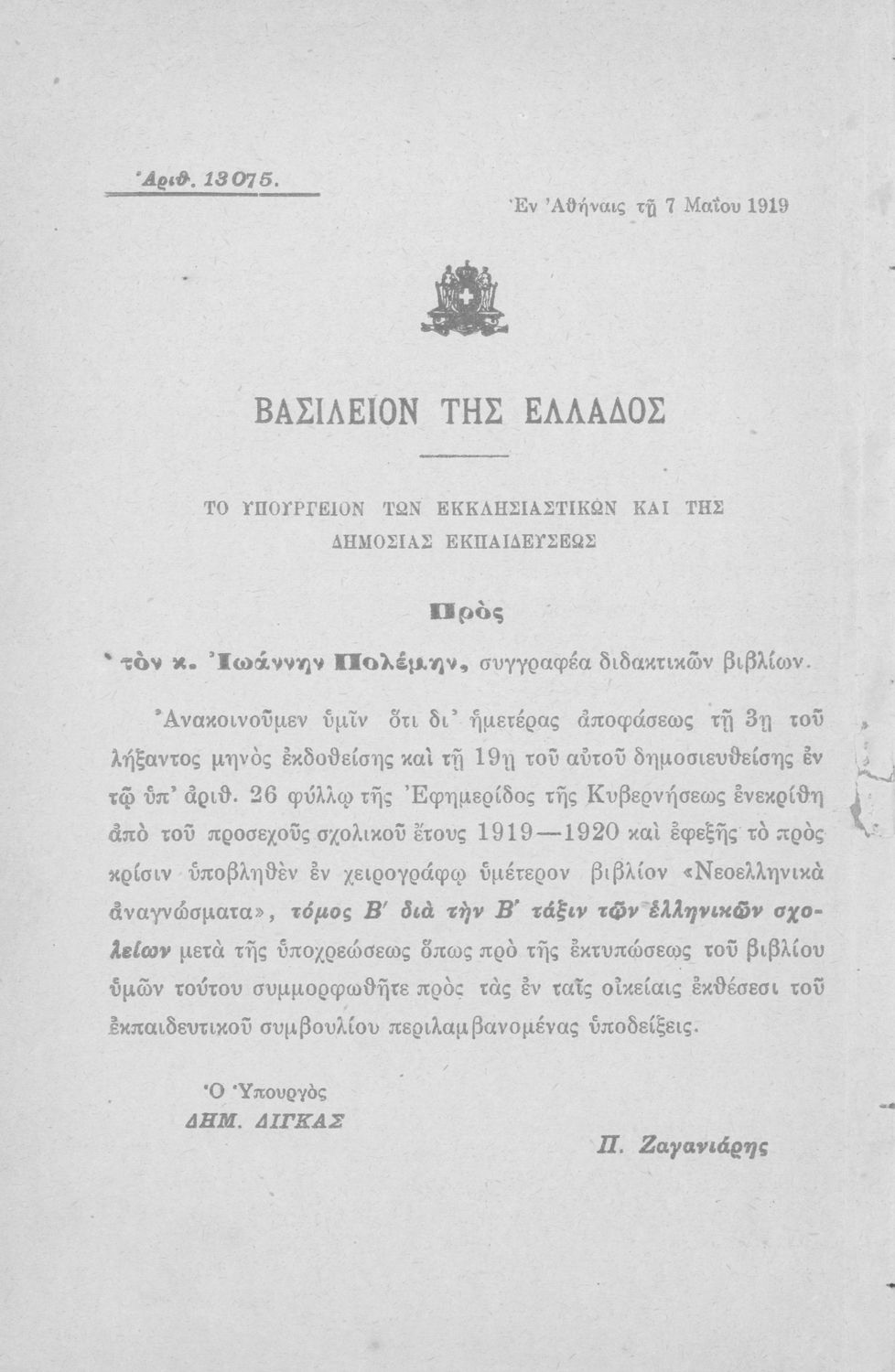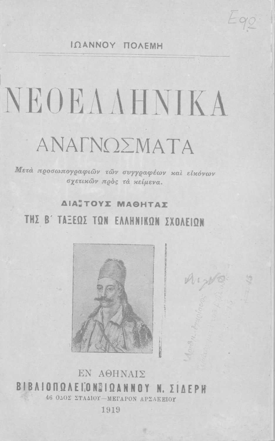 Εκδότης: Ιωάννης Ν. Σιδέρης Έτος έκδοσης: 1919 Τόπος έκδοσης: Αθήνα |