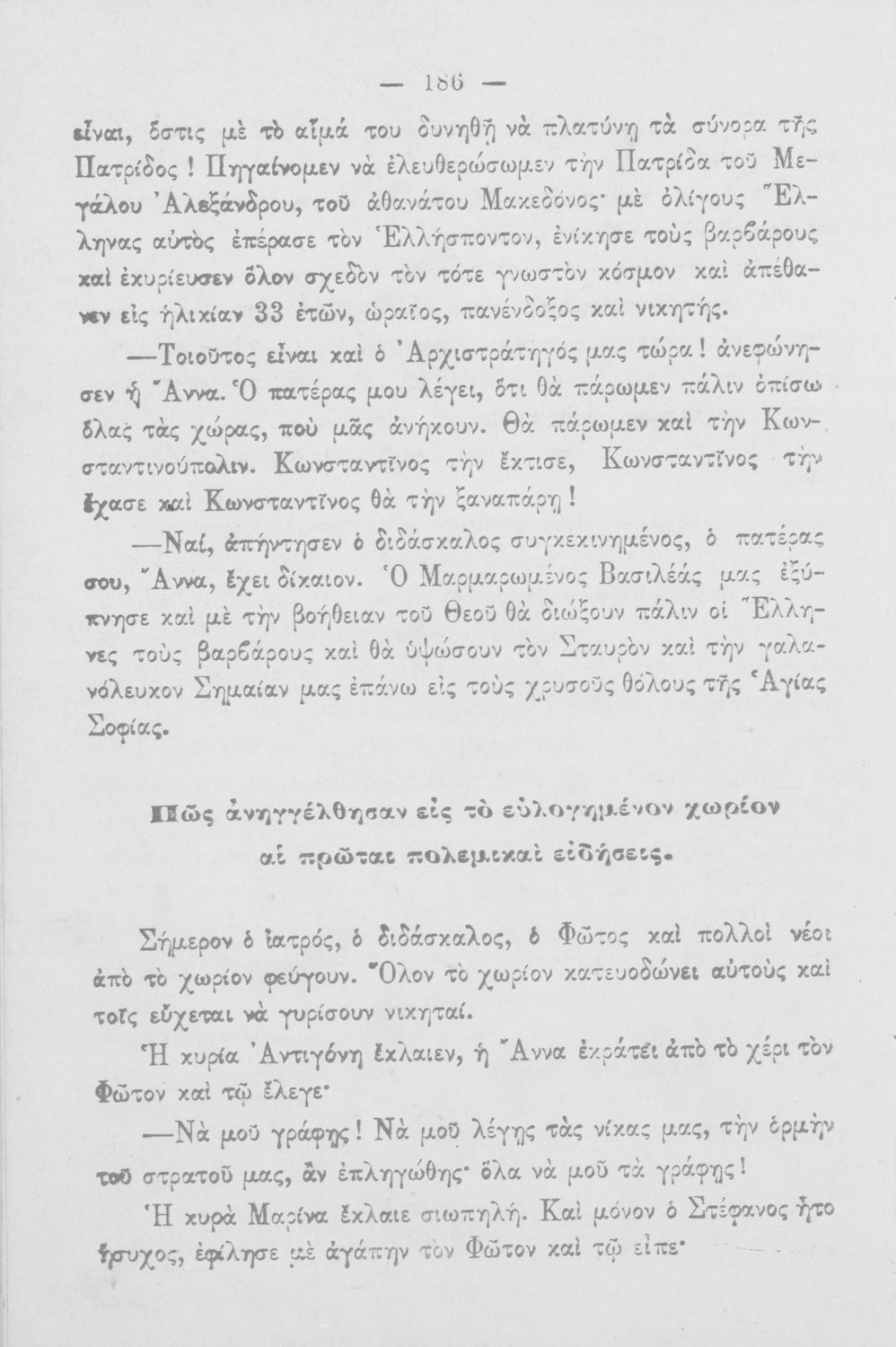 Αναγνωστικό Ε΄ Δημοτικού που περιλαμβάνει εξιστορήσεις πολεμικών γεγονότων εμπνευσμένες από την περίοδο του Βυζαντίου και των Βαλκανικών Πολέμων.