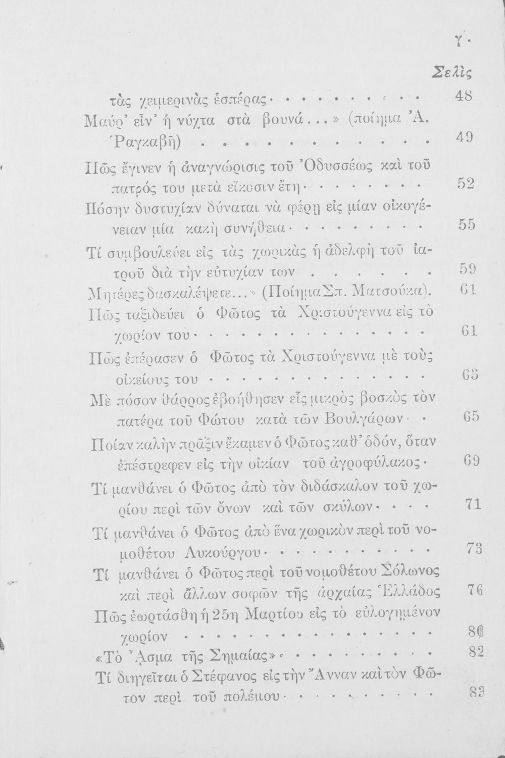 Αναγνωστικό για τους μαθητές της Δ΄ Δημοτικού που περιλαμβάνει ποιήματα και πεζά ηθικοπλαστικού περιεχομένου με θέματα από την ελληνική φύση και ιστορία.