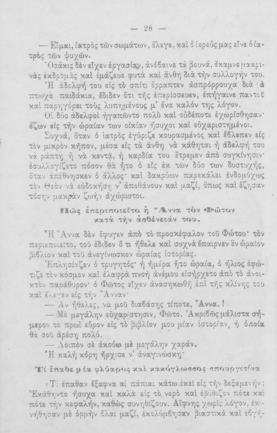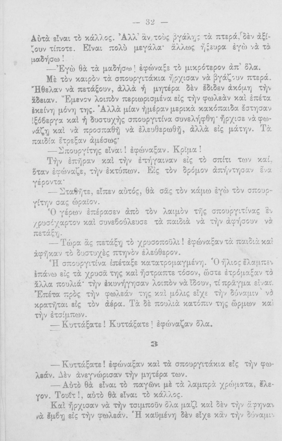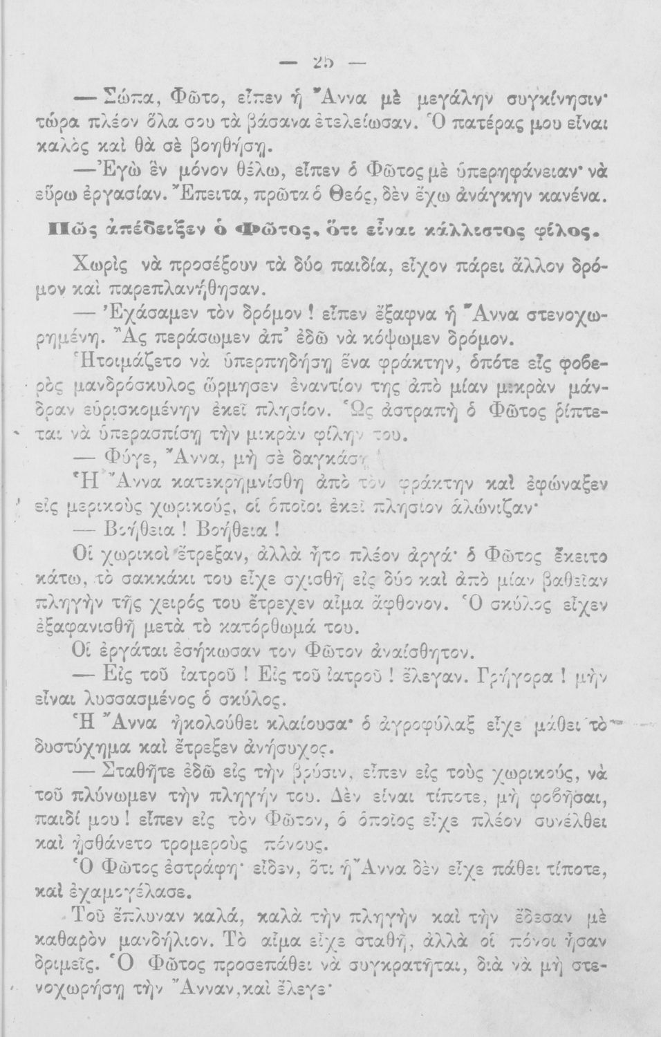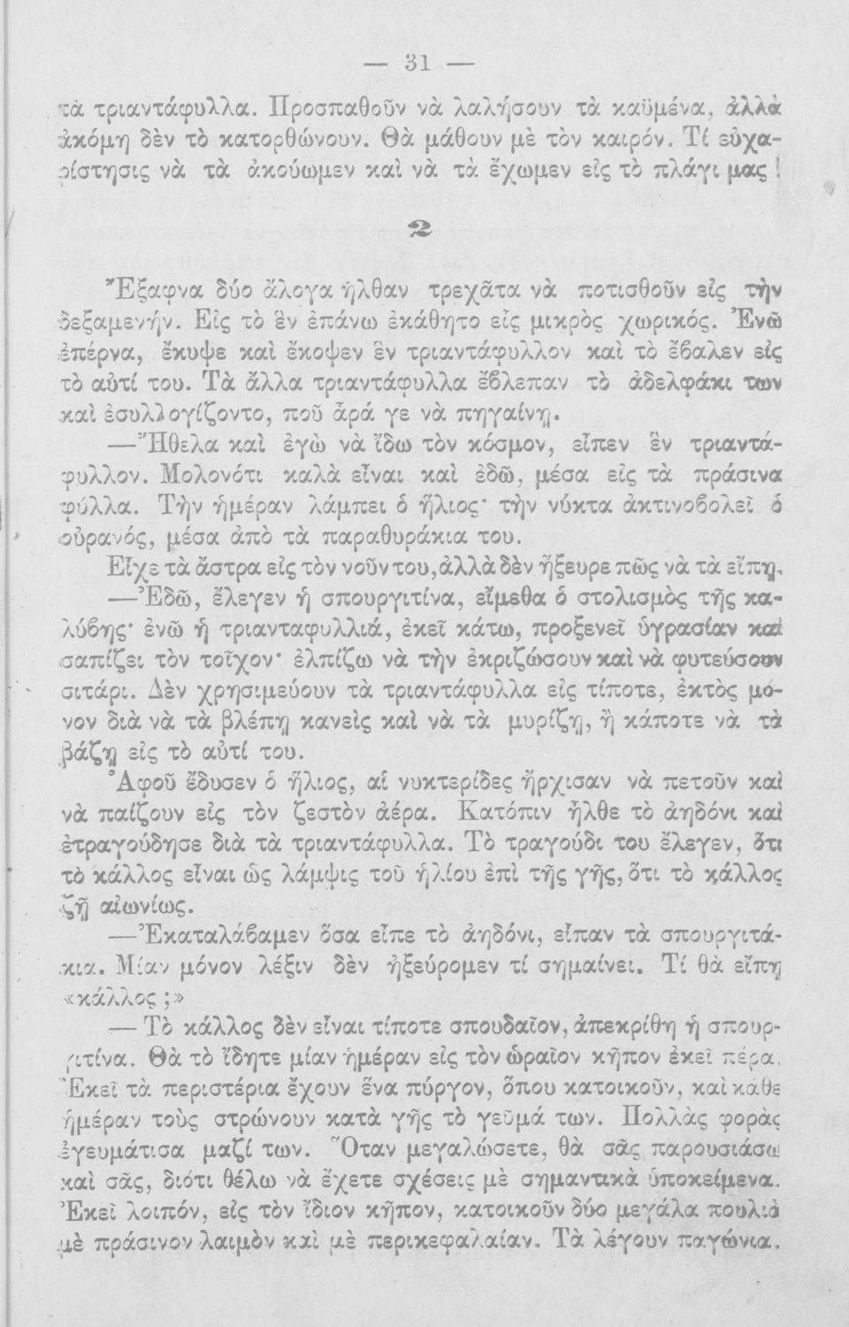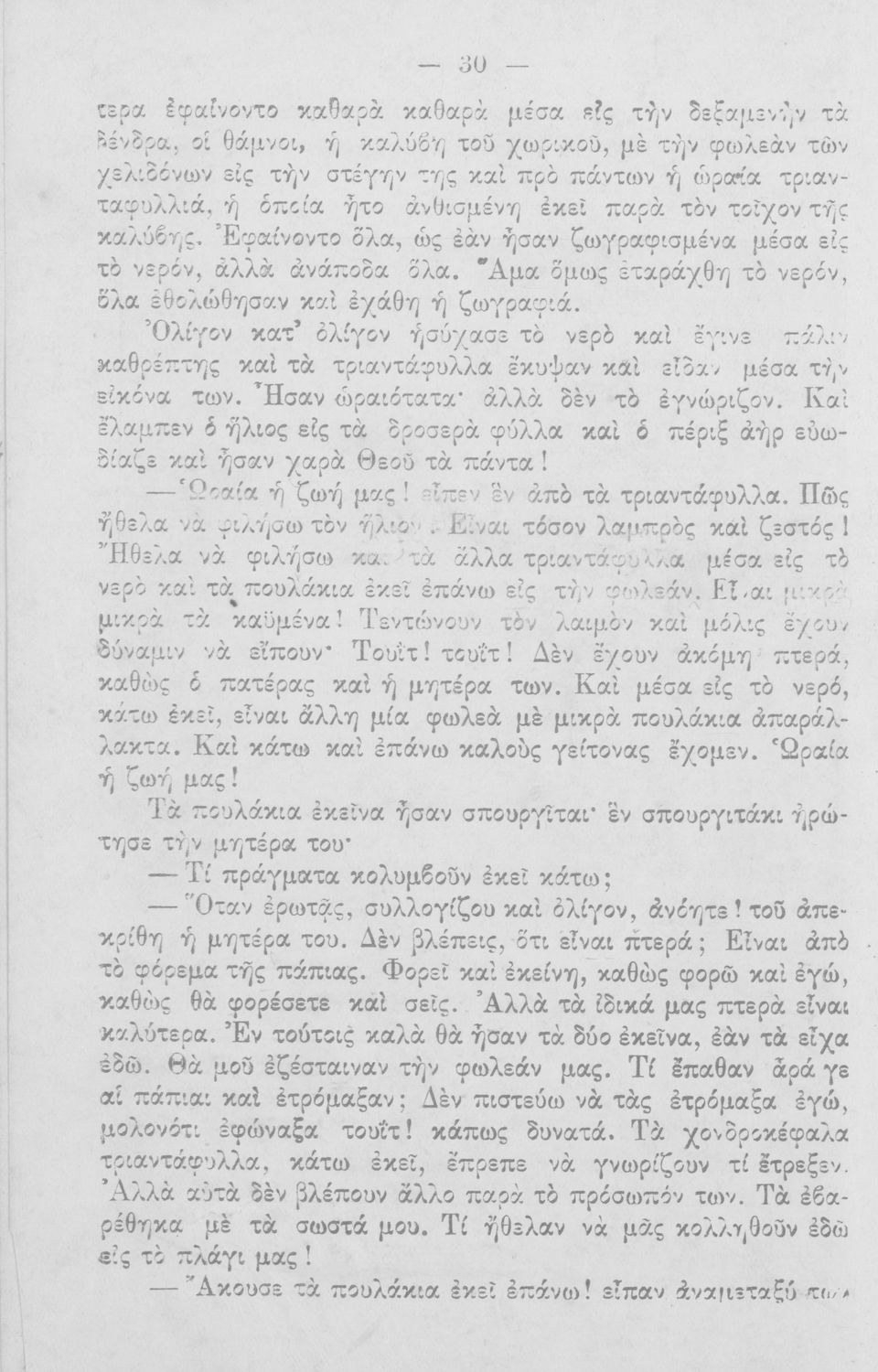 Αναγνωστικό Δ΄ Δημοτικού που περιλαμβάνει κείμενα εμπνευσμένα από την ελληνική ύπαιθρο και οικογένεια, τα τοπικά ήθη και έθιμα, τις διαπροσωπικές σχέσεις, τις καθημερινές ασχολίες και τα επαγγέλματα, τις ηθικές αρετές, τις εθνικές παραδόσεις και την ιστορία της αρχαίας Ελλάδας.