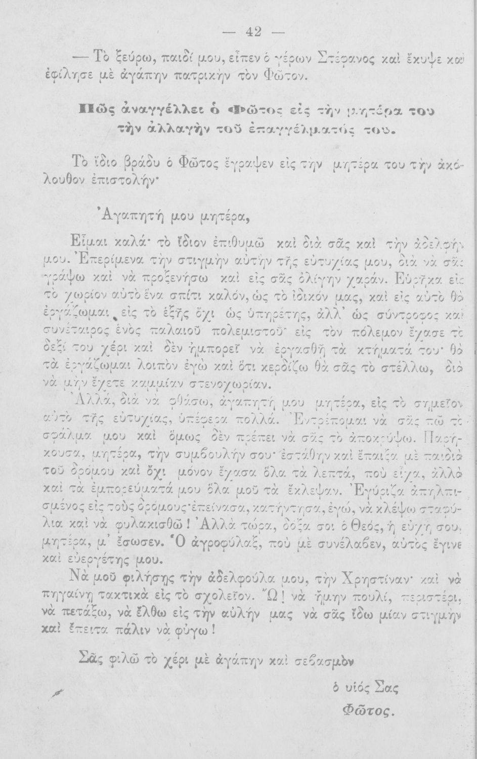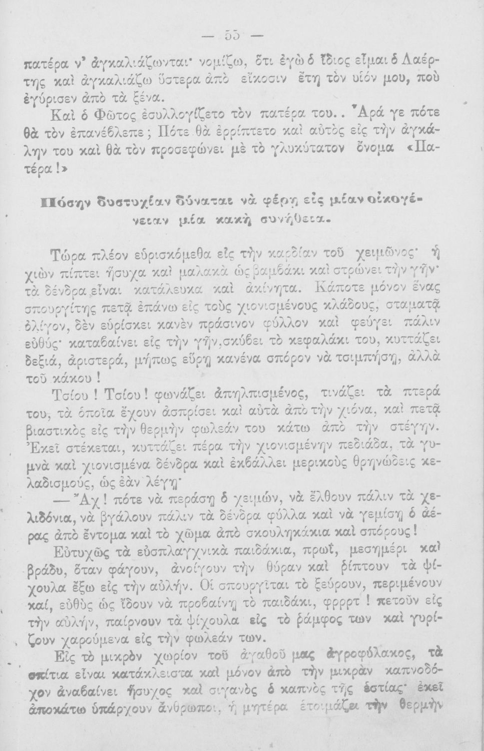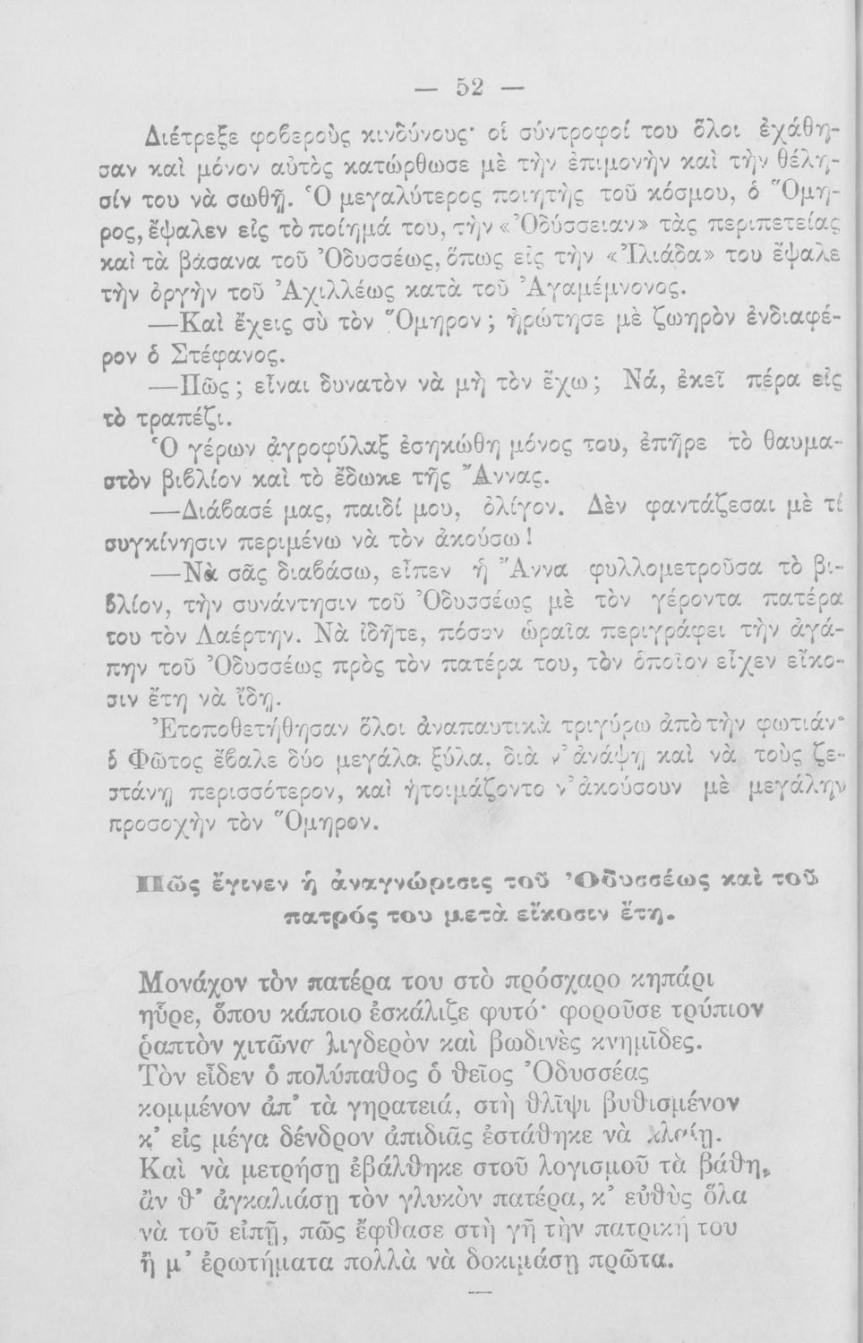 Αναγνωστικό Δ΄ Δημοτικού που περιλαμβάνει κείμενα εμπνευσμένα από την ελληνική ύπαιθρο και οικογένεια, τα τοπικά ήθη και έθιμα, τις διαπροσωπικές σχέσεις, τις καθημερινές ασχολίες και τα επαγγέλματα, τις ηθικές αρετές, τις εθνικές παραδόσεις και την ιστορία της αρχαίας Ελλάδας.