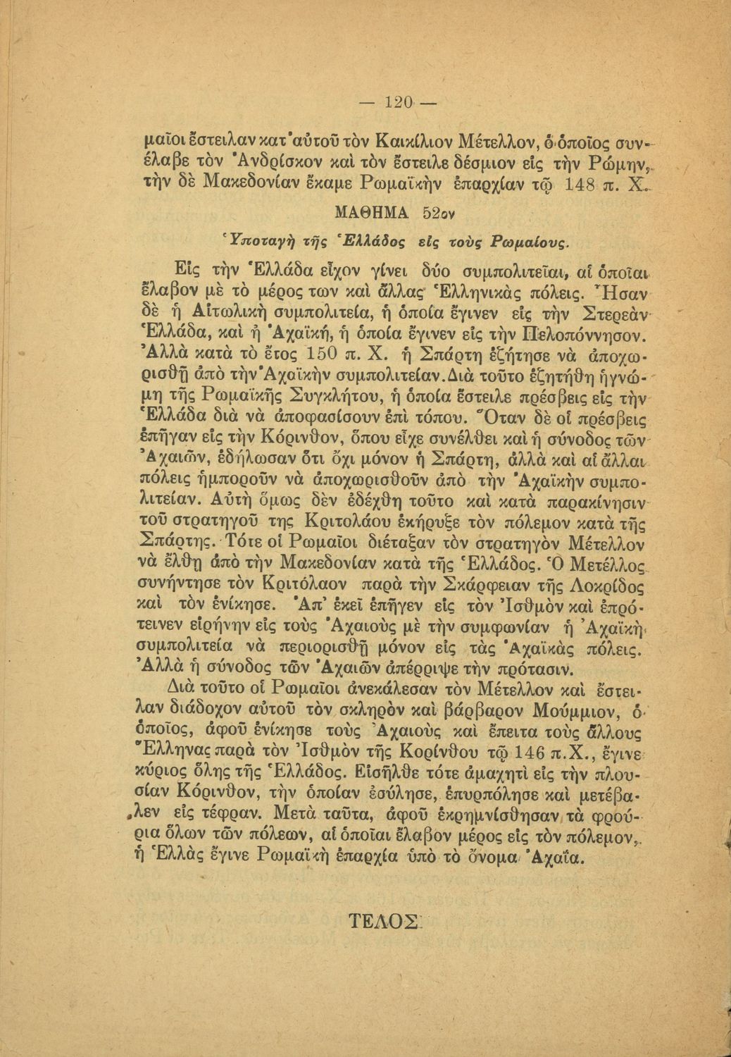 Μαθητικό βοήθημα Ιστορίας. Γ΄ και Δ΄ Δημοτικού Παρθεναγωγείου που καλύπτει το διάστημα από τους προϊστορικούς χρόνους ως τη μάχη της Μαντίνειας