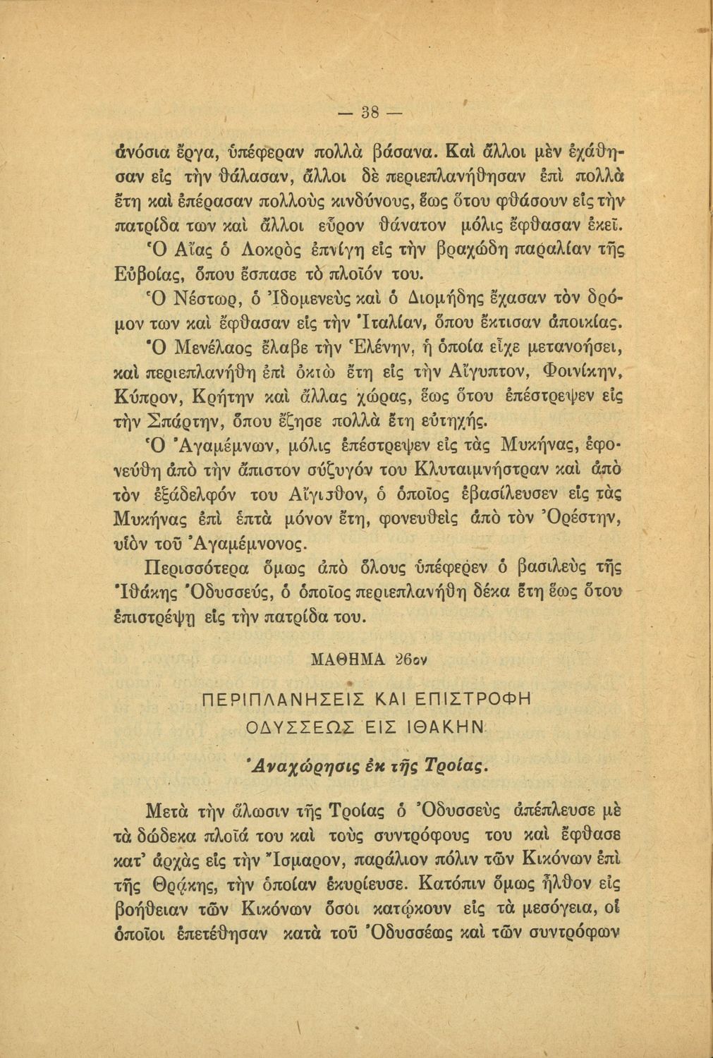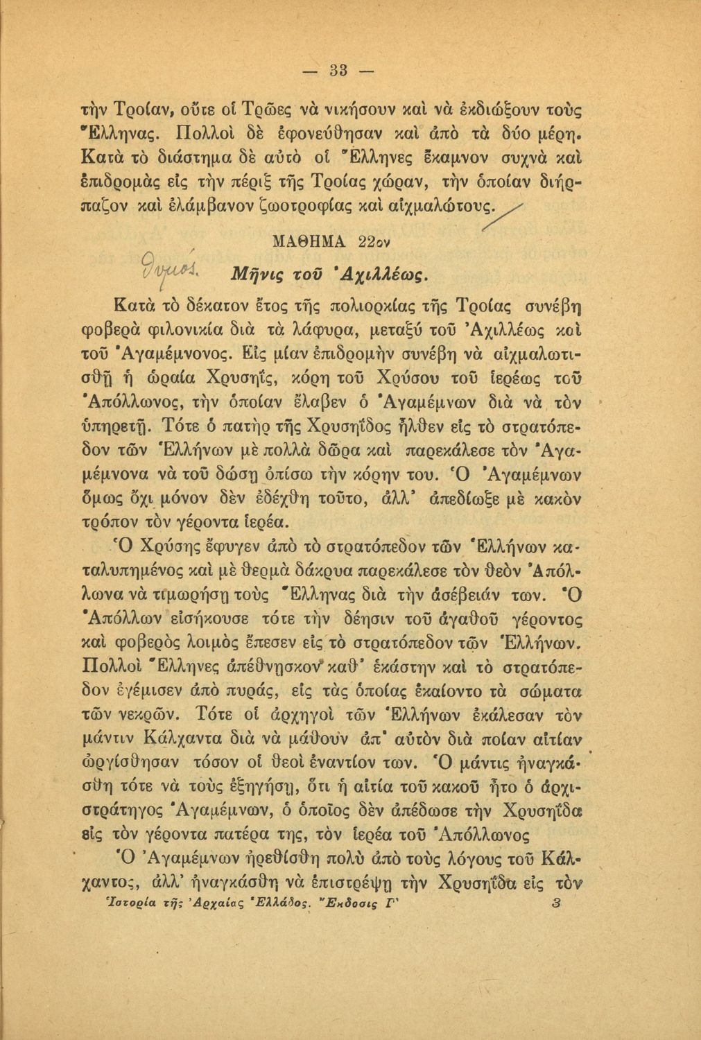 Βαθμίδα εκπαίδευσης: Πρωτοβάθμια Τάξη: Γ' Δημοτικού / Δ' Δημοτικού Μάθημα: Ιστορία Γλώσσα: Καθαρεύουσα Παρουσίαση περιεχομένου: Μαθητικό βοήθημα Ιστορίας Γ΄ και Δ΄ Δημοτικού που περιλαμβάνει θέματα από την ελληνική μυθολογία και την αρχαία ελληνική ιστορία. |
