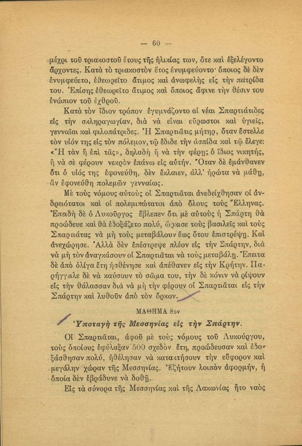 Μαθητικό βοήθημα Ιστορίας. Γ΄ και Δ΄ Δημοτικού Παρθεναγωγείου που καλύπτει το διάστημα από τους προϊστορικούς χρόνους ως τη μάχη της Μαντίνειας