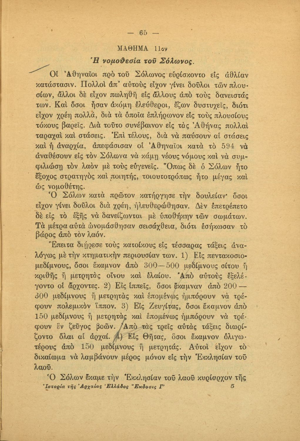 Τίτλος: Ιστορία της αρχαίας Ελλάδος διά την Γ΄ και Δ΄ τάξιν των Δημοτικών Σχολείων