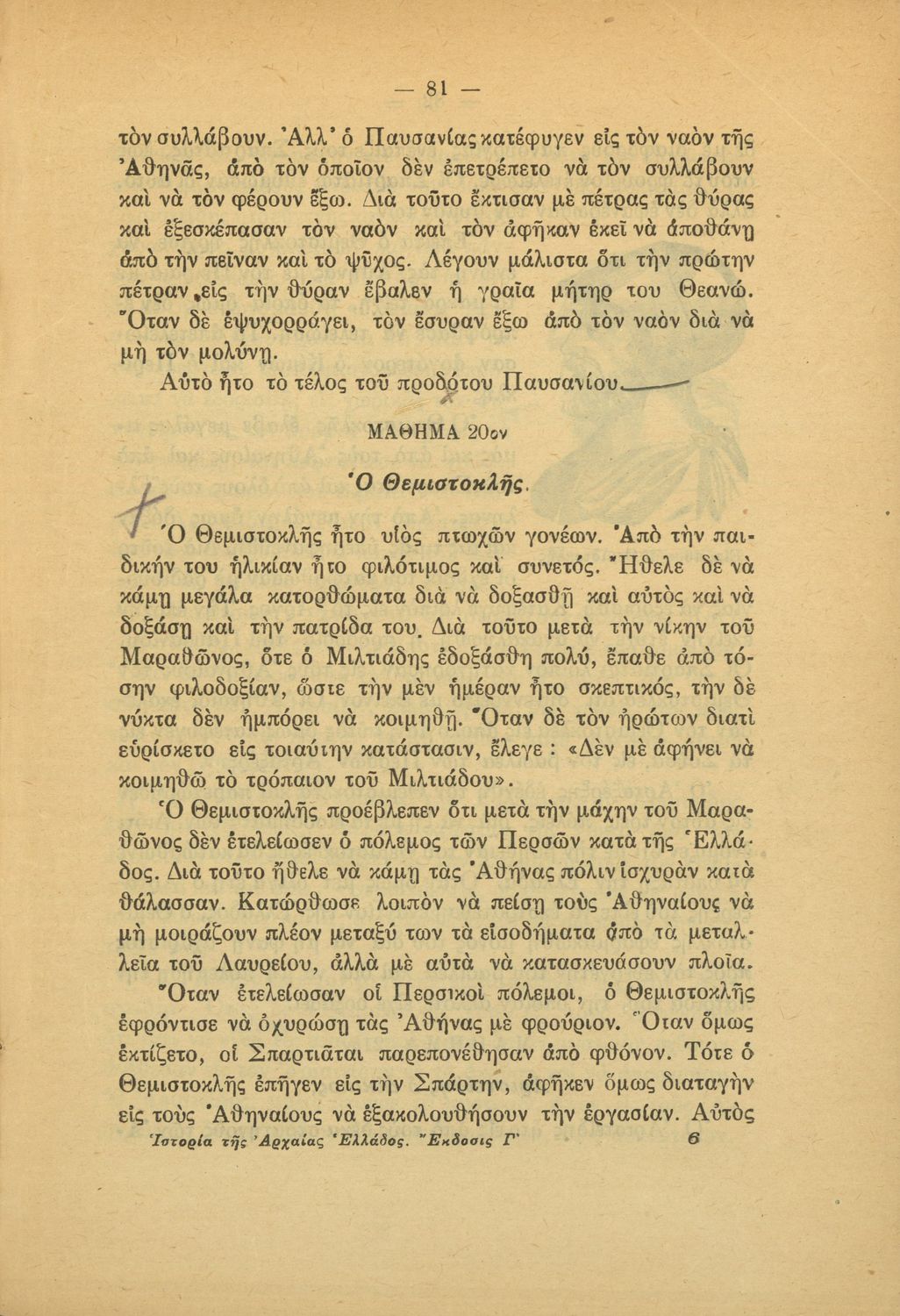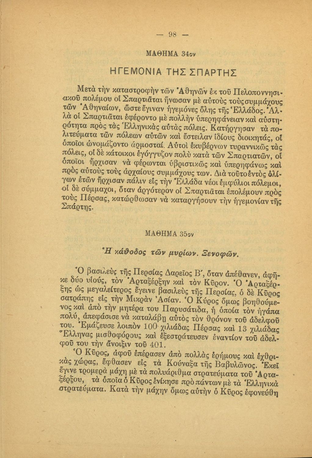 Βαθμίδα εκπαίδευσης: Πρωτοβάθμια Τάξη: Γ' Δημοτικού / Δ' Δημοτικού Μάθημα: Ιστορία Γλώσσα: Καθαρεύουσα Παρουσίαση περιεχομένου: Μαθητικό βοήθημα Ιστορίας Γ΄ και Δ΄ Δημοτικού που περιλαμβάνει θέματα από την ελληνική μυθολογία και την αρχαία ελληνική ιστορία. |