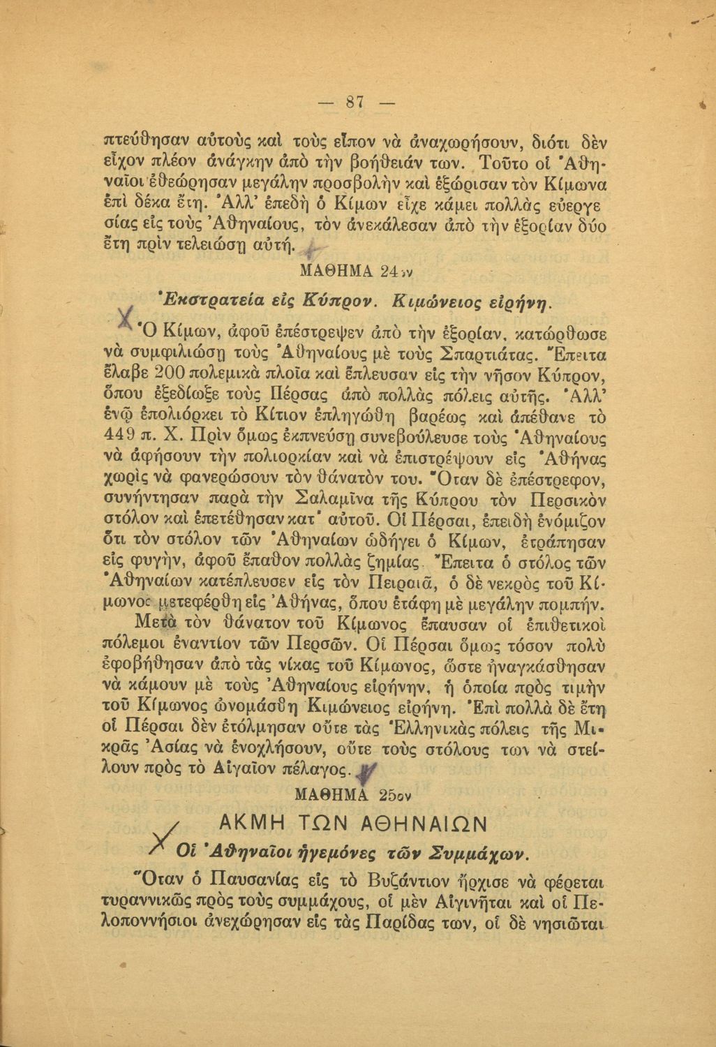 LDR 01295 2200205 4500 035 ## _a20-E0120 040 ## _aΚΕΝΕΚ - Εταιρεία Σπουδών Νεοελληνικού Πολιτισμού και Παιδείας 041 ## _ael 100 ## _aΑλεξ. Ψύλλας 110 ## _aE0120 245 0# _aΙστορία της αρχαίας Ελλάδος διά την Γ΄ και Δ΄ τάξιν των Δημοτικών Σχολείων 250 ## _a4η Έκδοση 260 ## _aΑθήνα _bΙωάννης Ν. Σιδέρης _c1926 300 ## _a120 _bΣκίτσα (ασπρόμαυρα) _c22 520 ## _aΜαθητικό βοήθημα Ιστορίας Γ΄ και Δ΄ Δημοτικού που περιλαμβάνει θέματα από την ελληνική μυθολογία και την αρχαία ελληνική ιστορία. 521 ## _aΓ' Δημοτικού / Δ' Δημοτικού 522 ## _aΕλλάδα 546 ## _aΚαθαρεύουσα 563 ## _aΜαλακό Εξώφυλλο 650 #4 _aΑργοναυτική εκστρατεία _aΘεοί του Ολύμπου _aΜάχη Μυκάλης _aΝαυμαχία Σαλαμίνας _aΠερσικοί πόλεμοι _aΡωμαϊκή Αυτοκρατορία _aΤρωικός Πόλεμος _aΦίλιππος