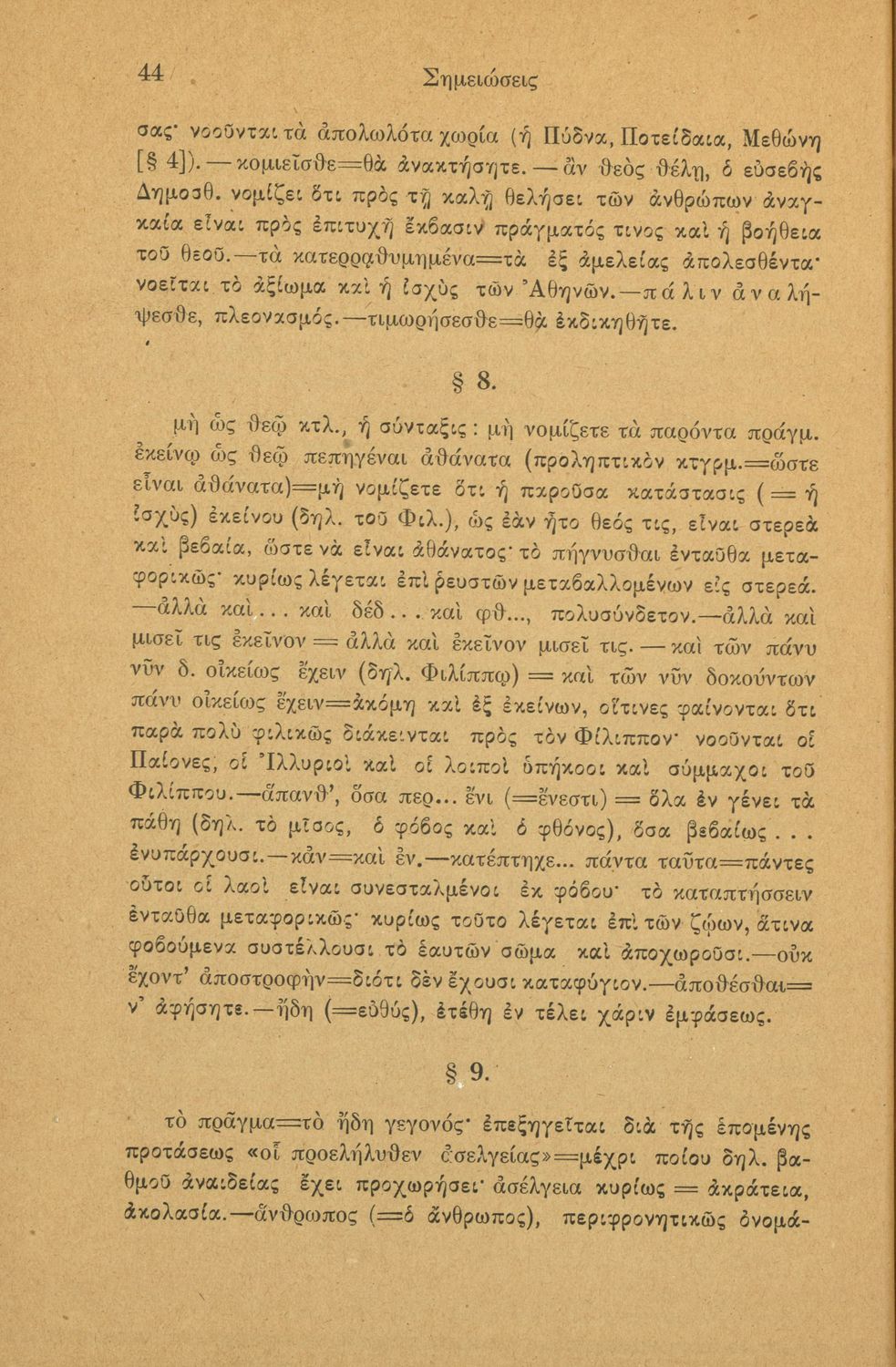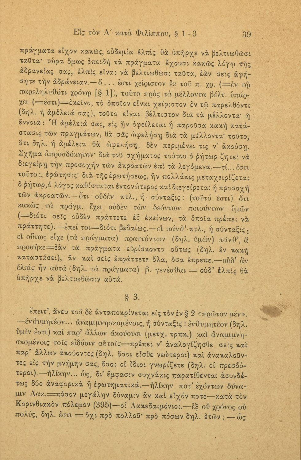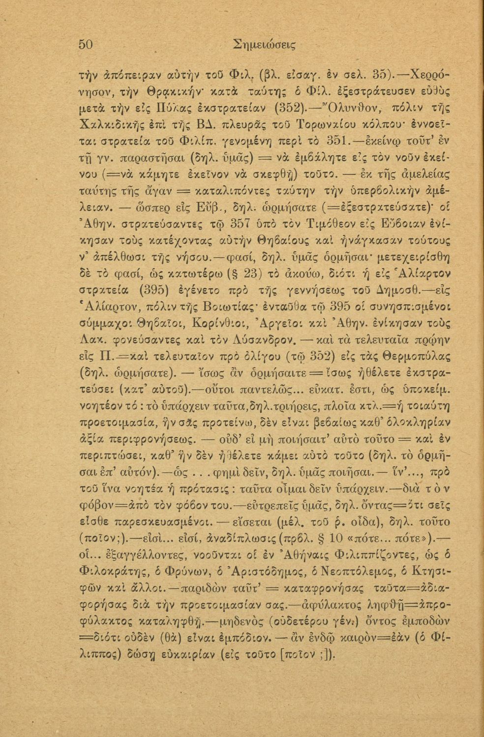 Μαθητικό βοήθημα Αρχαίων Ελληνικών Γ΄ Γυμνασίου που περιλαμβάνει το Λόγο του Δημοσθένη Κατά Φιλίππου Γ΄, εισαγωγή στην υπόθεση και πλοκή του έργου και ερμηνευτικά, πραγματολογικά και γραμματικά σχόλια.