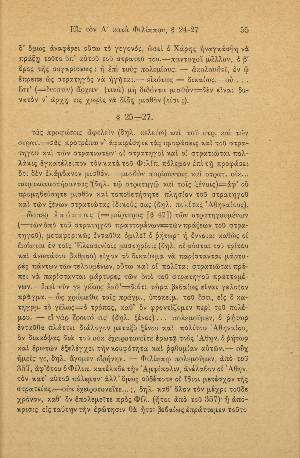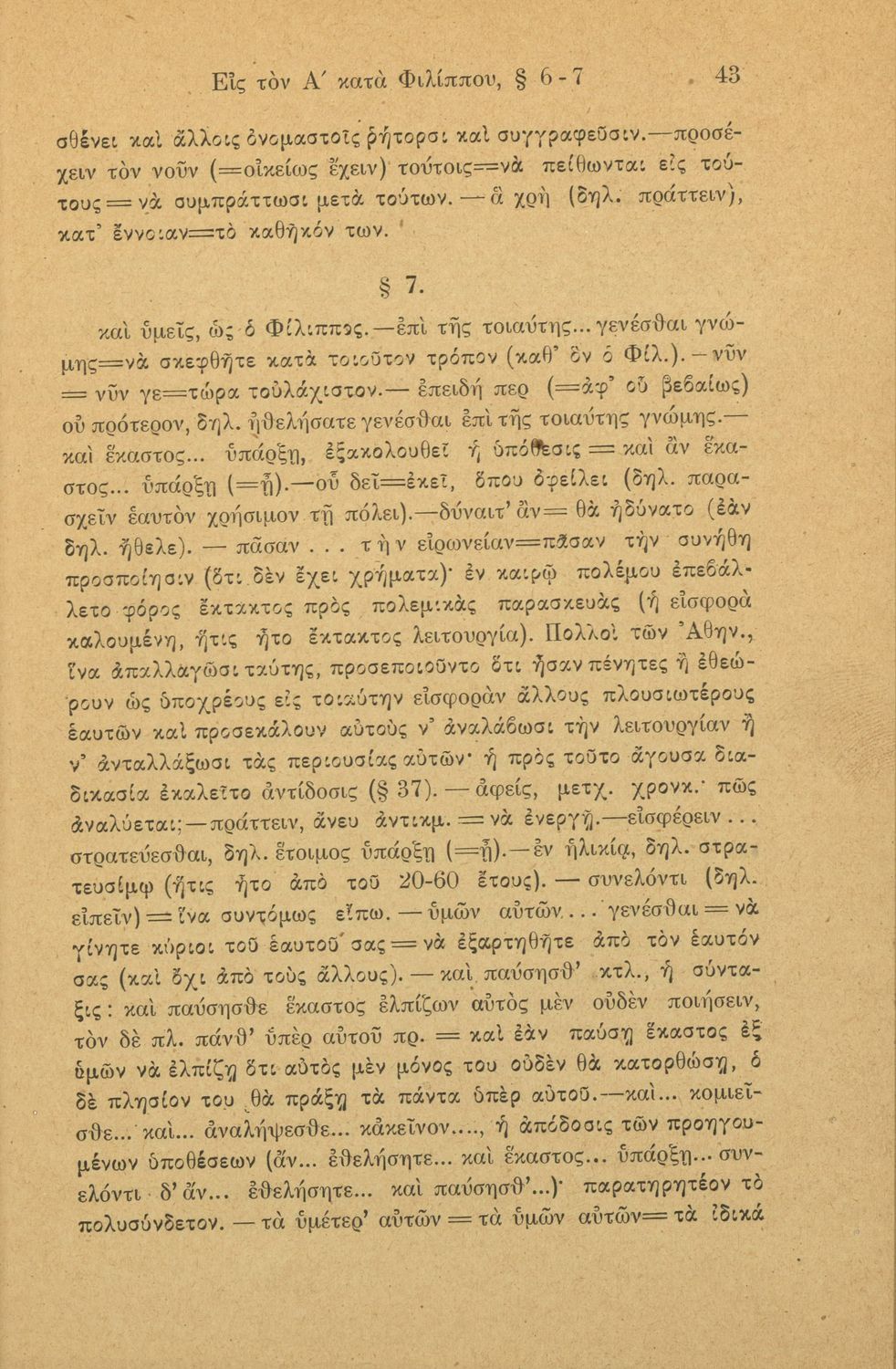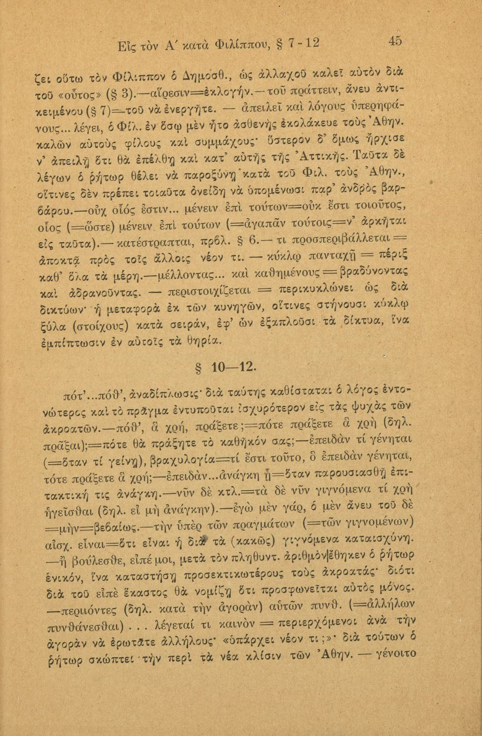 Σχολικό εγχειρίδιο Αρχαίων Ελληνικών Γ΄ Γυμνασίου που περιλαμβάνει τον Λόγο του Δημοσθένη Α΄ κατά Φιλίππου, εισαγωγικά σχόλια στο έργο και τη ζωή του, ερμηνευτικά και γραμματικά σχόλια και παρατηρήσεις.