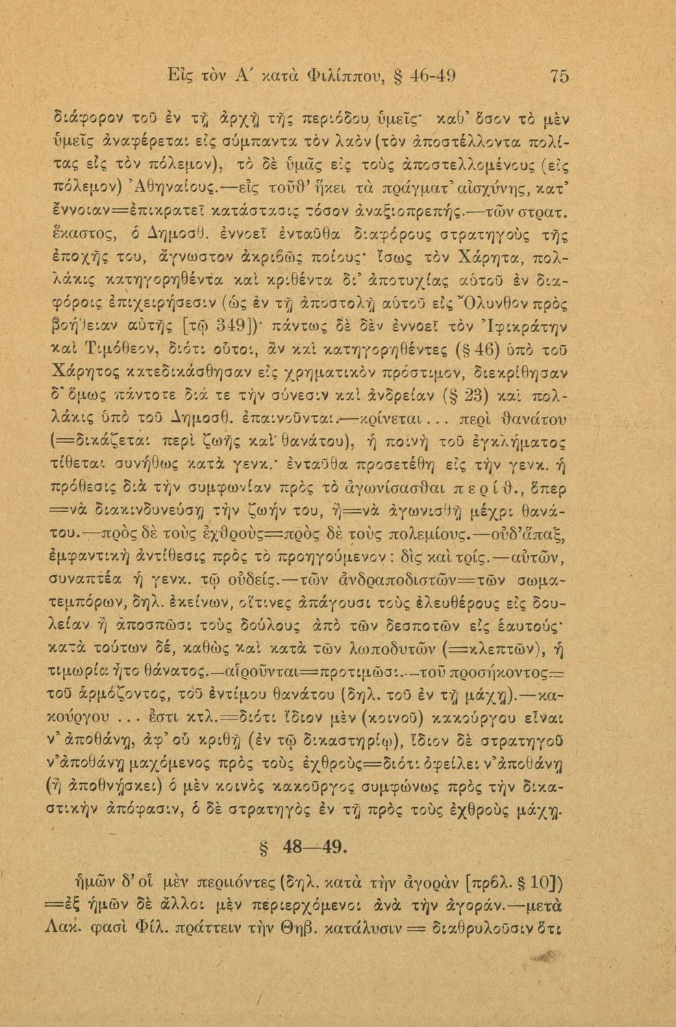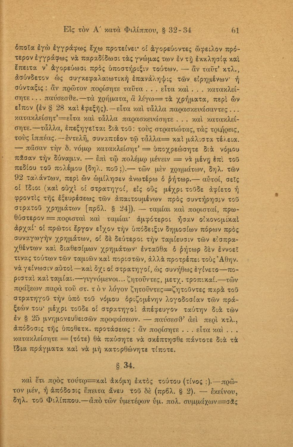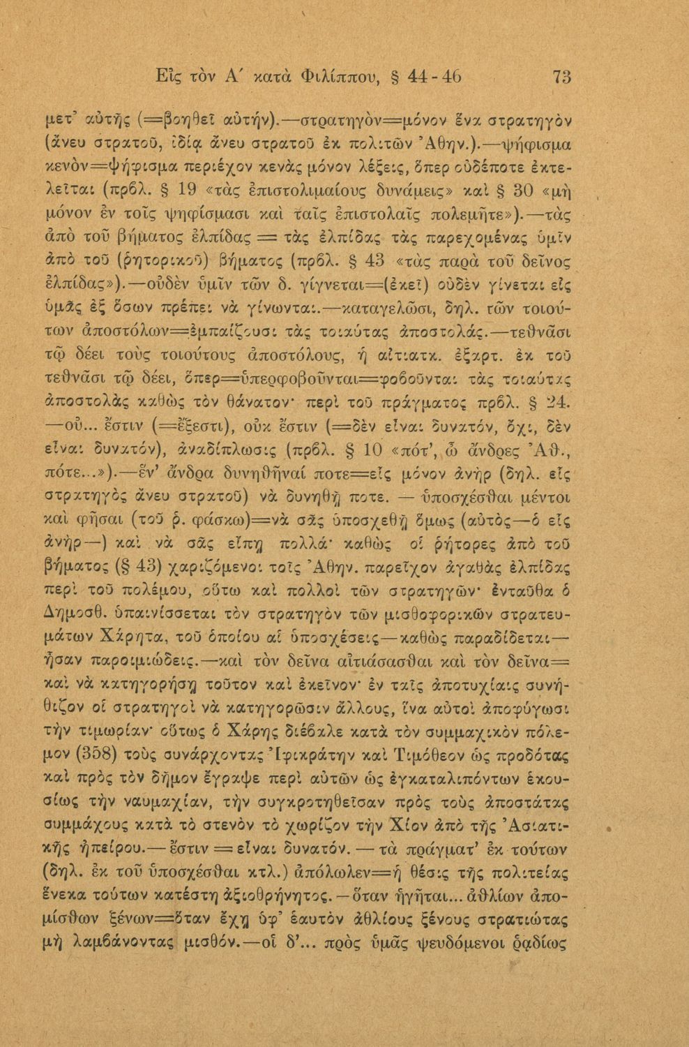 Σχολικό εγχειρίδιο Αρχαίων Ελληνικών Γ΄ Γυμνασίου που περιλαμβάνει τον Λόγο του Δημοσθένη Α΄ κατά Φιλίππου, εισαγωγικά σχόλια στο έργο και τη ζωή του, ερμηνευτικά και γραμματικά σχόλια και παρατηρήσεις.