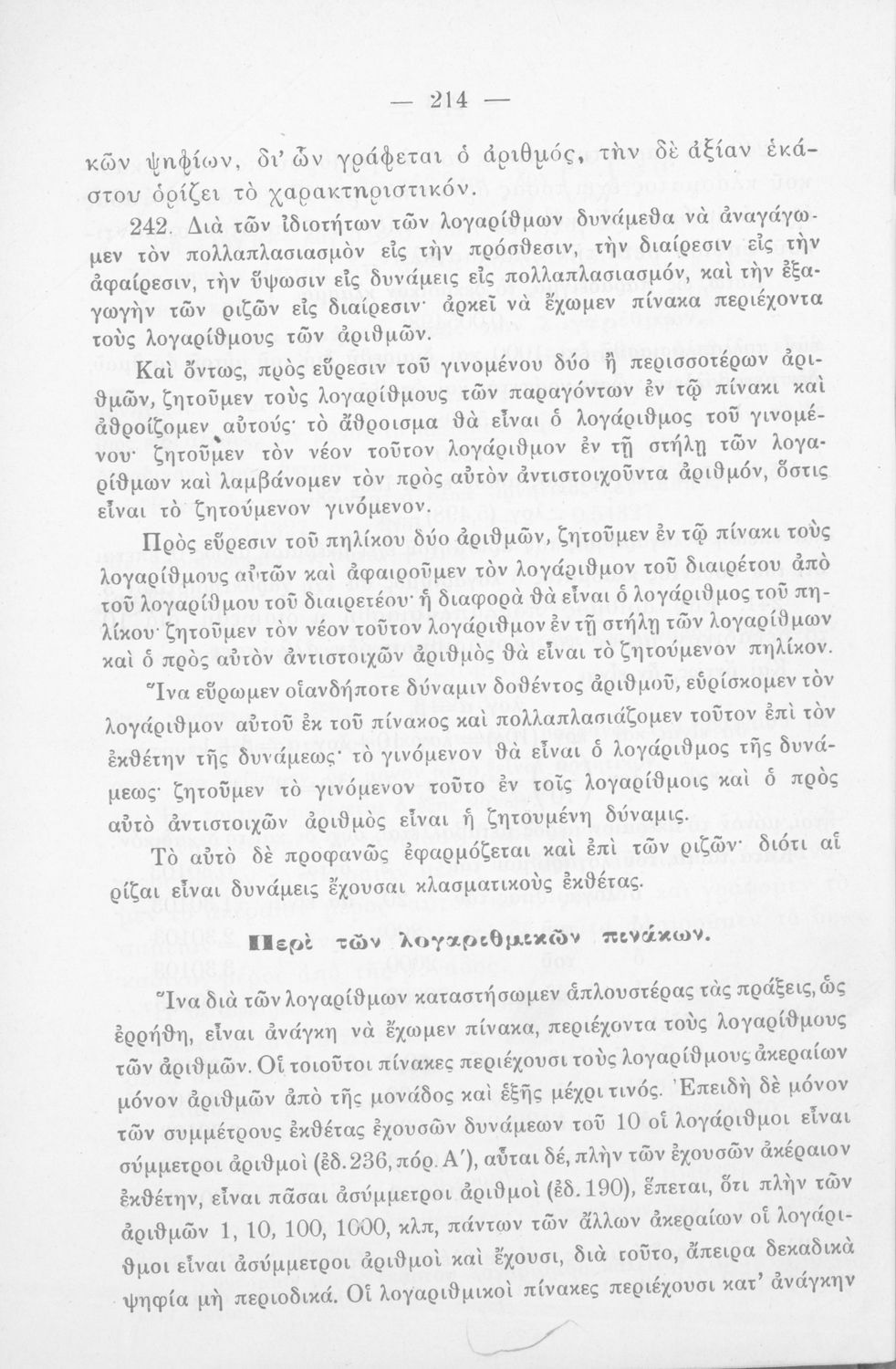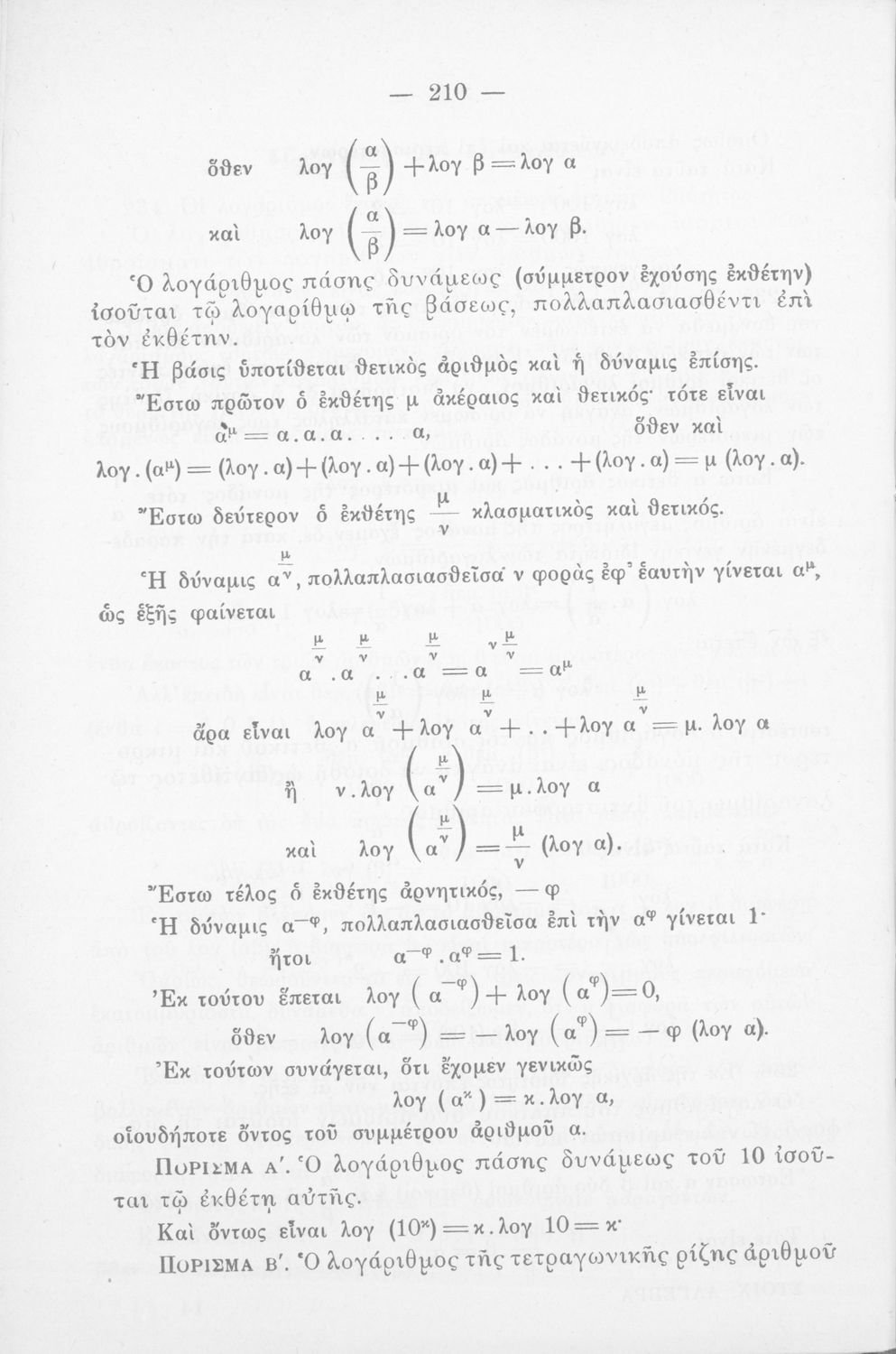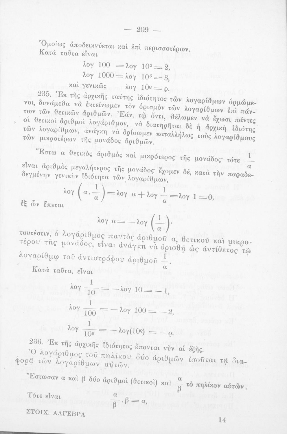 Σχολικό εγχειρίδιο Άλγεβρας Γυμνασίου που περιέχει θεωρία και ασκήσεις. Ο συγγραφέας ήταν υφηγητής στο Εθνικό Πανεπιστήμιο.