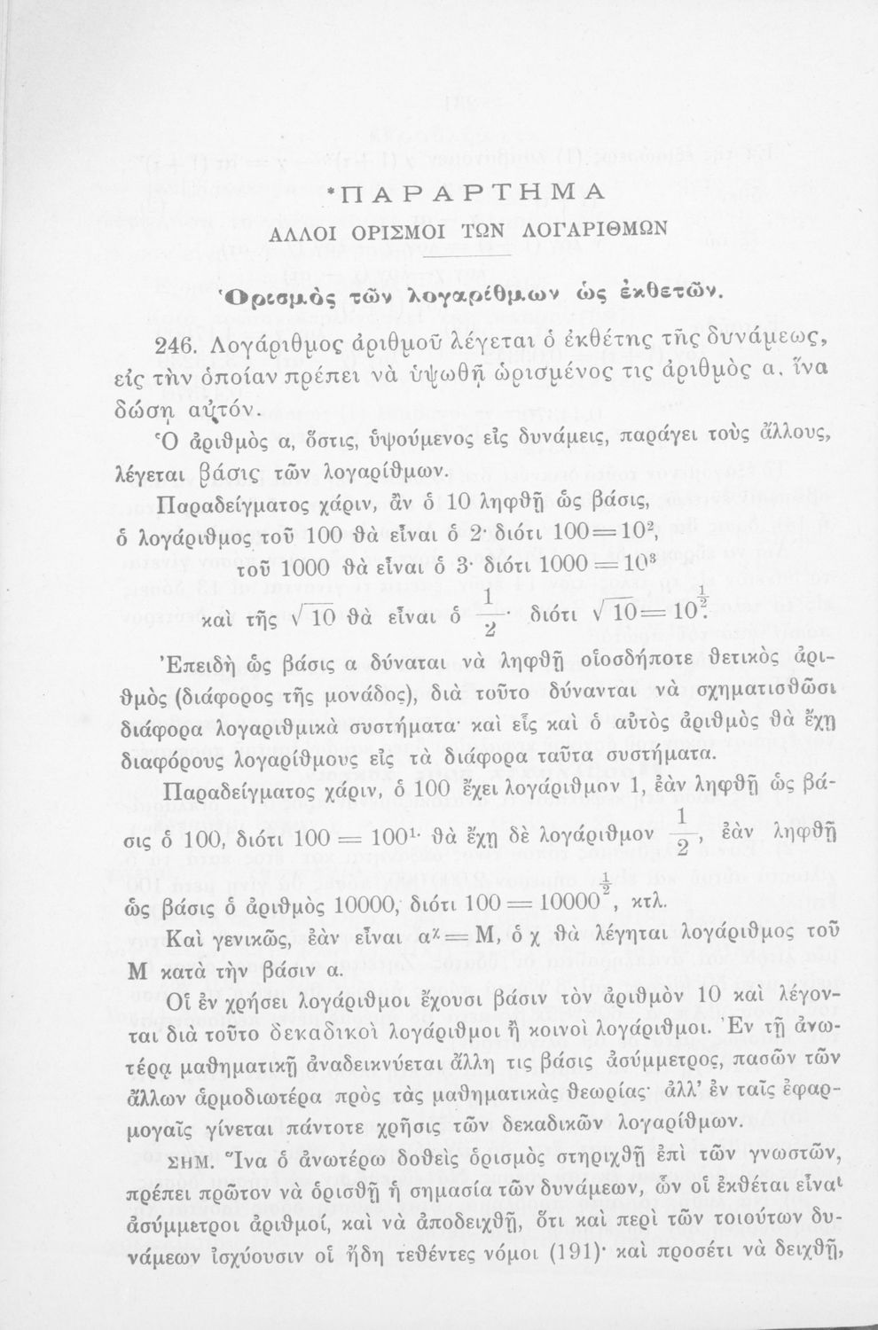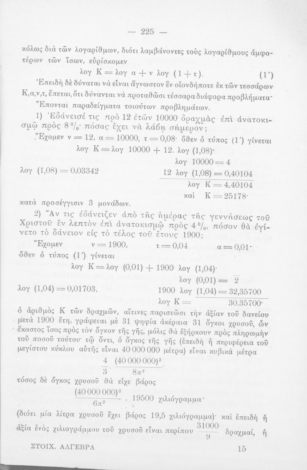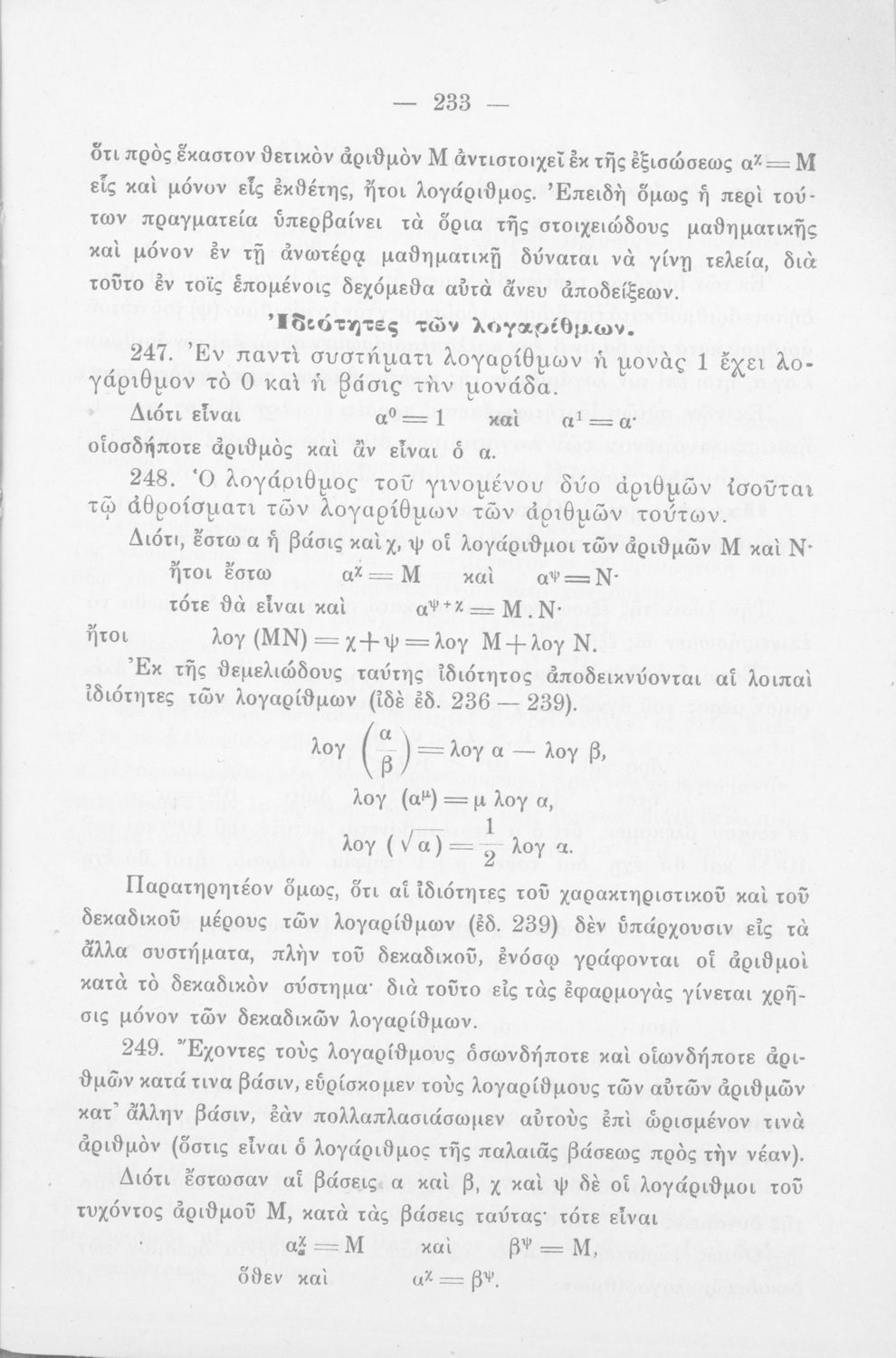 Σχολικό εγχειρίδιο Άλγεβρας Γυμνασίου που περιέχει θεωρία και ασκήσεις. Ο συγγραφέας ήταν υφηγητής στο Εθνικό Πανεπιστήμιο.