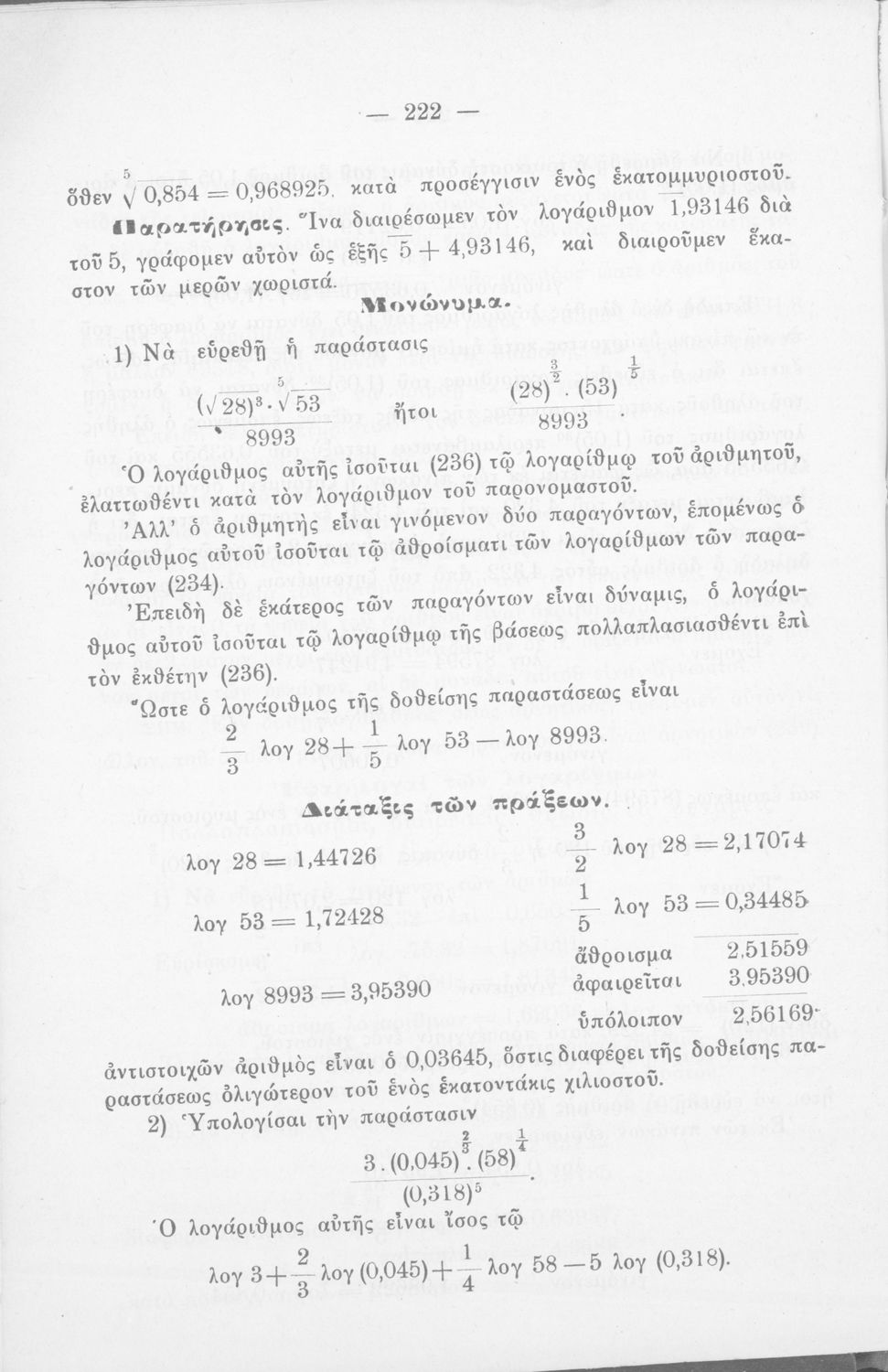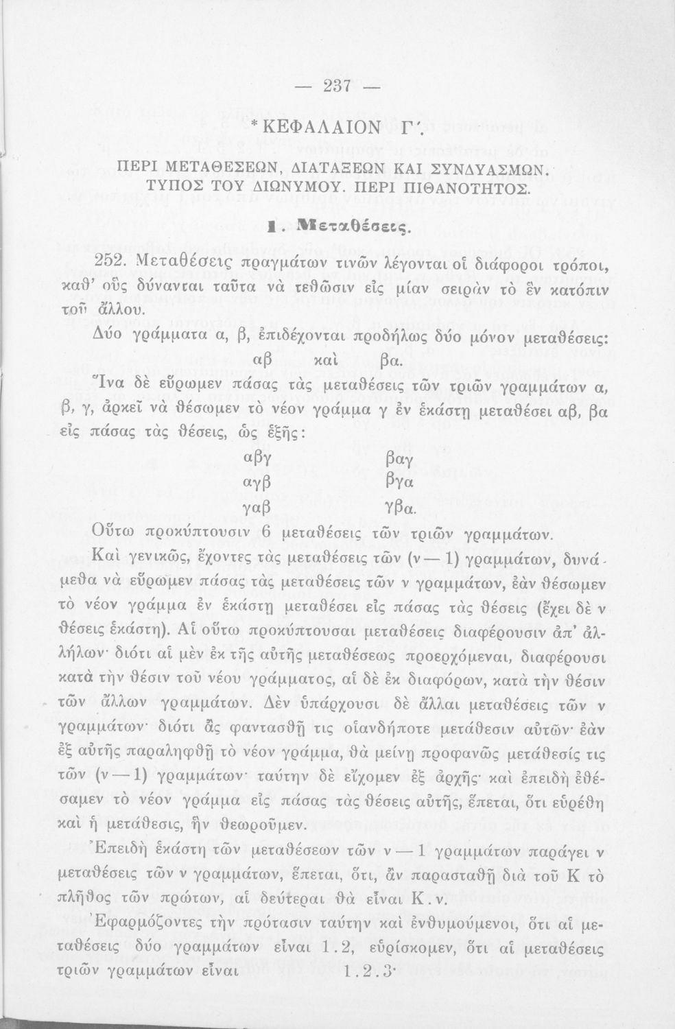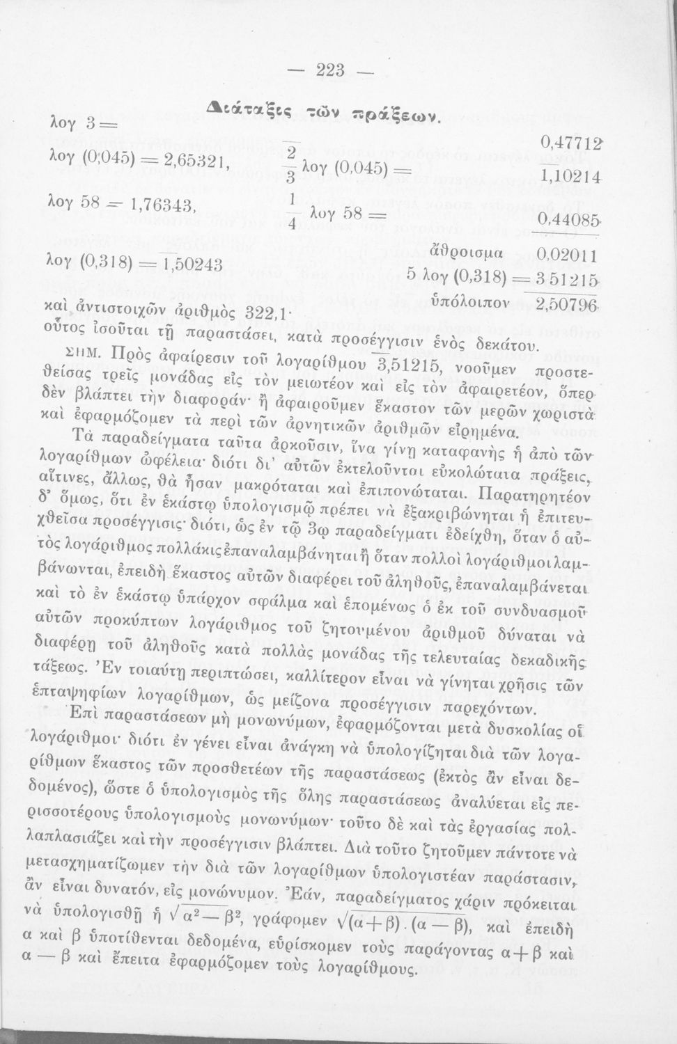 Σχολικό εγχειρίδιο Άλγεβρας Γυμνασίου που περιέχει θεωρία και ασκήσεις. Ο συγγραφέας ήταν υφηγητής στο Εθνικό Πανεπιστήμιο.