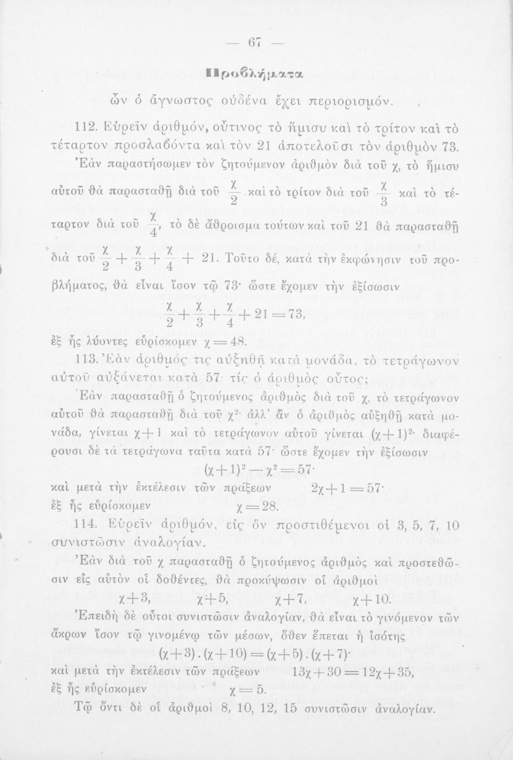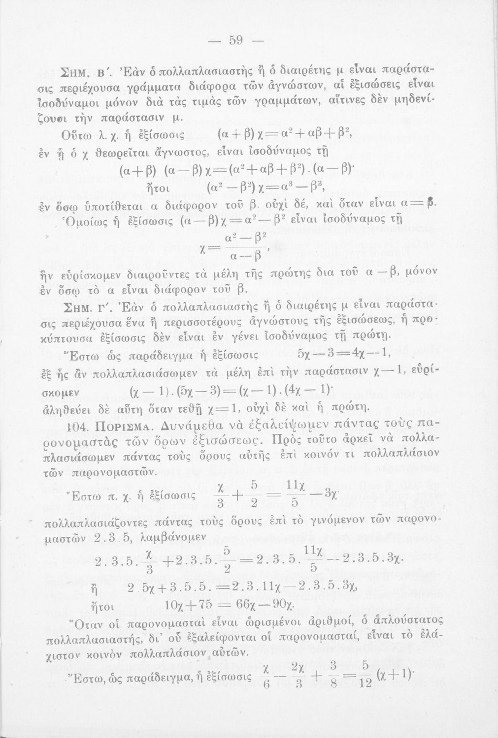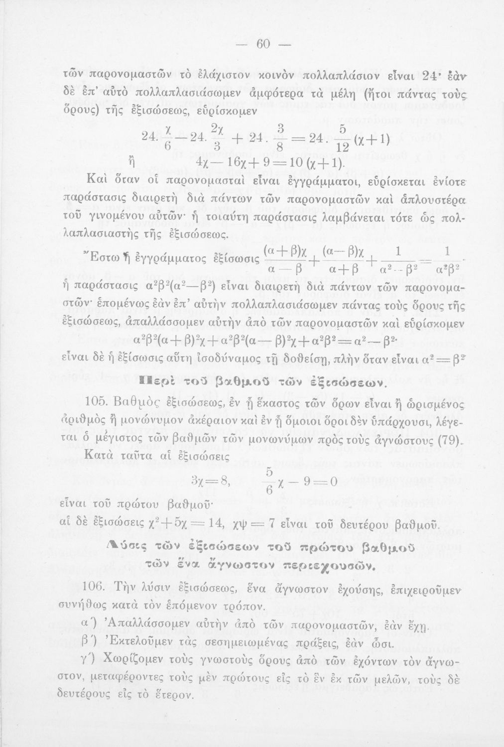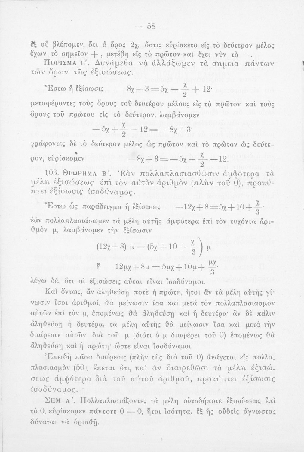 Σχολικό εγχειρίδιο Άλγεβρας Γυμνασίου που περιέχει θεωρία και ασκήσεις. Ο συγγραφέας ήταν υφηγητής στο Εθνικό Πανεπιστήμιο.