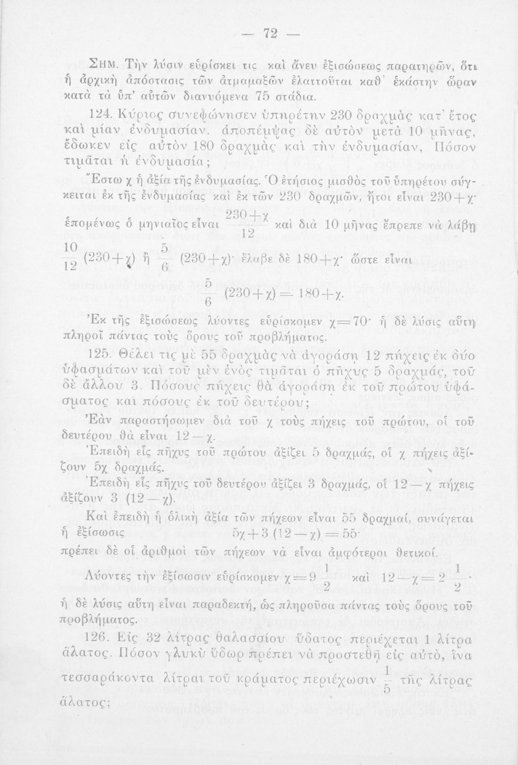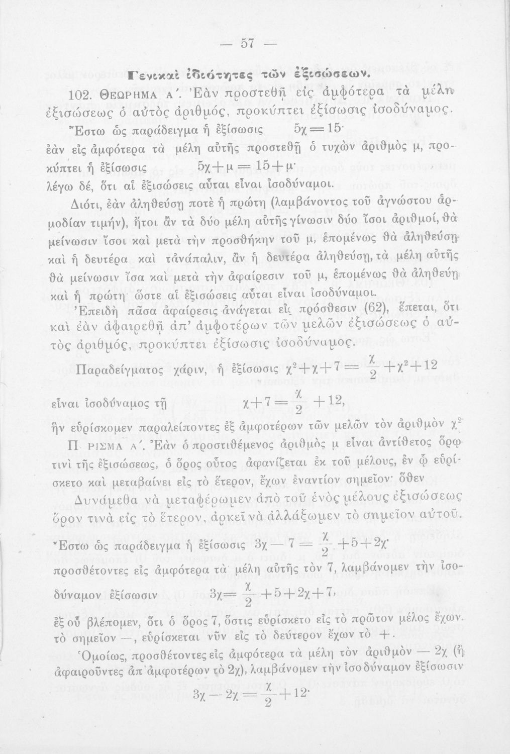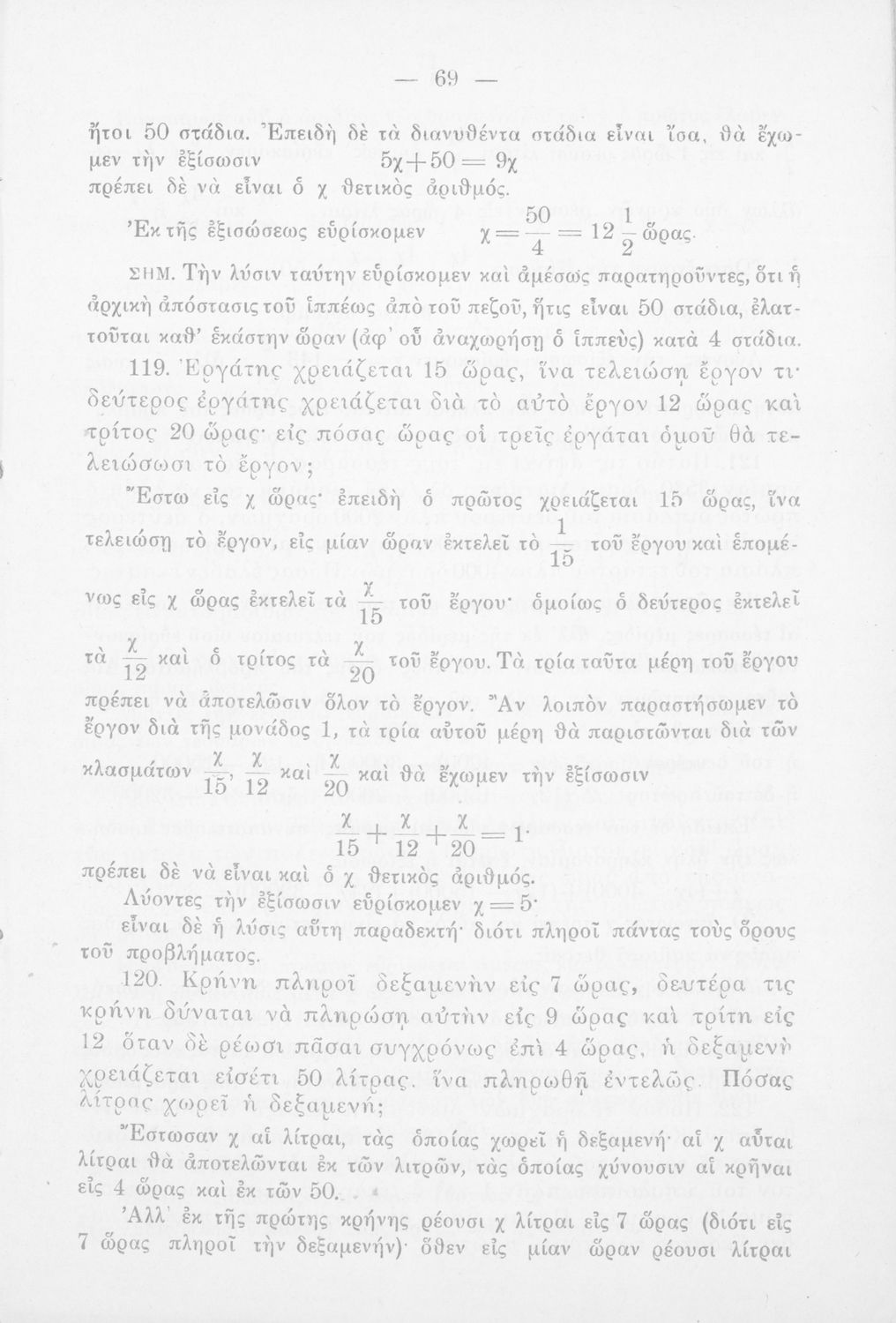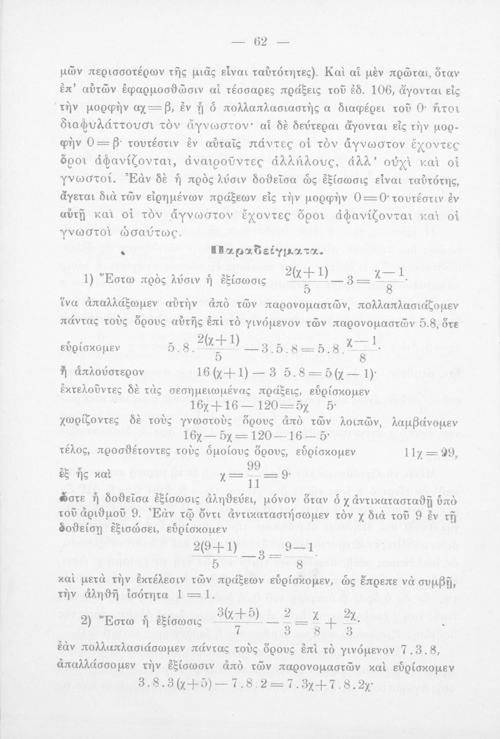 Σχολικό εγχειρίδιο Άλγεβρας Γυμνασίου που περιέχει θεωρία και ασκήσεις. Ο συγγραφέας ήταν υφηγητής στο Εθνικό Πανεπιστήμιο.