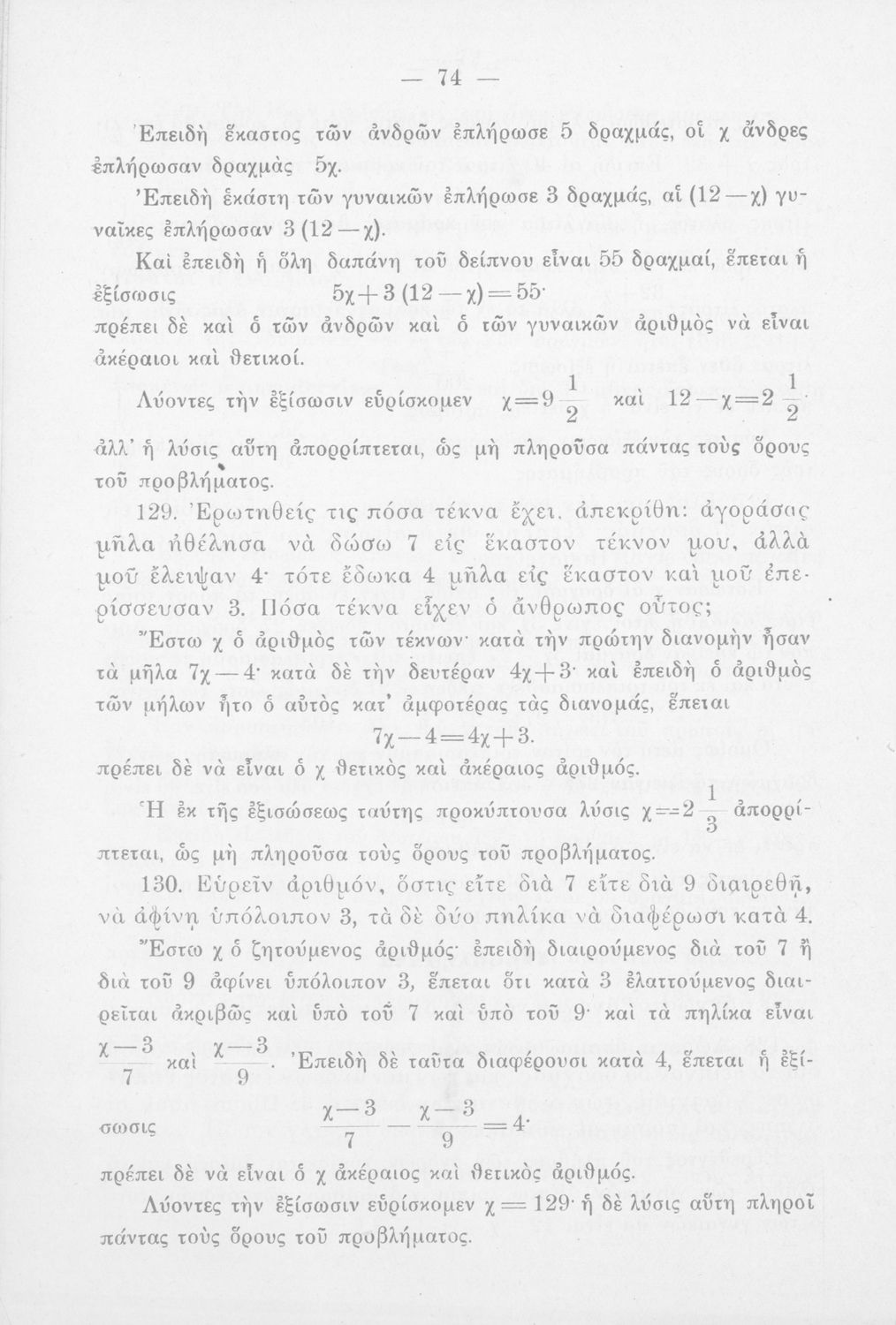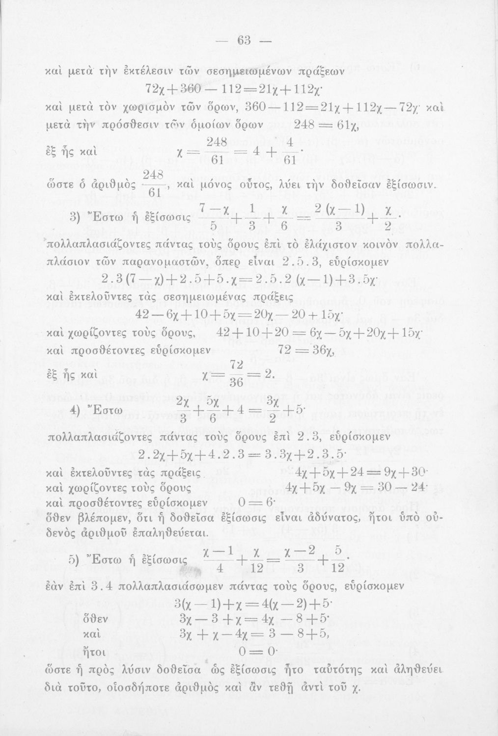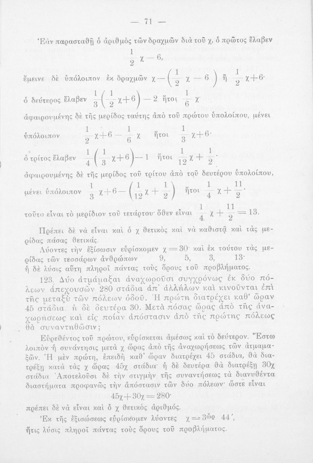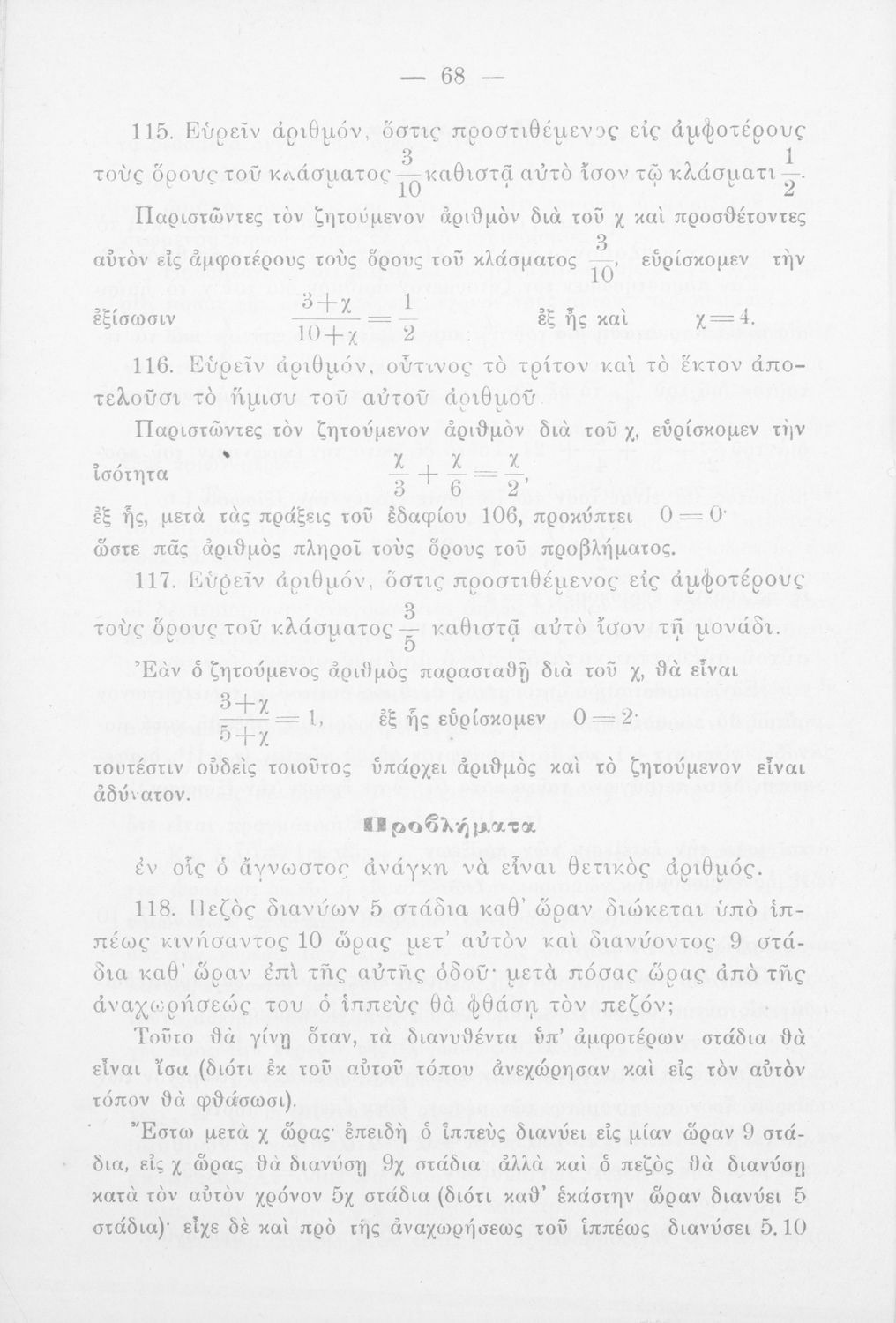 Σχολικό εγχειρίδιο Άλγεβρας Γυμνασίου που περιέχει θεωρία και ασκήσεις. Ο συγγραφέας ήταν υφηγητής στο Εθνικό Πανεπιστήμιο.
