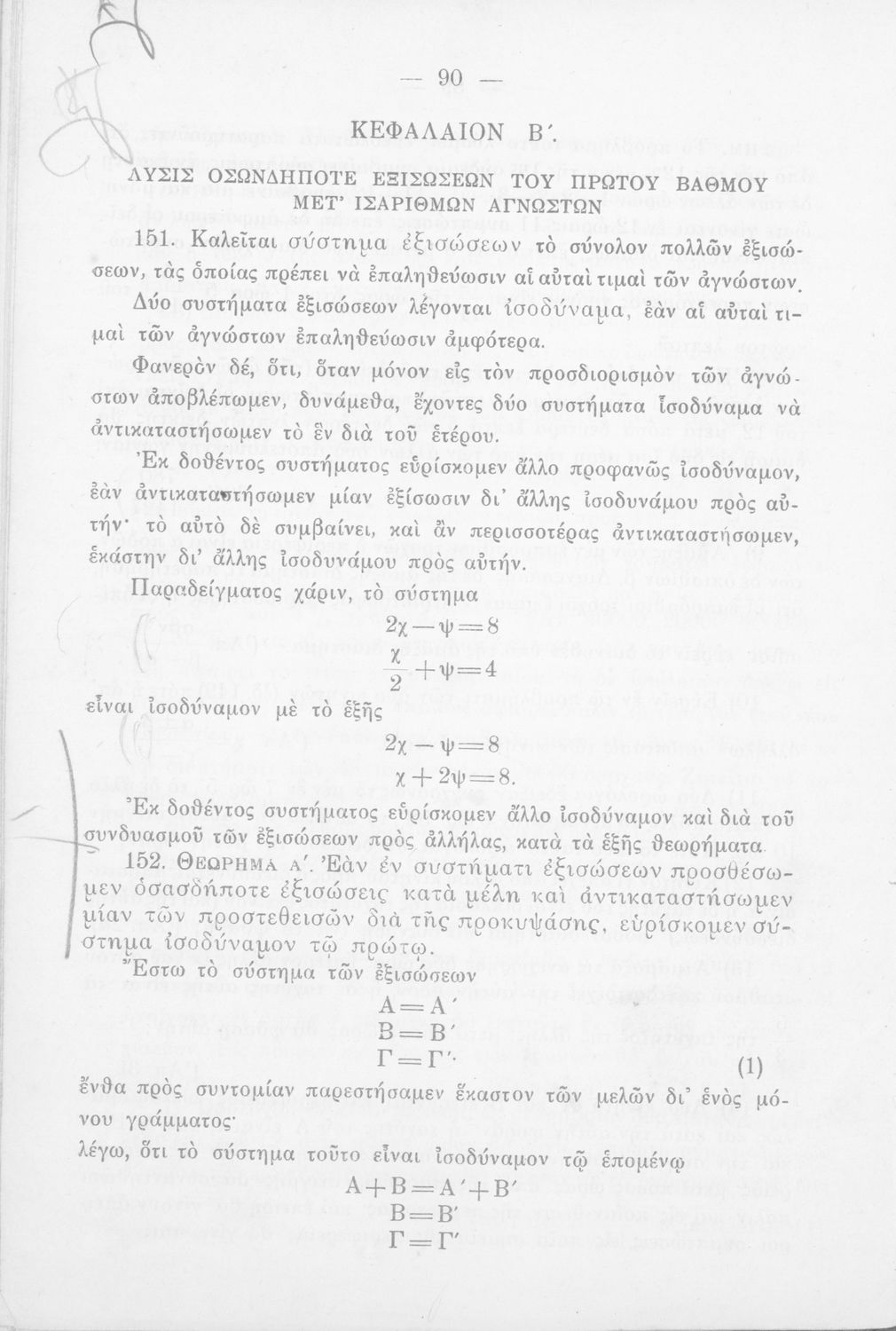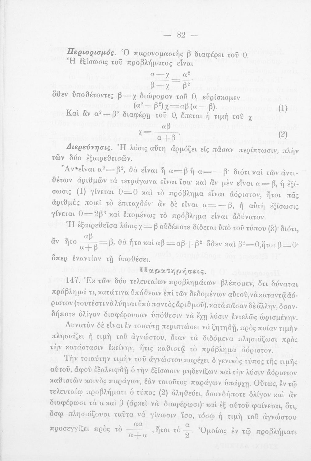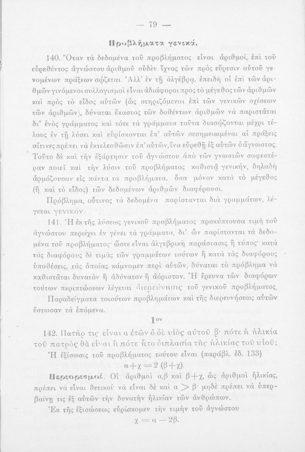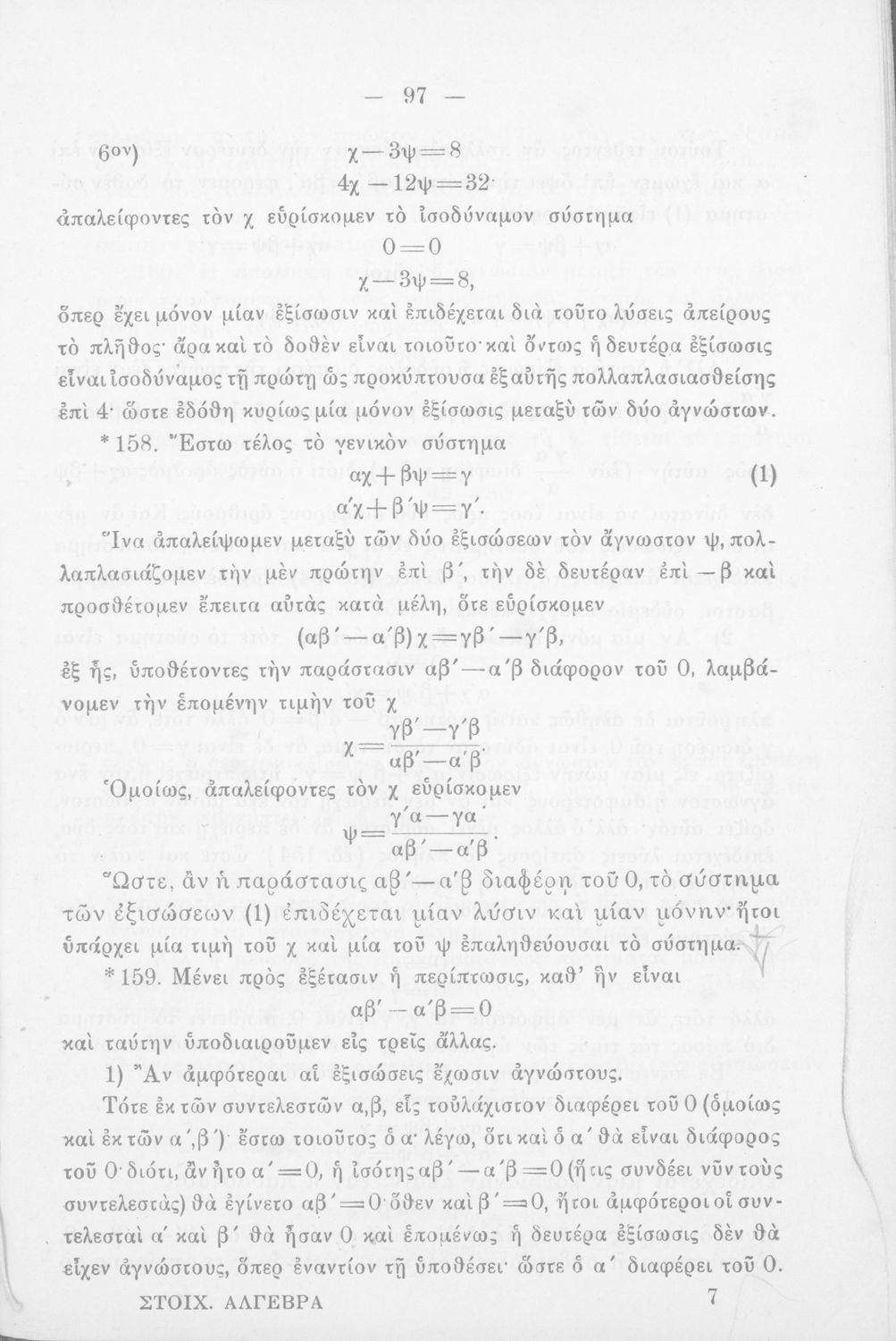 Σχολικό εγχειρίδιο Άλγεβρας Γυμνασίου που περιέχει θεωρία και ασκήσεις. Ο συγγραφέας ήταν υφηγητής στο Εθνικό Πανεπιστήμιο.