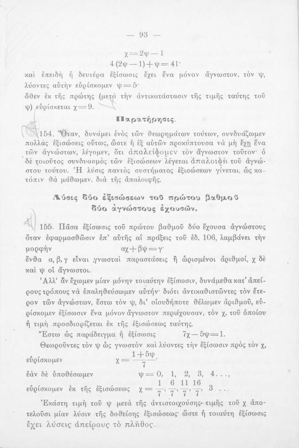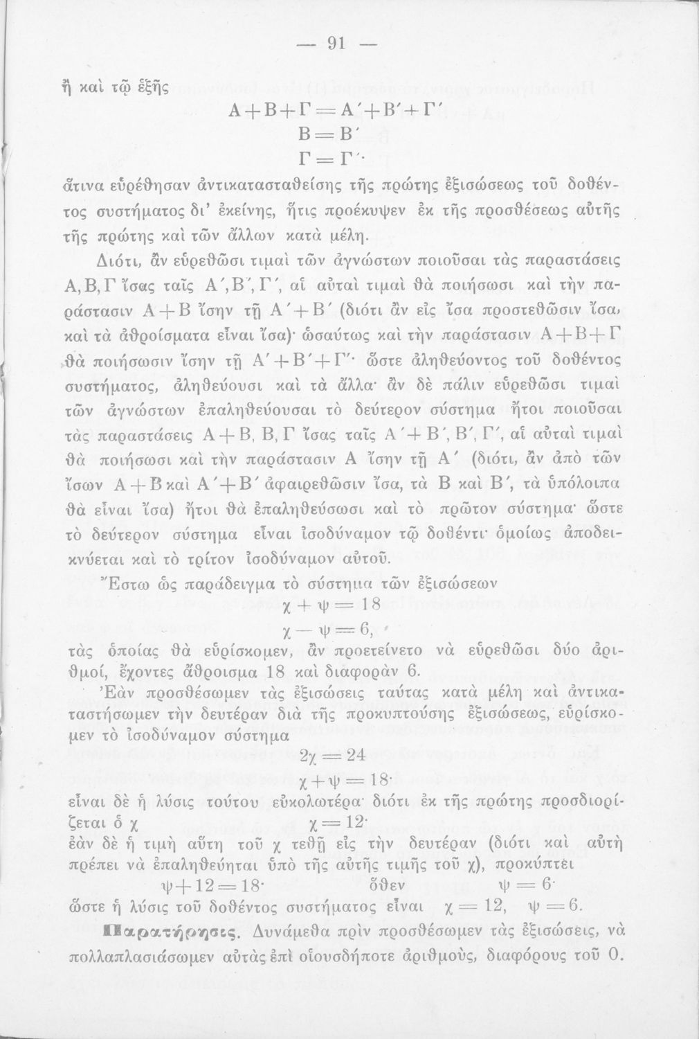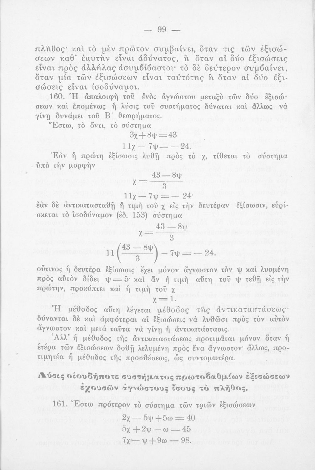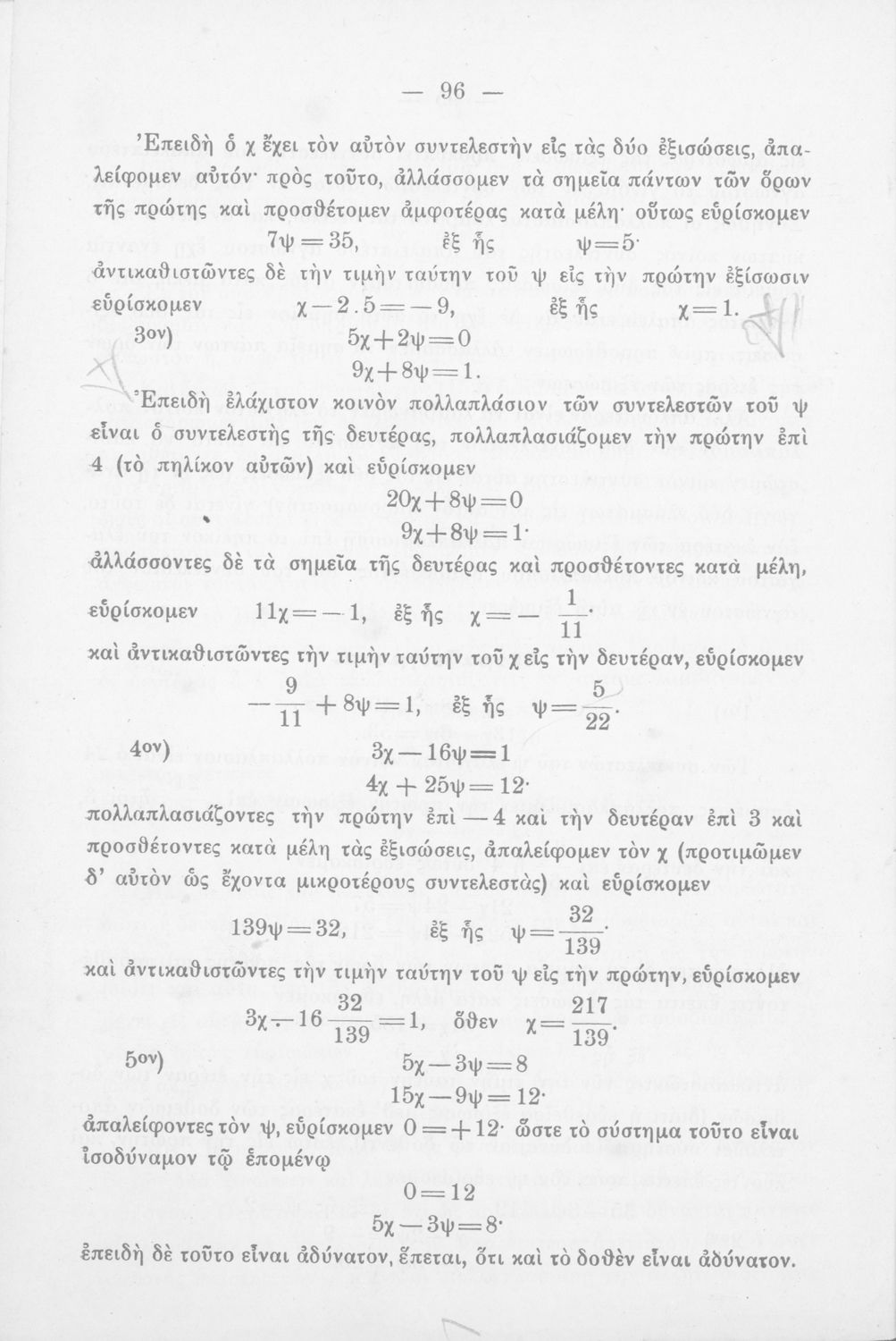 Σχολικό εγχειρίδιο Άλγεβρας Γυμνασίου που περιέχει θεωρία και ασκήσεις. Ο συγγραφέας ήταν υφηγητής στο Εθνικό Πανεπιστήμιο.