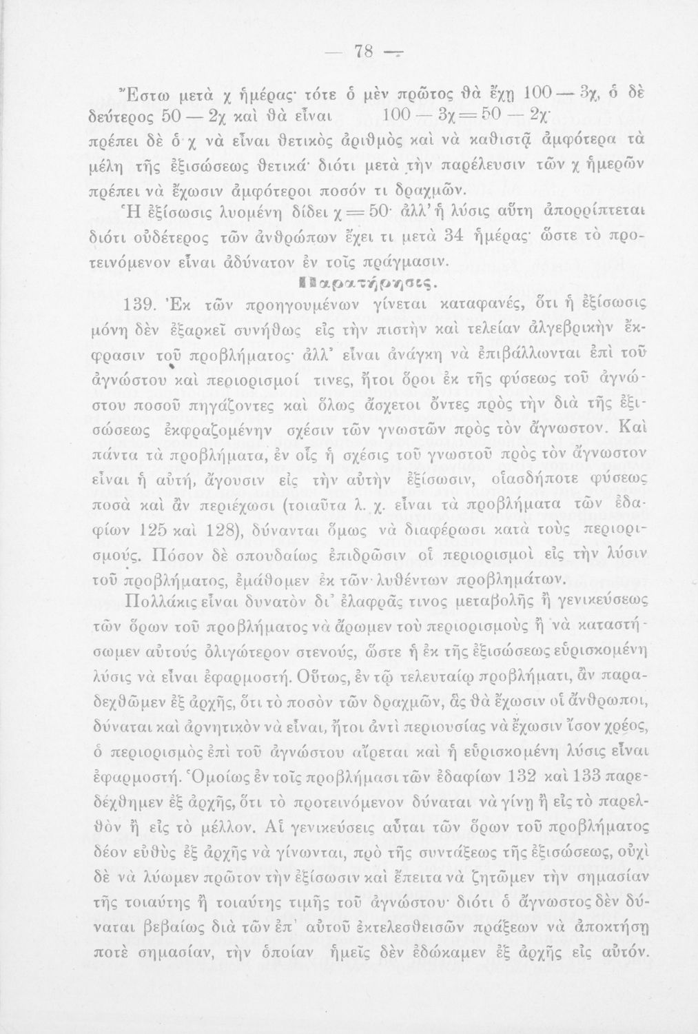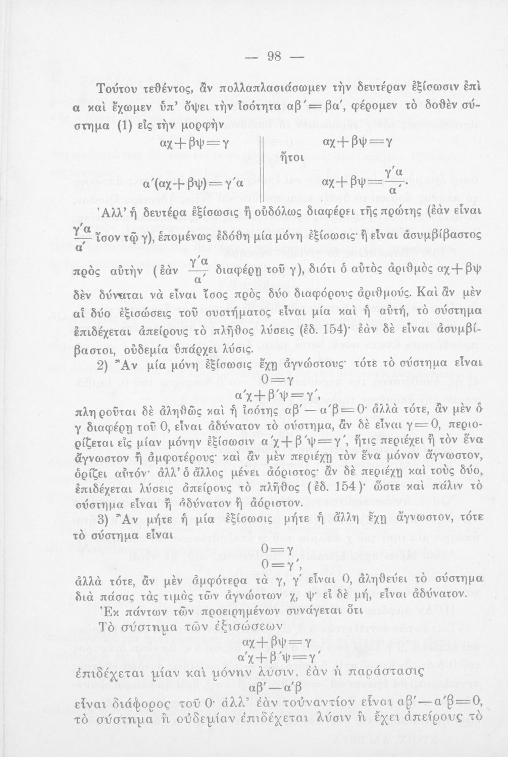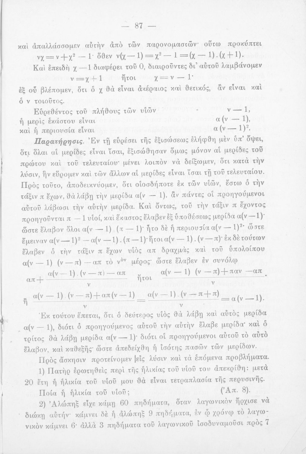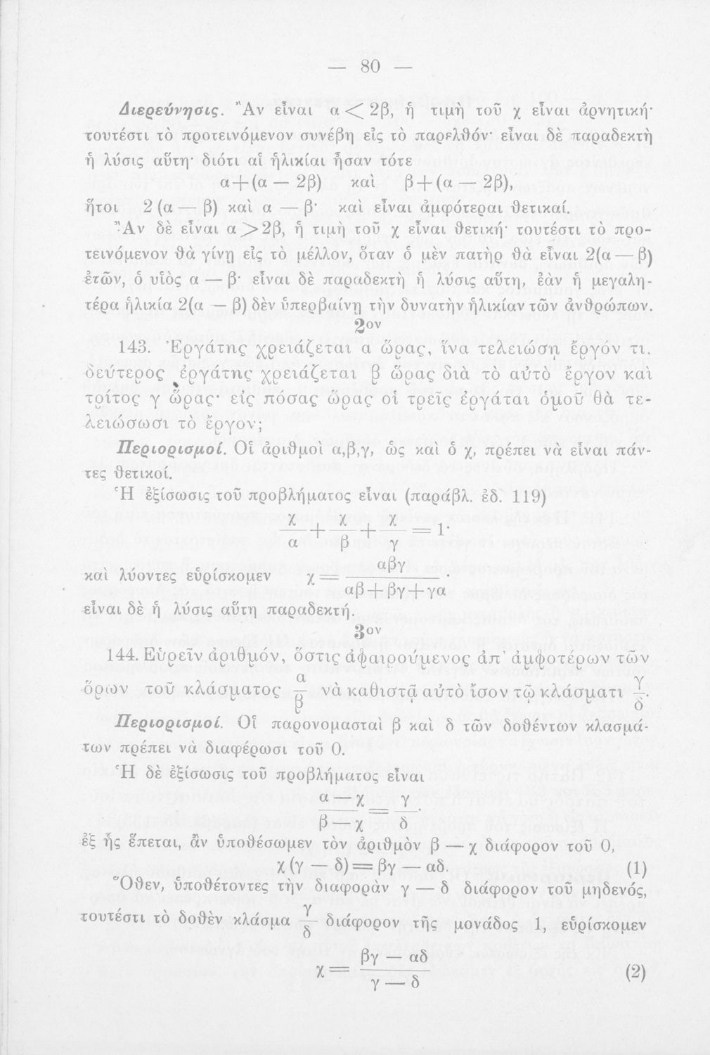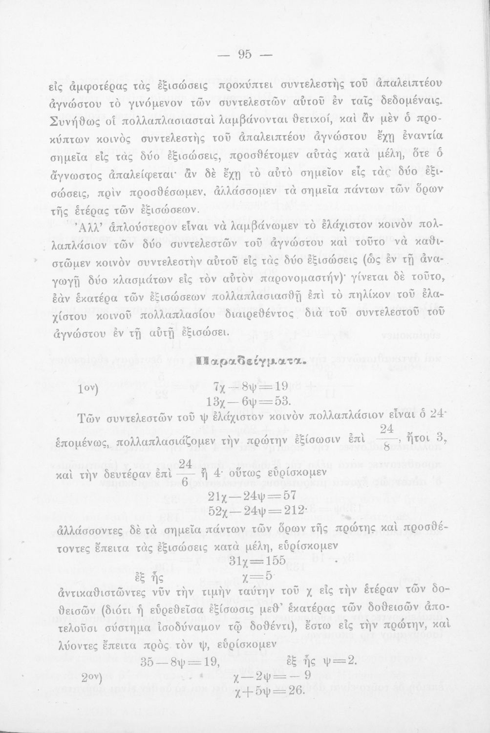 Σχολικό εγχειρίδιο Άλγεβρας Γυμνασίου που περιέχει θεωρία και ασκήσεις. Ο συγγραφέας ήταν υφηγητής στο Εθνικό Πανεπιστήμιο.