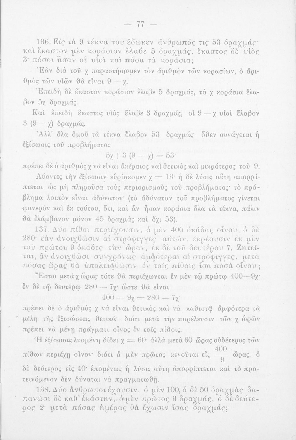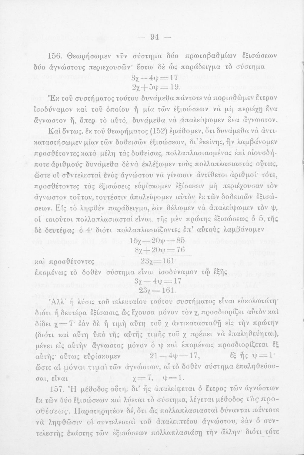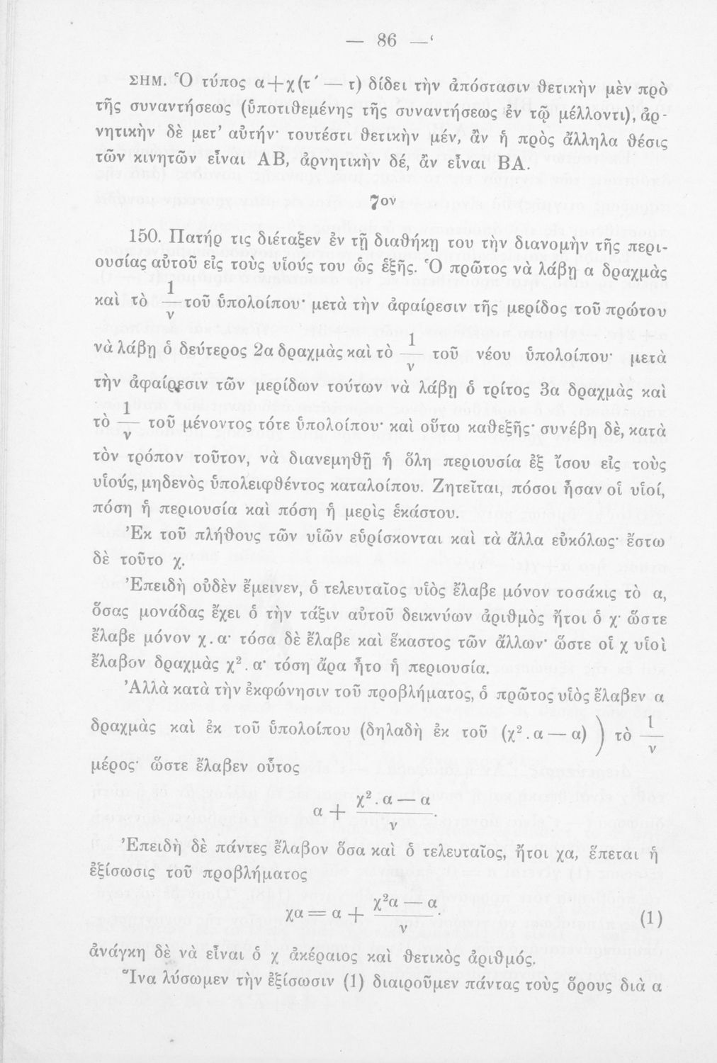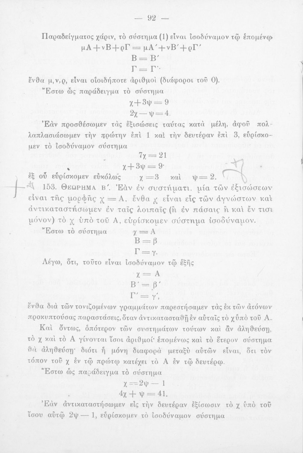 Σχολικό εγχειρίδιο Άλγεβρας Γυμνασίου που περιέχει θεωρία και ασκήσεις. Ο συγγραφέας ήταν υφηγητής στο Εθνικό Πανεπιστήμιο.